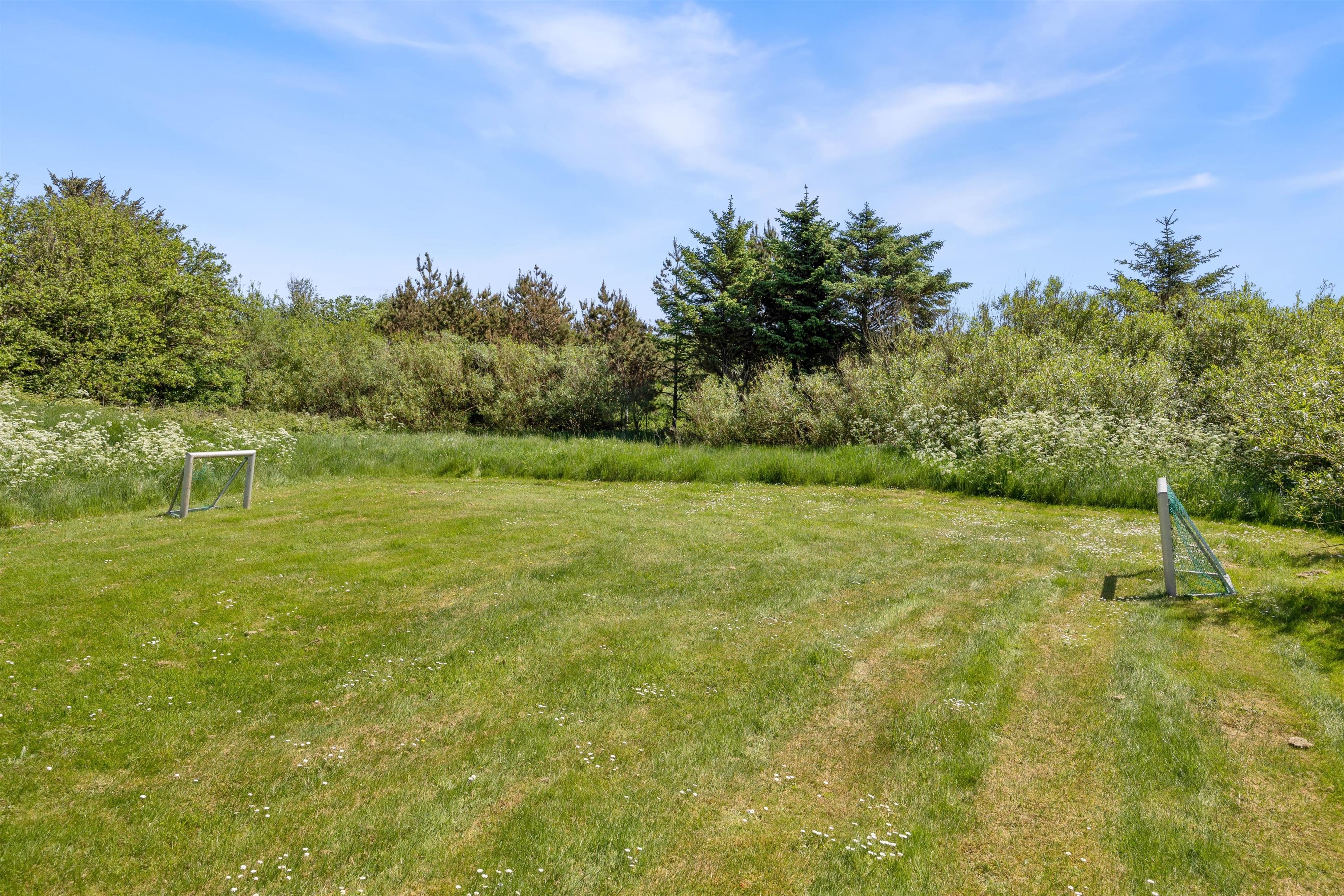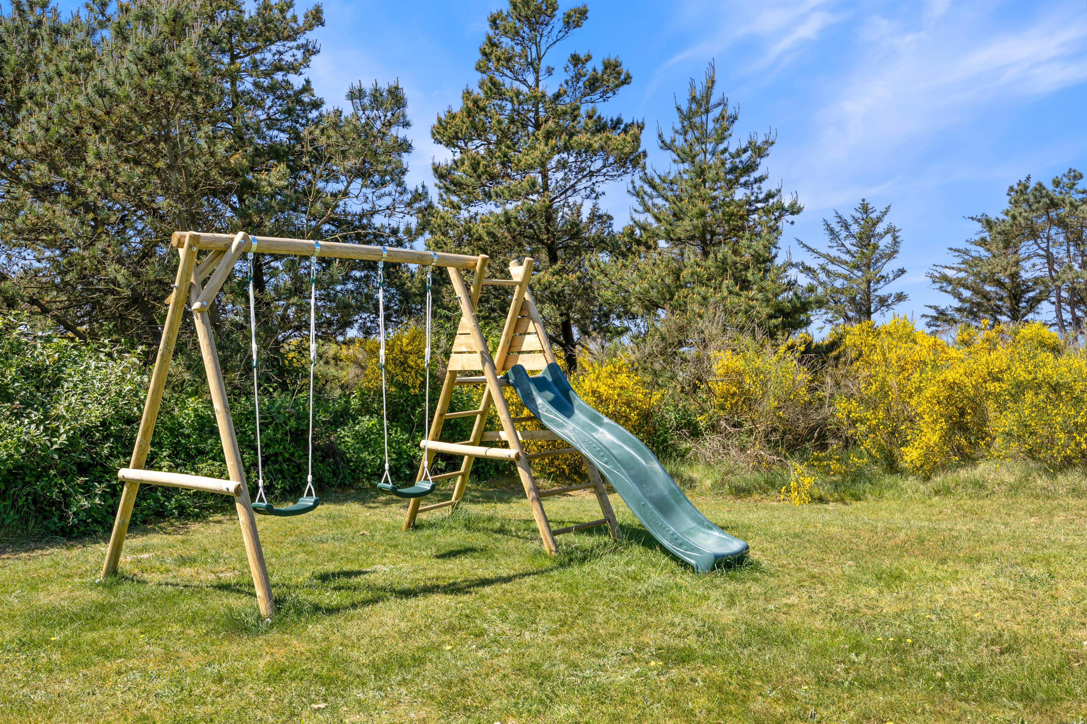 På plænen er der masser af plads til leg, boldspil og andre aktiviteter. Eller I kan smide et tæppe på græsset for at bade i solen eller nyde en spontan frokost i det grønne. Der er også en gynge på plænen, som uden tvivl vil være i høj kurs hos familiens yngste medlemmer.