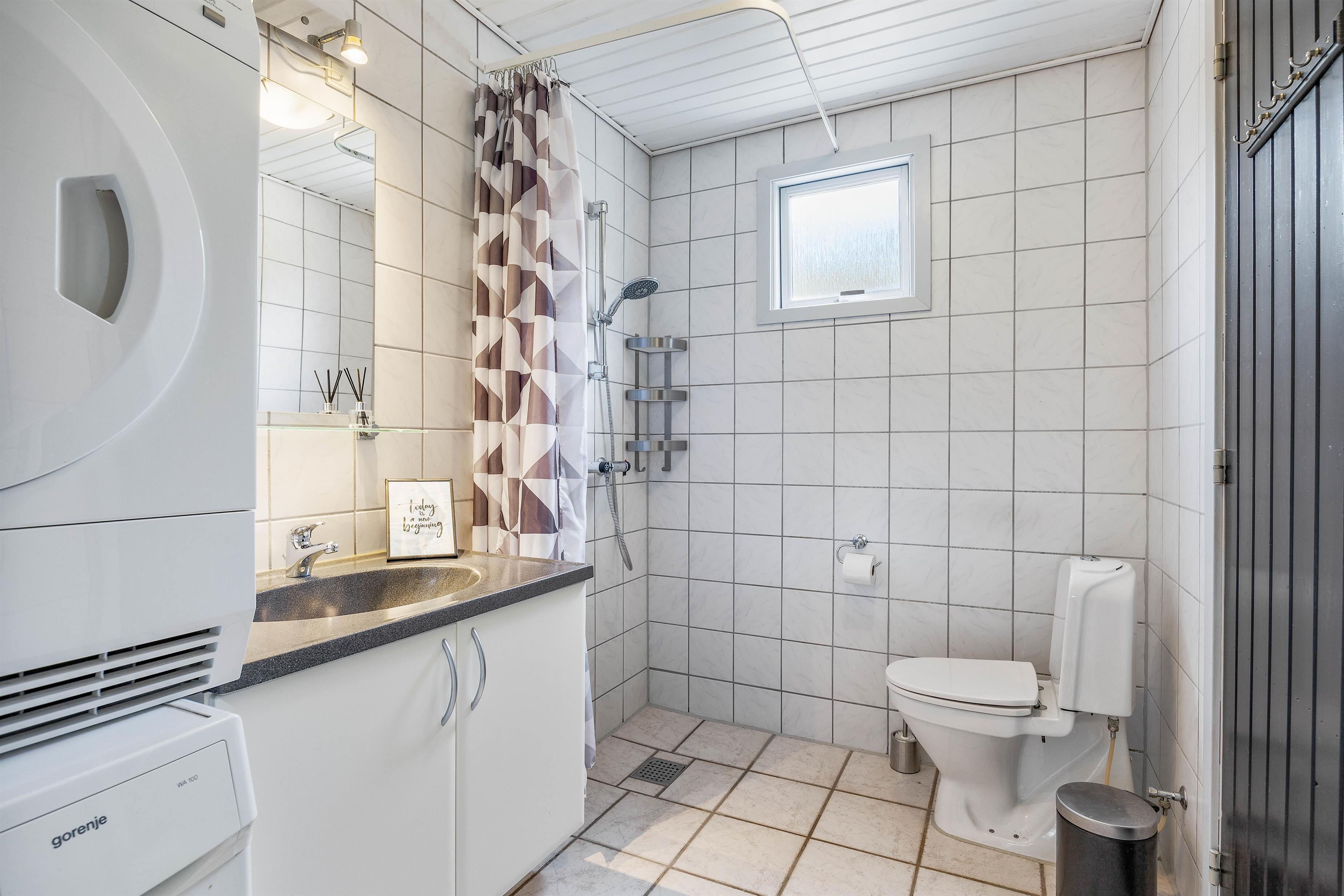 På badeværelset finder I desuden både vaskemaskine og tørretumbler, der kan hjælpe jer, hvis I ikke har pakket for meget af det rigtige tøj til det skiftende danske sommervejr. Og mon ikke der skal vaskes og tørres mange håndklæder under opholdet, når I har et lækkert spabad til rådighed?