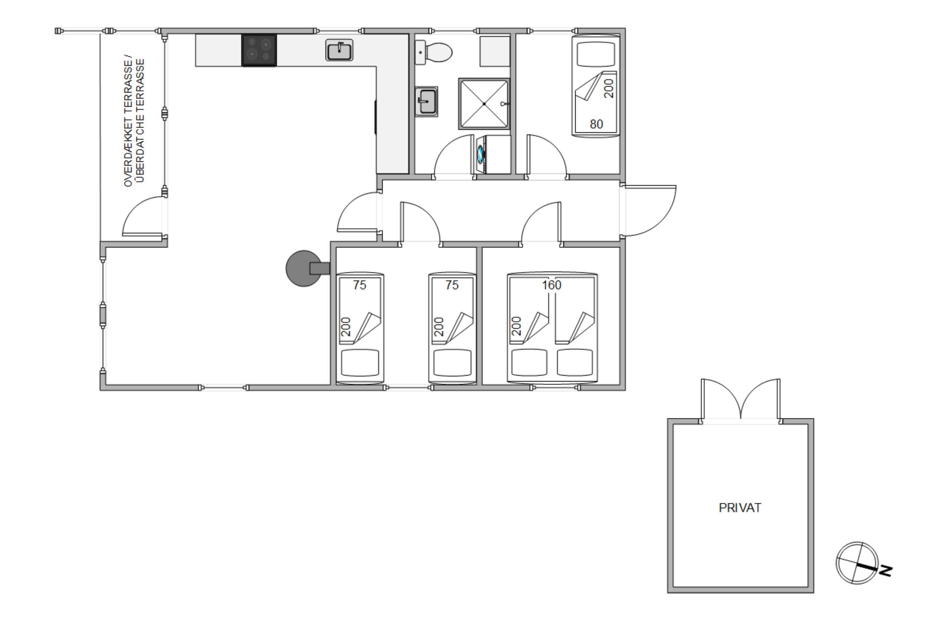 Feriehuset råder over 5 sovepladser fordelt på 3 hyggelige soveværelser med henholdsvis dobbeltseng på det ene værelse og enkeltsenge fordelt på de to sidste værelser. Her har I rig mulighed for igen at få ladet batterierne op, så I kan være friske og veludhvilede til en ny og oplevelsesrig dag. Det lille sommerhus er udstyret med et åbent og fint køkken, der ligger i forbindelse med stue og spiseplads. Dermed har I mulighed for at være sammen om de forskellige måltider samtidig med, at andre planlægger resten af ugens aktiviteter.