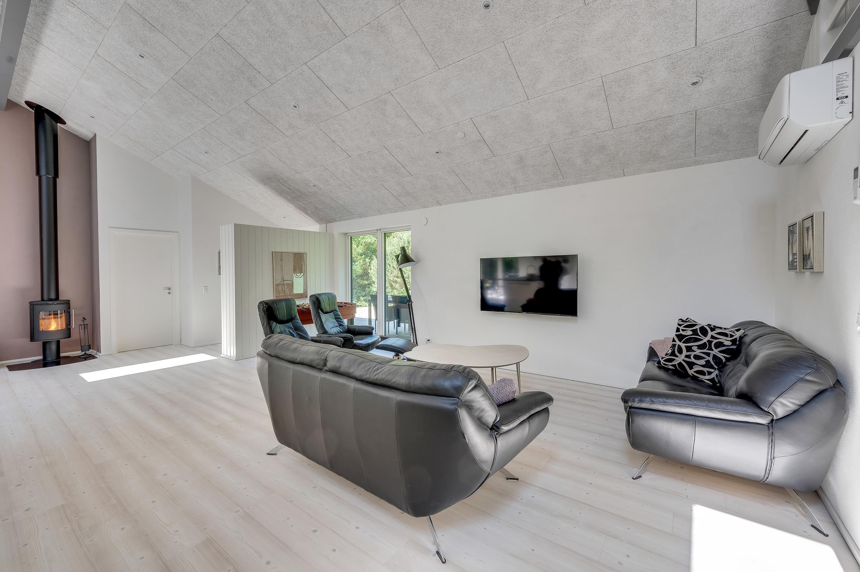Den moderne feriebolig er udstyret med alt, hvad der er brug for, når der skal holdes en afslappende ferie. I opholdsrummet står brændeovnen, som altid sikrer god stemning og varme, og i køkkenet står opvaskemaskinen klar til lynhurtigt at afhjælpe oprydningsarbejdet efter middagen. Der er også en energibesparende varmepumpe, så I året rundt har et behageligt rumklima.