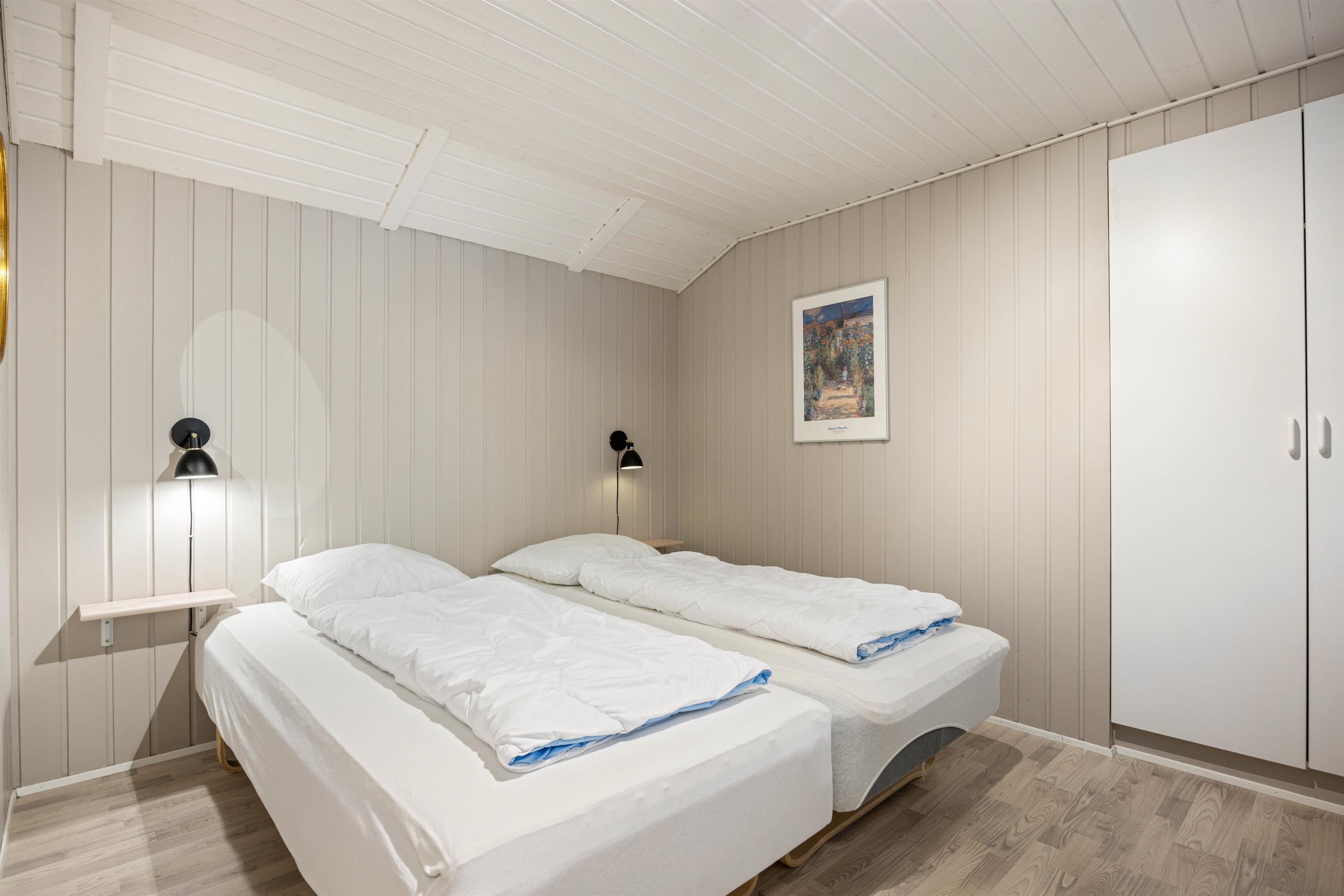 Fra opholdsstuen er der adgang til det store poolrum, som vil være et særligt højdepunkt for vandhundene iblandt jer. De af jer, der ønsker at slappe af fra hverdagens stress og jag, finder en spa og husets sauna i poolrummet. Efter en lang og spændende feriedag kan man sprede sig ud i de 4 soveværelser og på hemsen. To af soveværelserne er indrettet med hver sin dobbeltseng, mens de to andre har køjesenge. På hemsen, som ligger i forlængelse af aktivitetsrummet, er der ekstra soveplads, og den er især populær blandt børn.