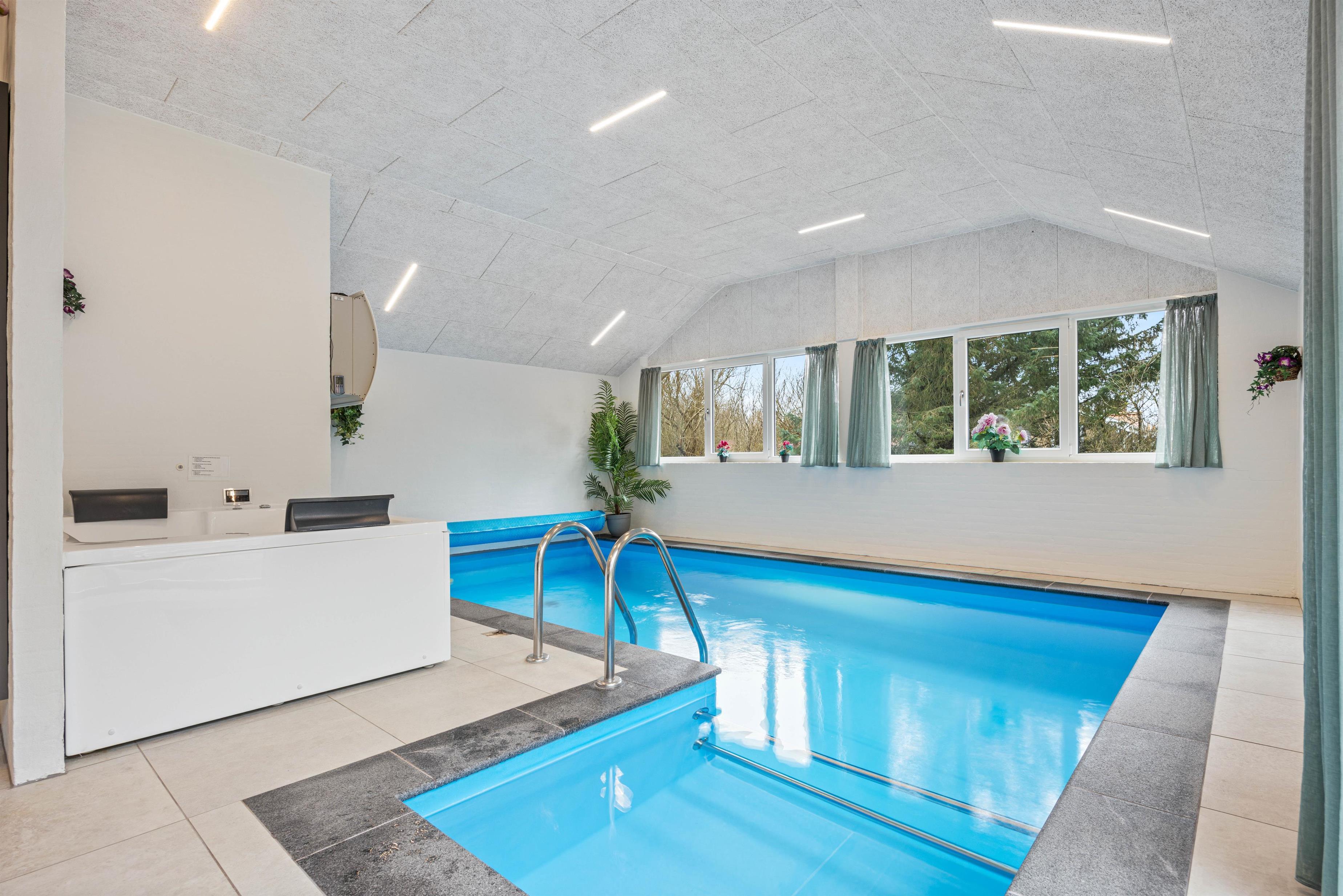 Vil I gerne holde ferie på den danske vestkyst med hele familien? Så er dette 12-personers poolhus på Sivsangervej 33 i Lodberg Hede det helt rigtige valg for jer. Der er masser af plads til afslapning og sjov i dette feriehus. Mens vandhundene kan boltre sig i feriehusets pool, kan de andre slappe af i enten spaen eller husets sauna.