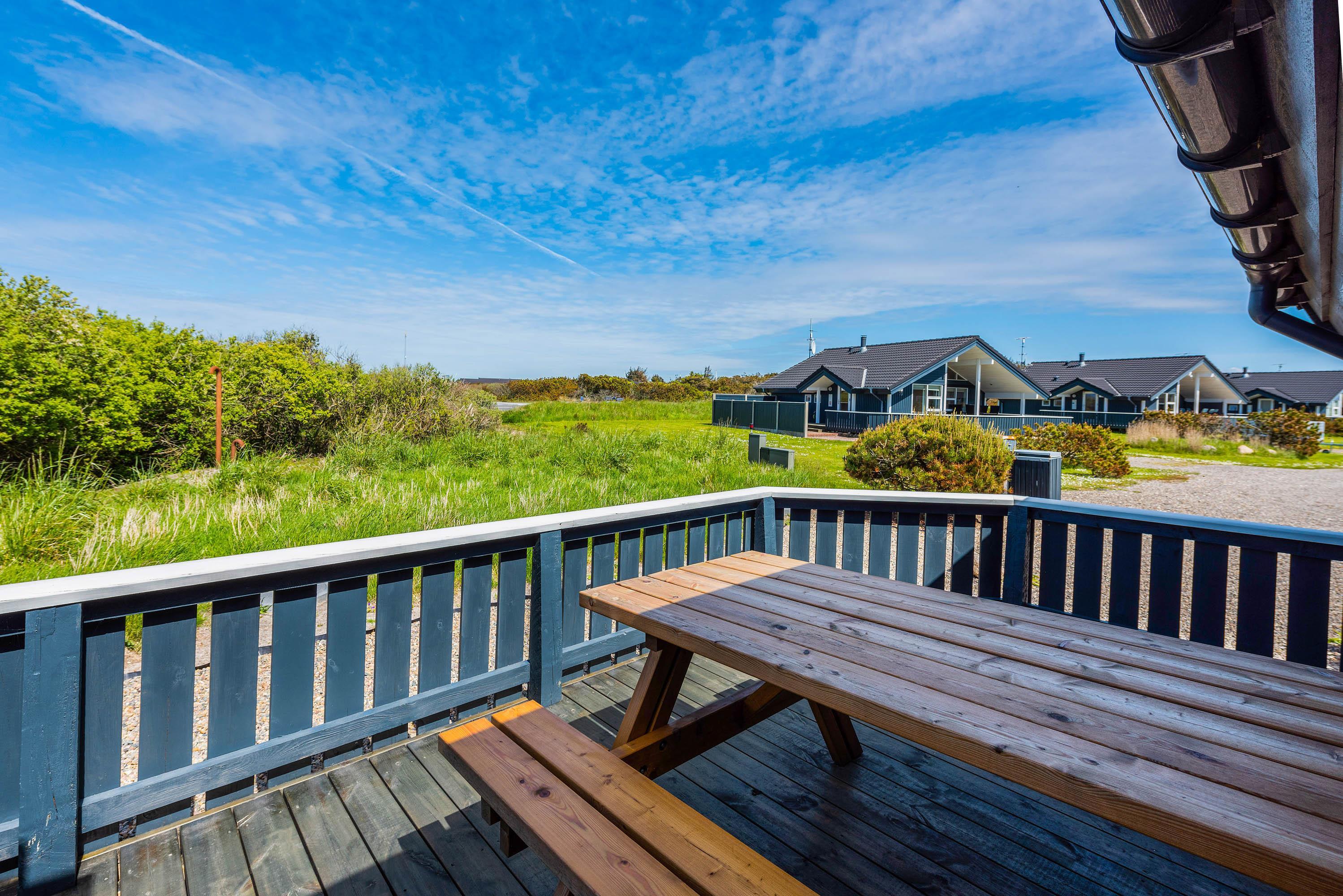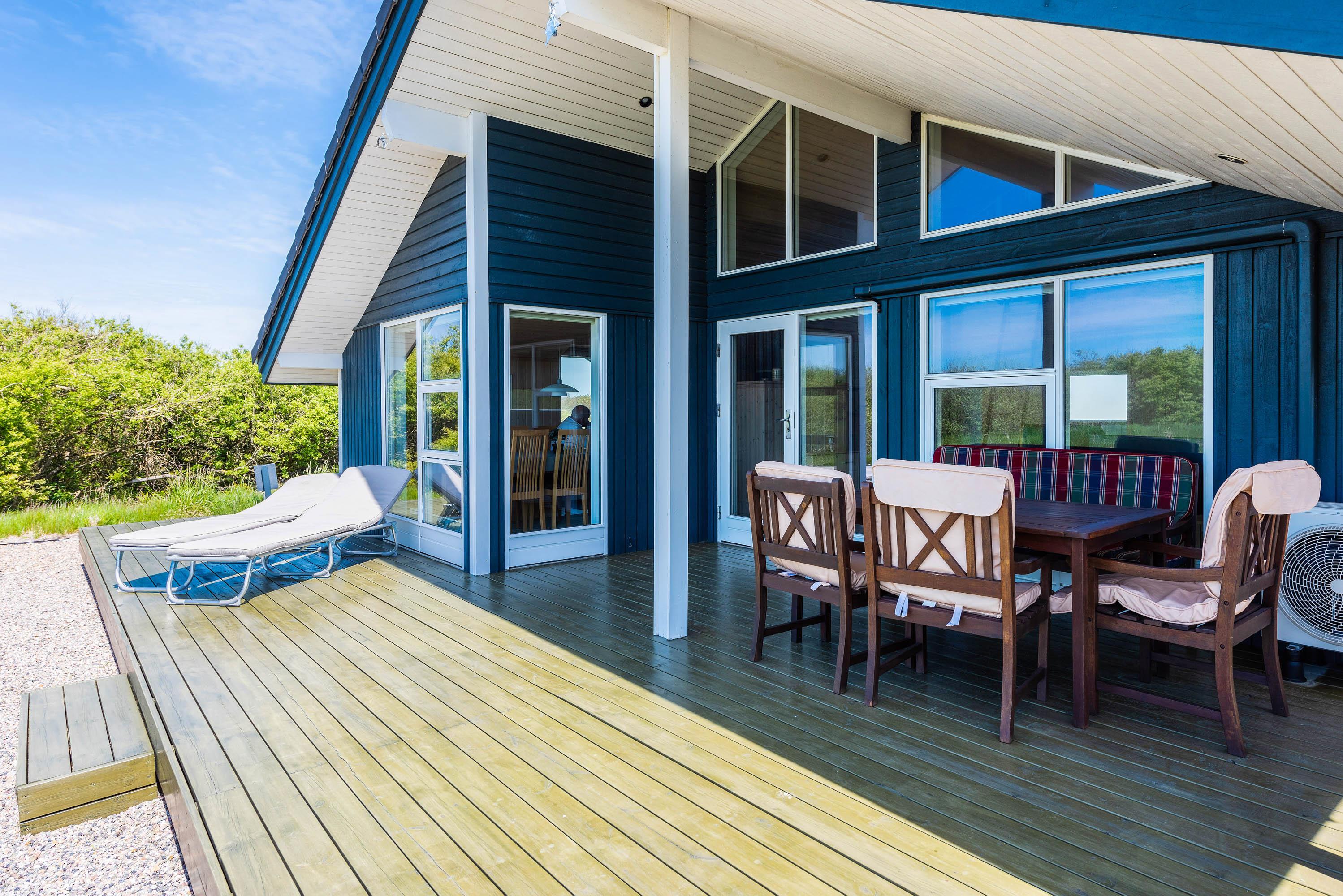 Sommerhusets terrasse byder på rig mulighed for at nyde den friske luft med både overdækkede, afskærmede og åbne områder. Terrassen er udstyret med komfortable havemøbler og liggestole samt en bænk, så når solen skinner, er rammerne perfekte til at grille en lækker aftensmad og nyde et køligt glas rosé.