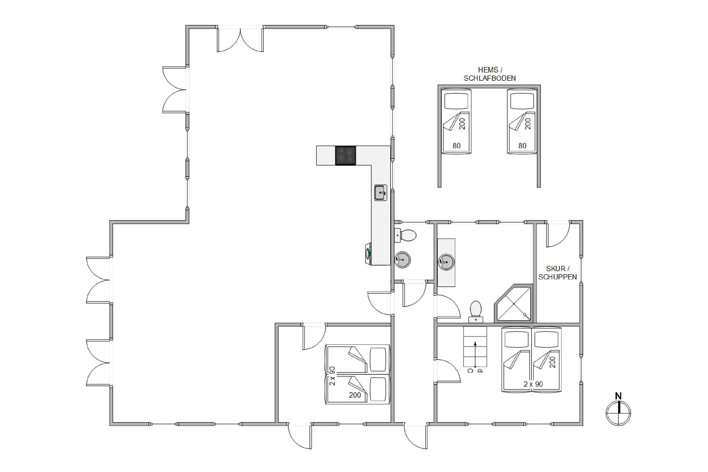 Med ferieadresse på Lysningen 1 får I et dejligt 4-stjernet feriehus på 120 m2. Her er dømt vaskeægte sommerhusstemning. Feriehuset har 2 soverum med 2 dobbeltsenge og en ekstra hems, hvor de mindste i familien kan sove og hygge med iPad.