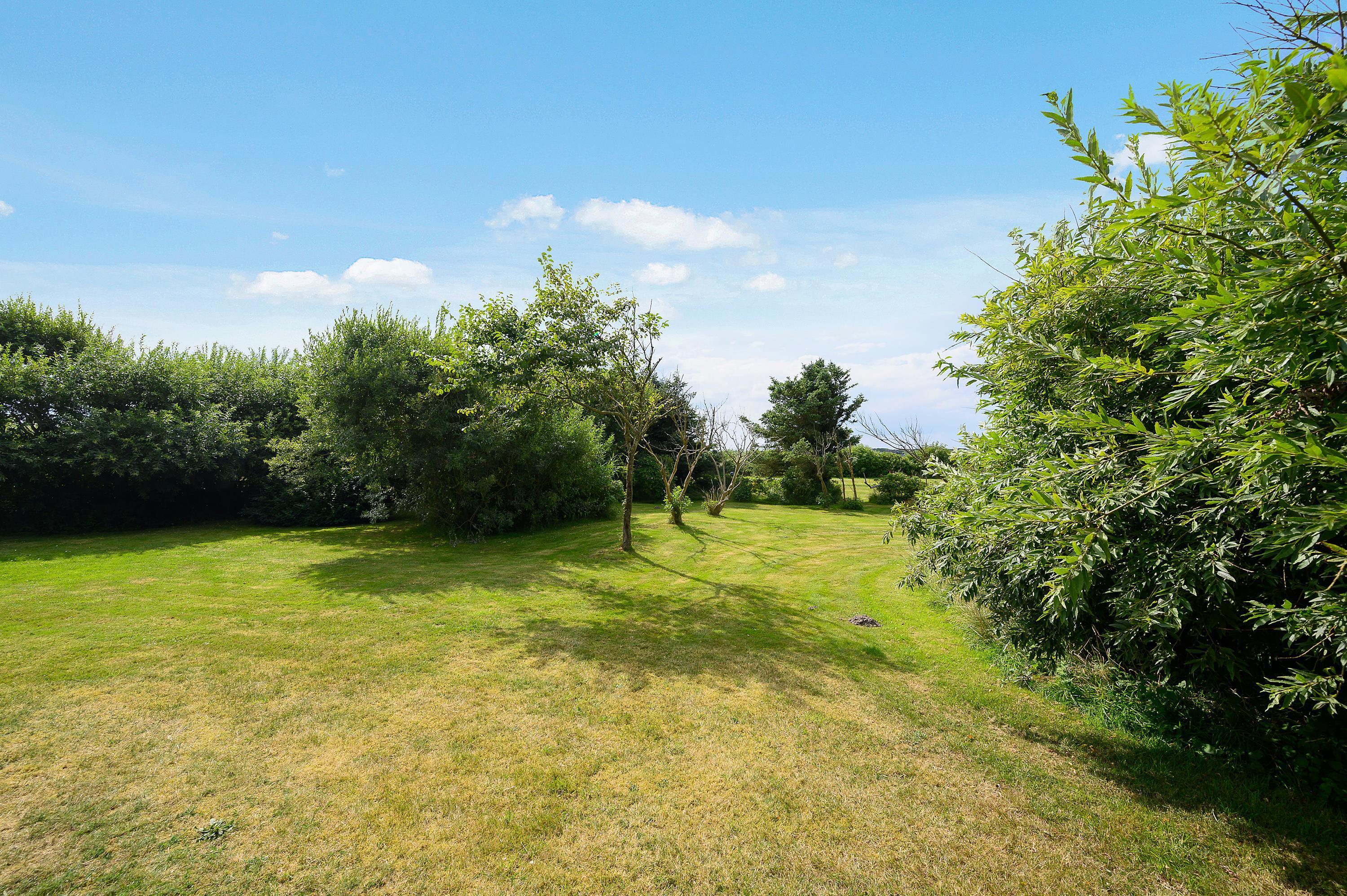 Sommerhuset ligger en 2774 m2 stor plænegrund med en åben, afskærmet terrasse, hvor de mindste i familien kan hygge sig i timevis, eller hunden kan tumle rundt, mens de voksne indtager havemøblerne eller tilbereder en lækker middag på grillen. I vil altid kunne finde en plet på grunden til at trække jer tilbage og nyde solens stråler, mens I daser på solvognen.