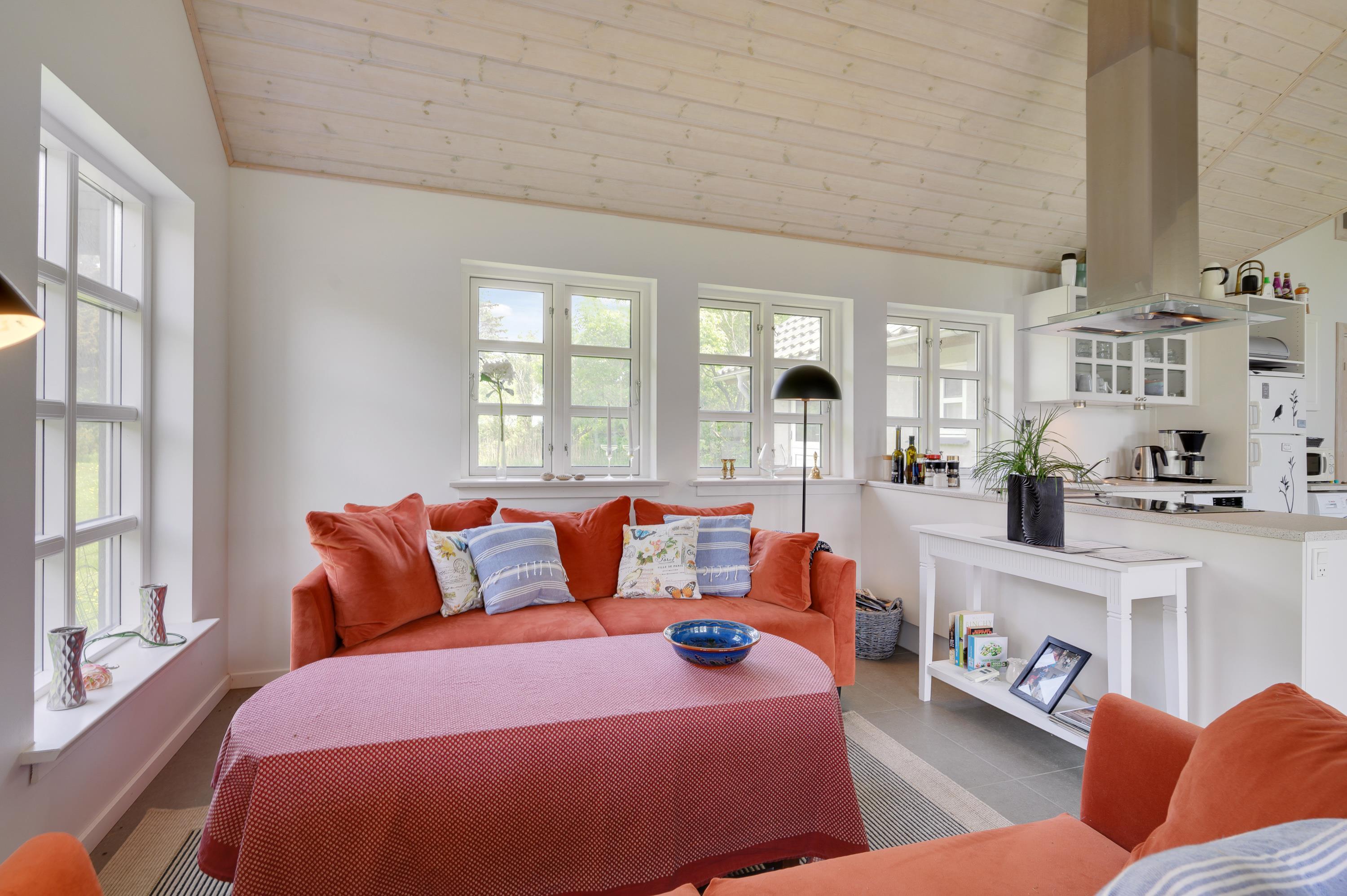Sommerhusets hjerterum er uden tvivl det åbne køkken-alrum, som er integreret med stuen. Her kan I tilbringe mange hyggelige feriestunder sammen med planlægning af aktiviteter og fælles madlavning.