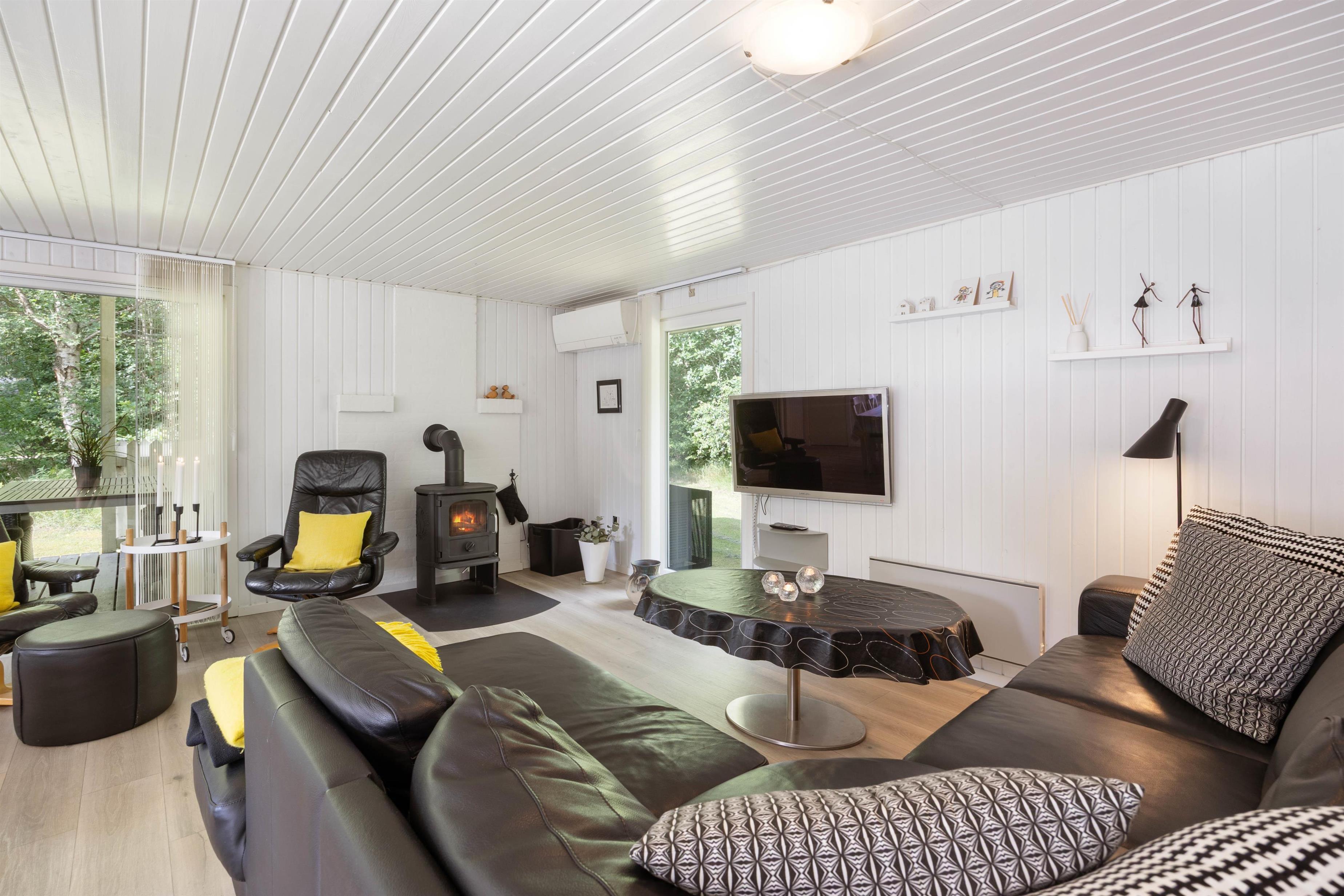 Sommerhuset er desuden udstyret med stabilt og hurtigt fibernet, så I kan følge med i, hvad der sker på de sociale medier. Det har også et fladskærms-tv, så I kan holde en hyggelig filmaften, mens I er på ferie. Hvis I ønsker at skrue yderligere op for hyggen, kan I tænde op i brændeovnen, der hurtigt skaber en varm og hyggelig atmosfære.