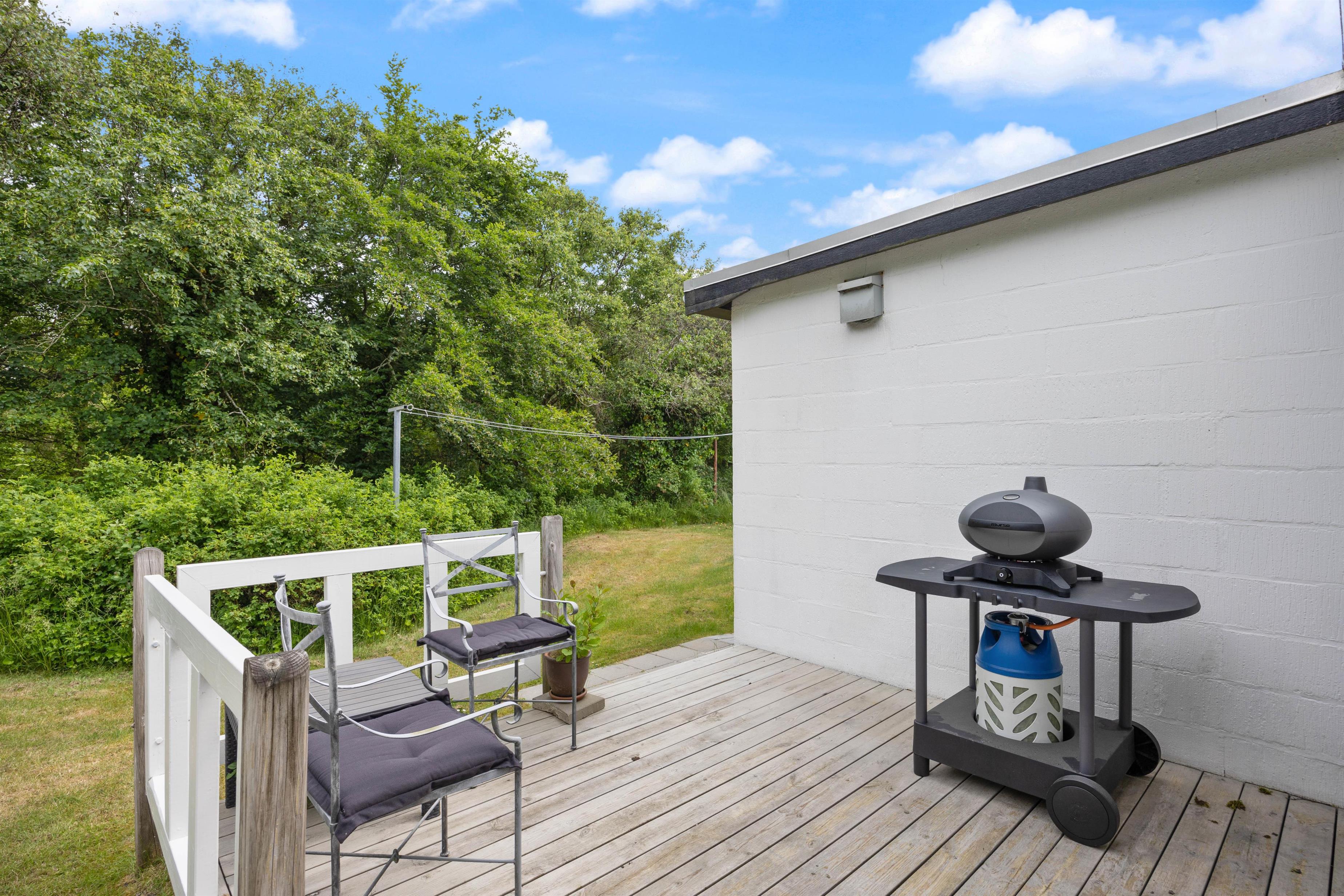 Indenfor sørger de lyse og smagfulde omgivelser for en harmonisk og hjemlig stemning, så I straks vil falde til. Den stilrene og samtidig personlige indretning giver den perfekte blanding af traditionel og moderne sommerhusferie, så der er noget for enhver smag. Den åbne spisestue kommer til at danne rammerne om masser af nye ferieminder med gode grin over aftensmaden og sene aftener på sofaen foran den knitrende brændeovn.