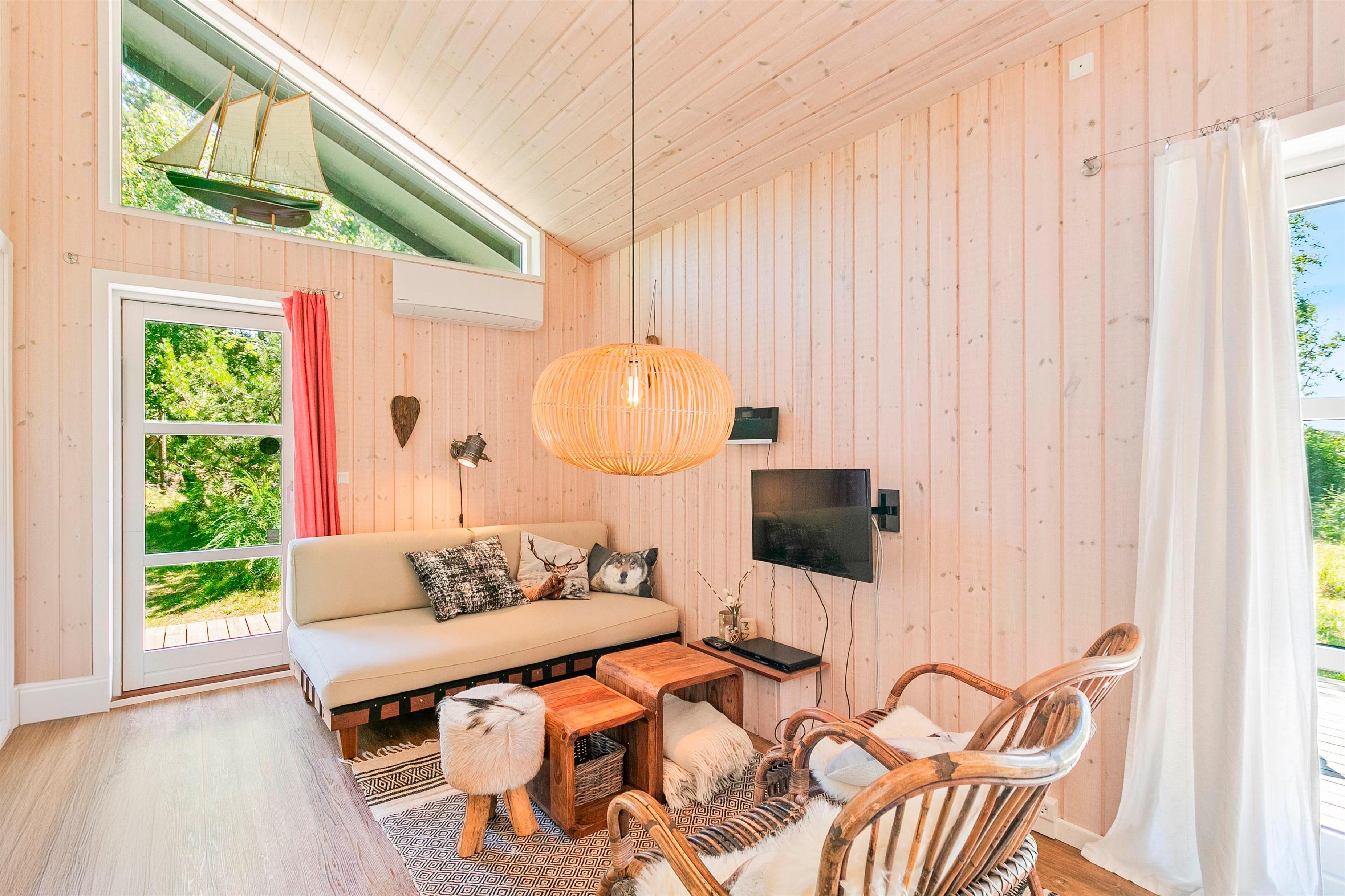 Feriehuset har en rigtig dejlig og lys indretning, så alt fremstår indbydende som muligt. Der er skabt en hyggelige sofaafdeling, hvor I kan slappe af eller se noget TV eller. Oppe på hemsen er der et ekstra fjernsyn, så børnene kan underholde sig med medbragte spillekonsoller og dvd-afspiller.