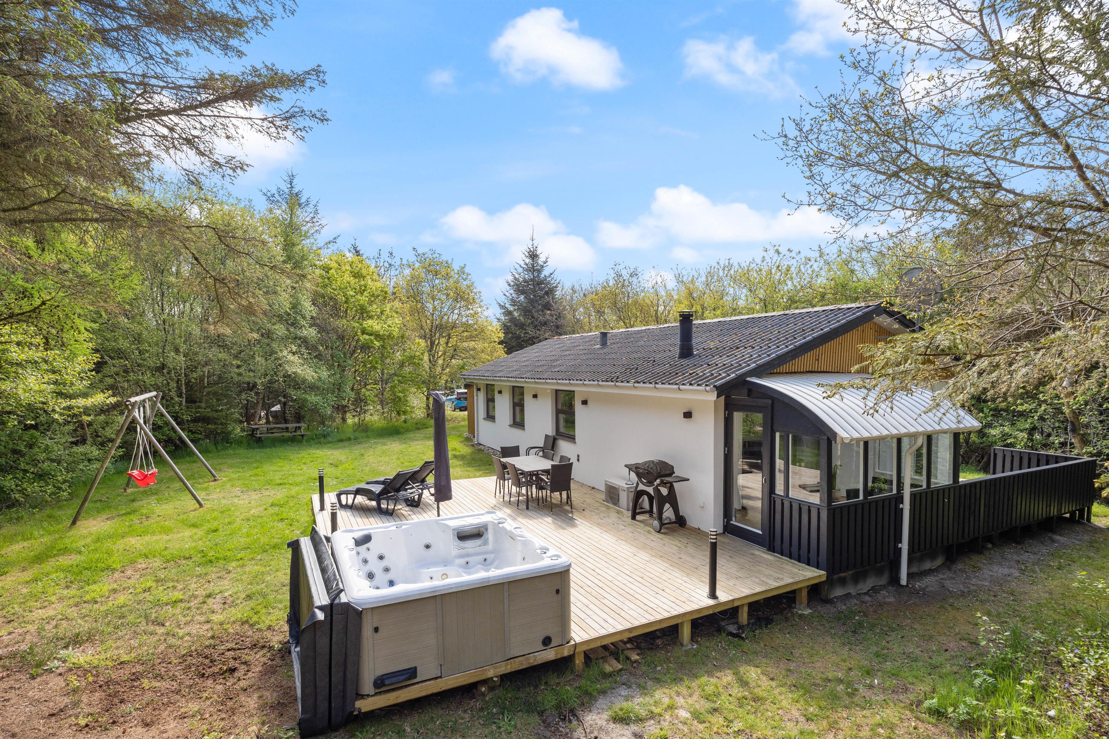 Der er også en tilhørende spa med plads til alle 6 gæster i sommerhuset. Denne spa er genstand for mange timers sjov, hygge og velvære. Børnene vil elske at plaske lidt rundt i det og efter puttetid, kan de voksne nyde roen, varmen og de beroligende boblerne, i fællesskab til uforstyrrede kvalitetstid.