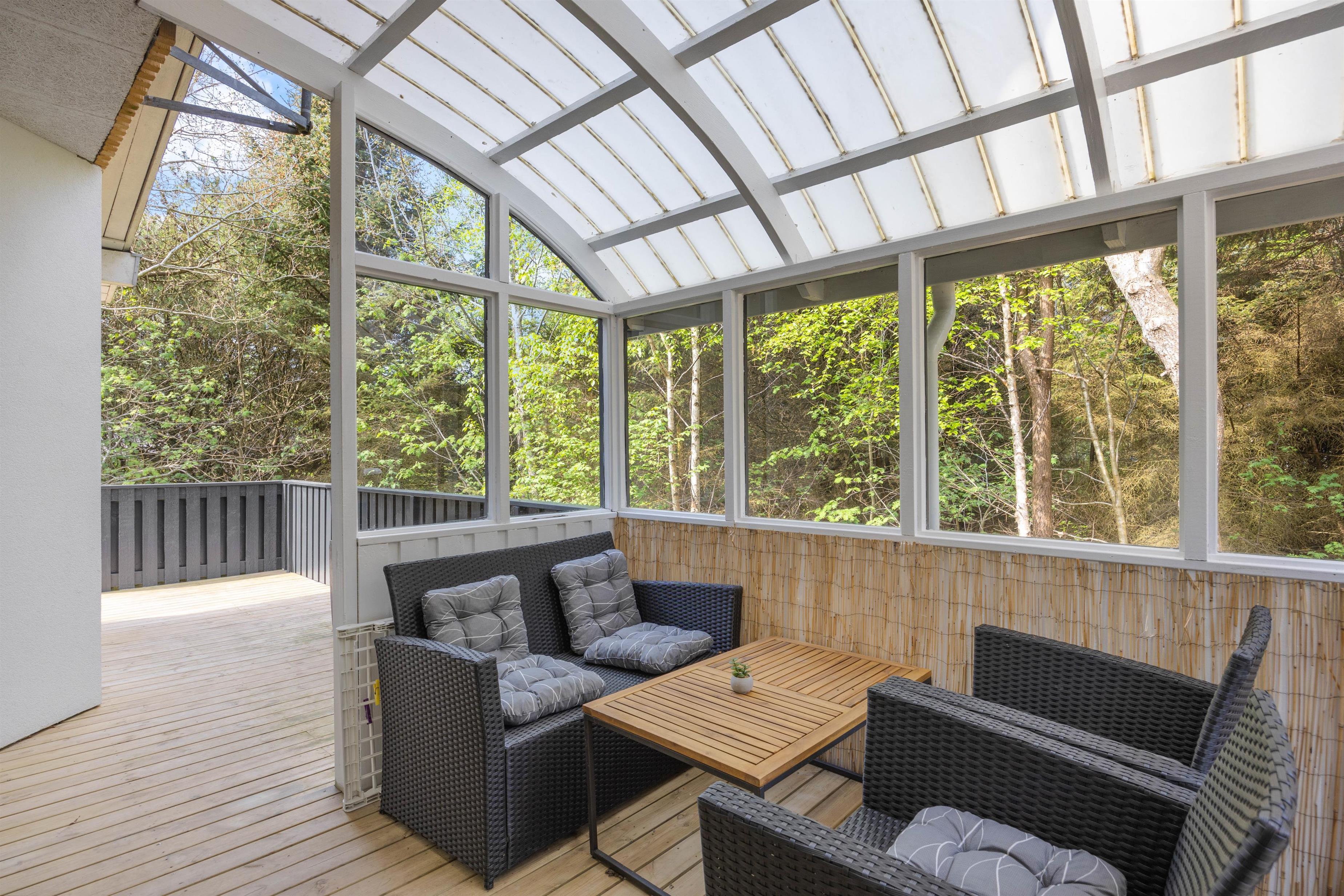 På Brunbjergvej 57 finder du en hyggelig overdækket terrasse, der giver dig mulighed for at nyde udendørslivet selv når temperaturen daler. Her kan du kravle i læ og stadig nyde den friske luft og omgivelserne uden at blive generet af vejret. Det er det perfekte sted at slappe af med en god bog eller bare i godt selskab.