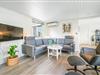 Feriehusets køkken og stue ligger i forlængelse af hinanden, og I har her mulighed for at være sammen om madlavningen eller samles om en god film i fjernsyet samtidig med, at I nyder varmen fra den knitrende brændeovn.