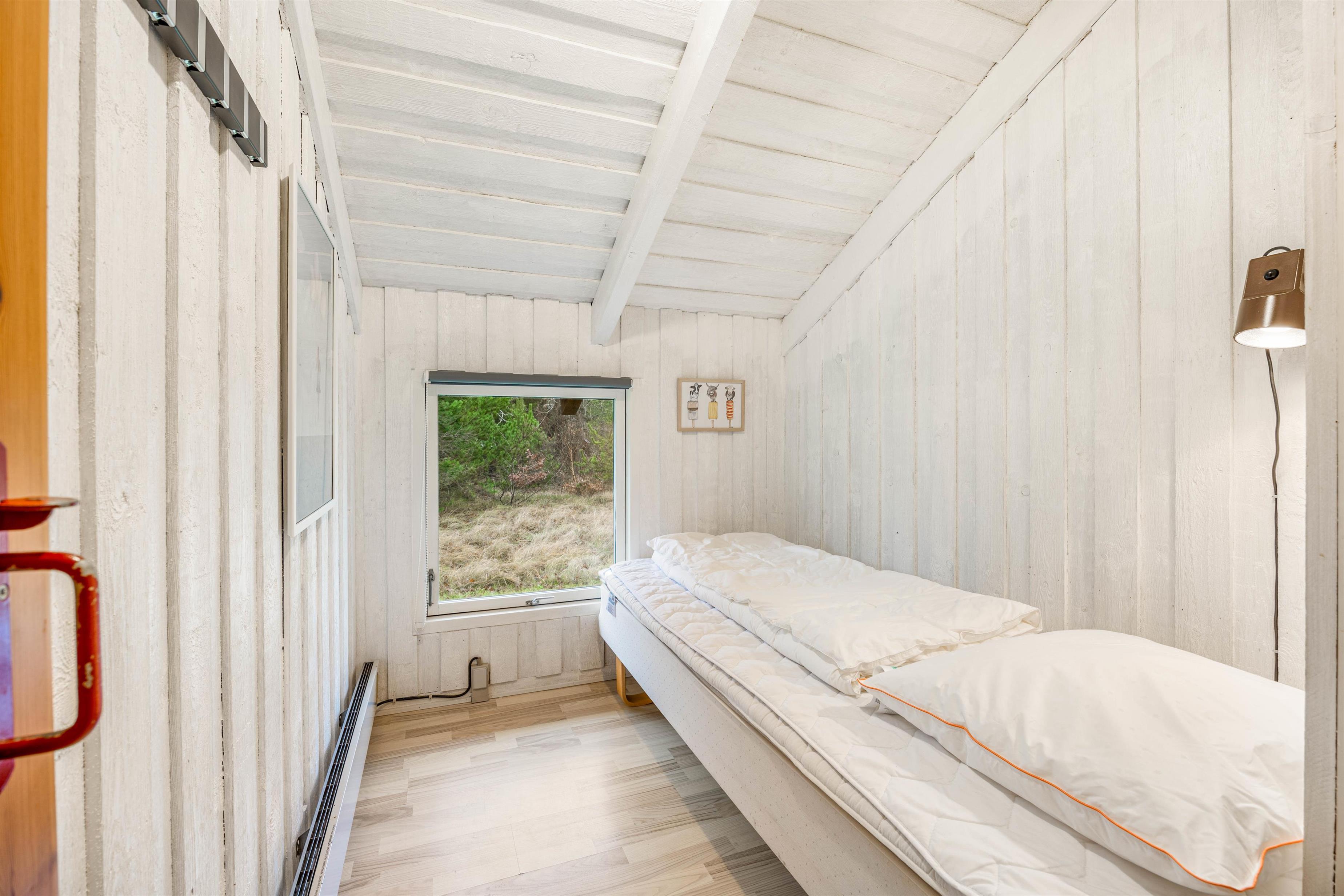 Sommerhuset råder over 3 gode og velindrettede værelser. 2 af disse værelser er udstyret med en enkeltseng, mens det sidste består af en dobbeltseng. En smule afskærmet, således man kan få lidt privatliv under sin søvn. Der er desuden et fint badeværelse med bruseniche og vaskemaskine i sommerhuset.