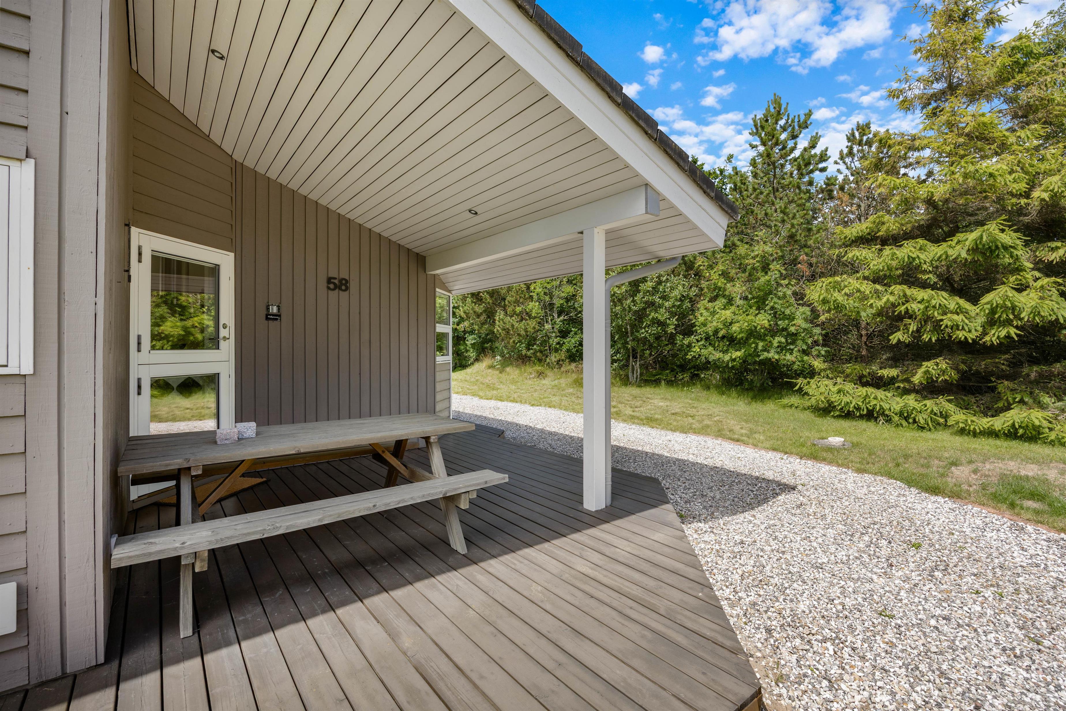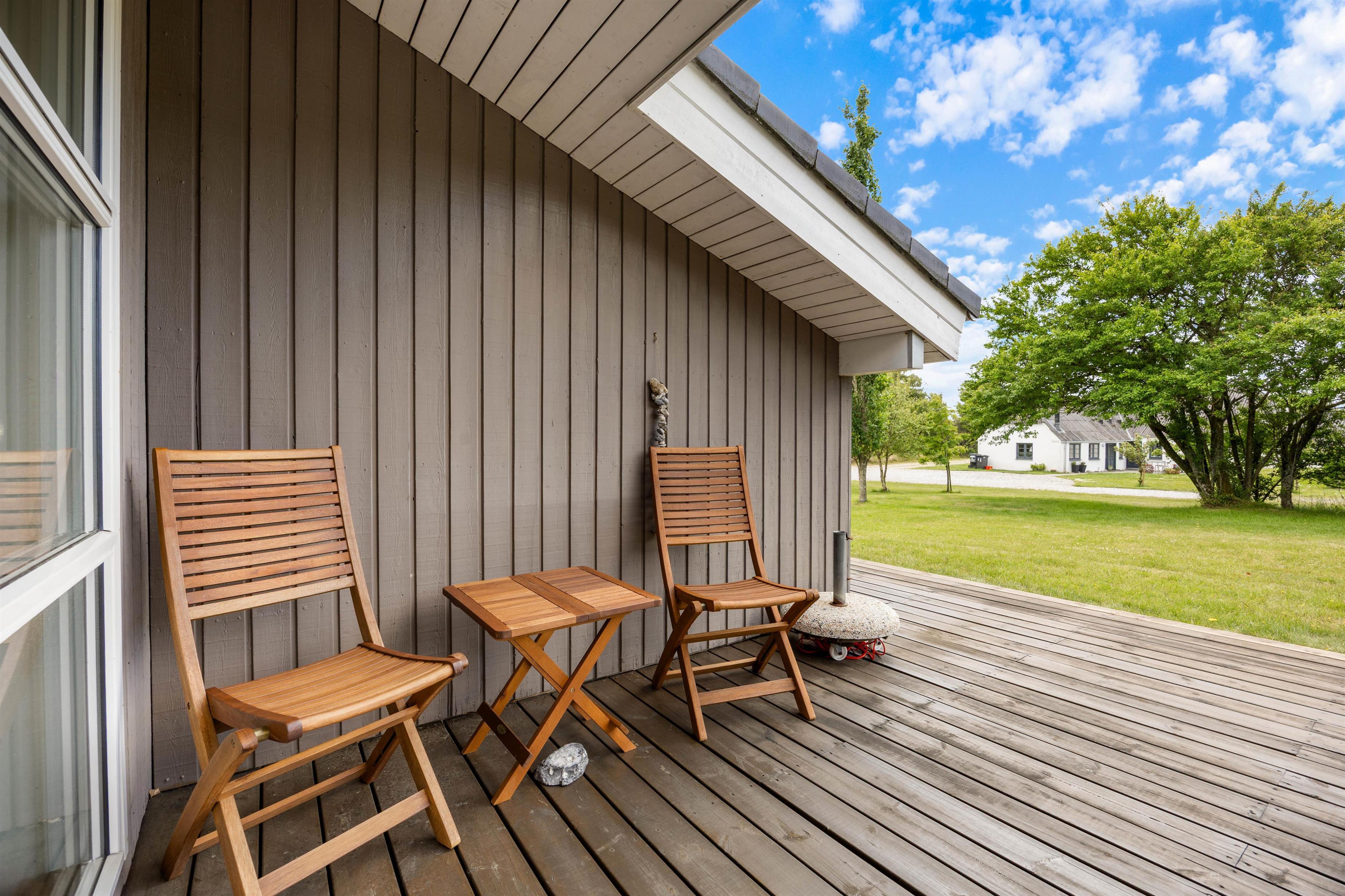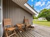Feriehuset tilbyder også mange bekvemmeligheder udendørs. En åben, afskærmet og overdækket terrasse indbyder til afslapning under åben himmel. Havemøbler, en sandkasse til de små og en grill står klar til at berige jeres ferieoplevelser. Det er skønt at boltre sig på græsplænen, og jeres børn vil være begejstrede. Der er et shelter på grunden, hvor I kan overnatte en lun sommernat for at se naturen vågne tidligt om morgenen. Husk en isoleringsmåtte og en sovepose. Uanset om det er strandture eller afslappende timer i haven – her bliver jeres feriedrøm til virkelighed her.