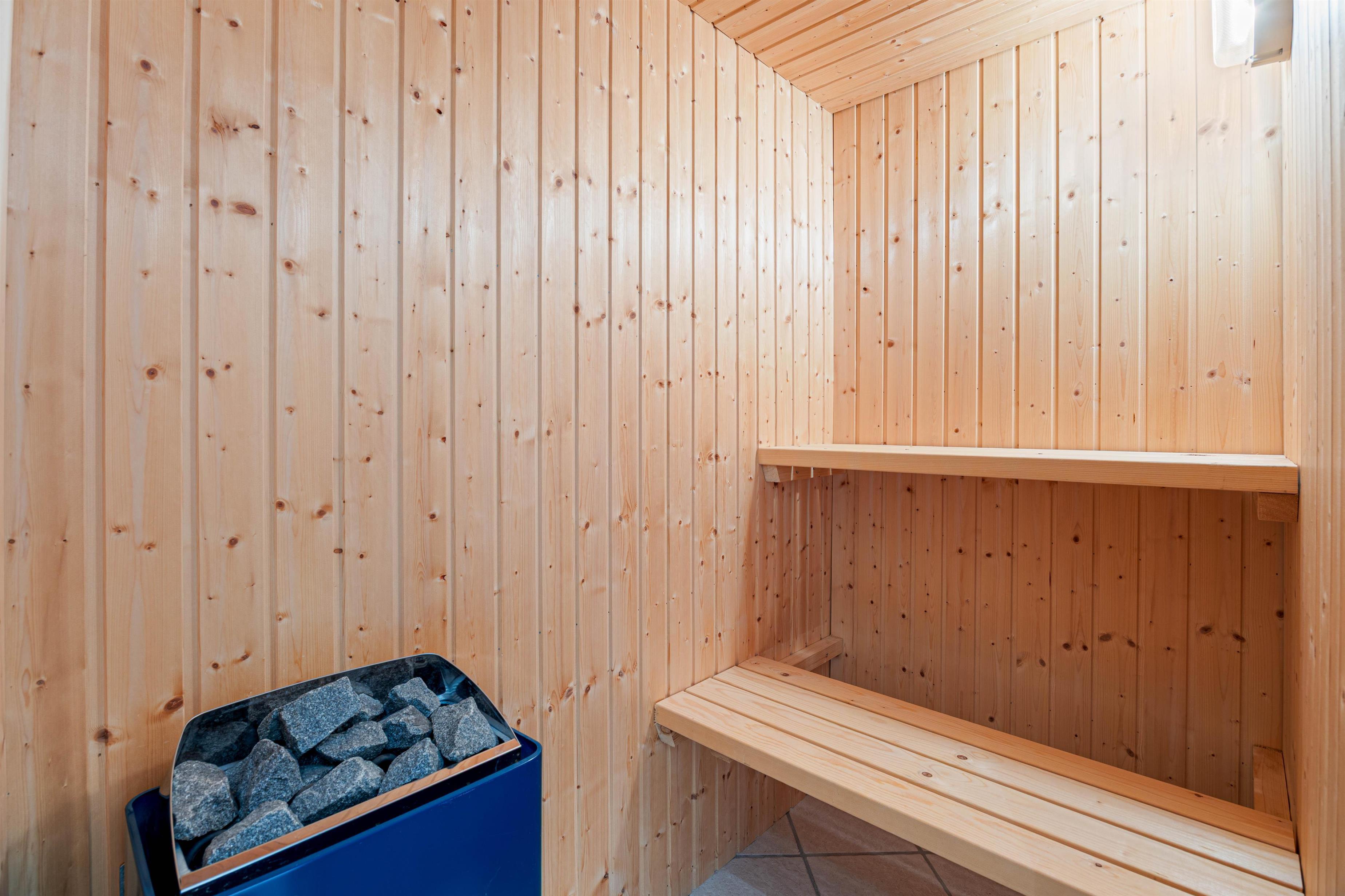 Med i alt 3 soveværelser tilbyder feriehuset en behagelig nattesøvn. Ét af soveværelserne er udstyret med en dobbeltseng, mens de 2 andre soveværelser har i alt 4 enkeltsenge. Alle soveværelser er smukt indrettede og garanterer afslappende nætter efter en eventyrlig dag i omgivelserne. Sommerhuset har 2 badeværelser, der dækker alle behov. Gulvvarmen i badeværelserne giver en behagelig følelse på køligere dage. Slap af i det rummelige spabad, eller nyd den behagelige varme i saunaen, der fører jer til en oase af velvære – langt væk fra hverdagen. Vaskemaskinen står også til rådighed som en praktisk hjælp i hverdagen.