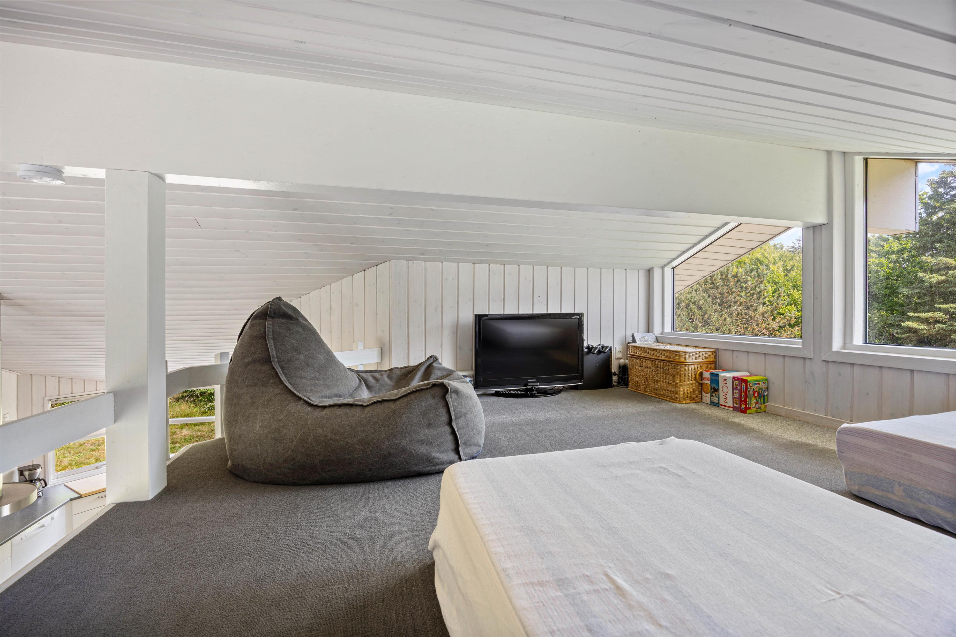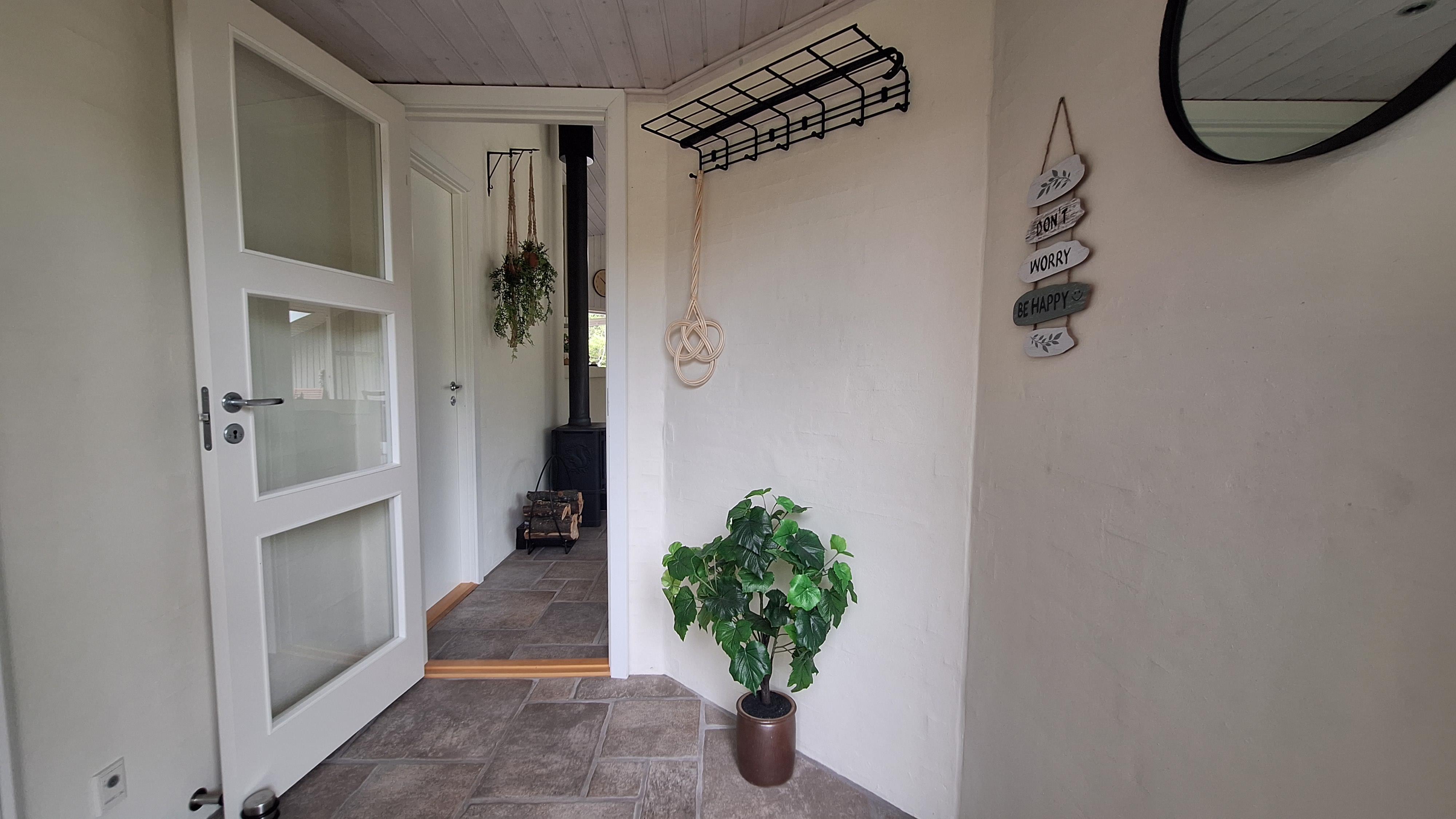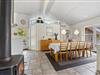 Den åbne stue og spisestue er hjertet i dette fine sommerhus. Her kan I gøre det behageligt foran den hyggelige brændeovn og nyde afslappende aftener. Det gode køkken er udstyret med moderne apparater – herunder en opvaskemaskine – som gør hverdagen lettere og giver jer mere tid til fritidsaktiviteter. Store vinduer fylder rummet med naturligt lys og skaber en indbydende atmosfære. Uanset om I laver mad sammen eller slutter aftenen af med en god bog, vil I føle jer godt tilpas her.