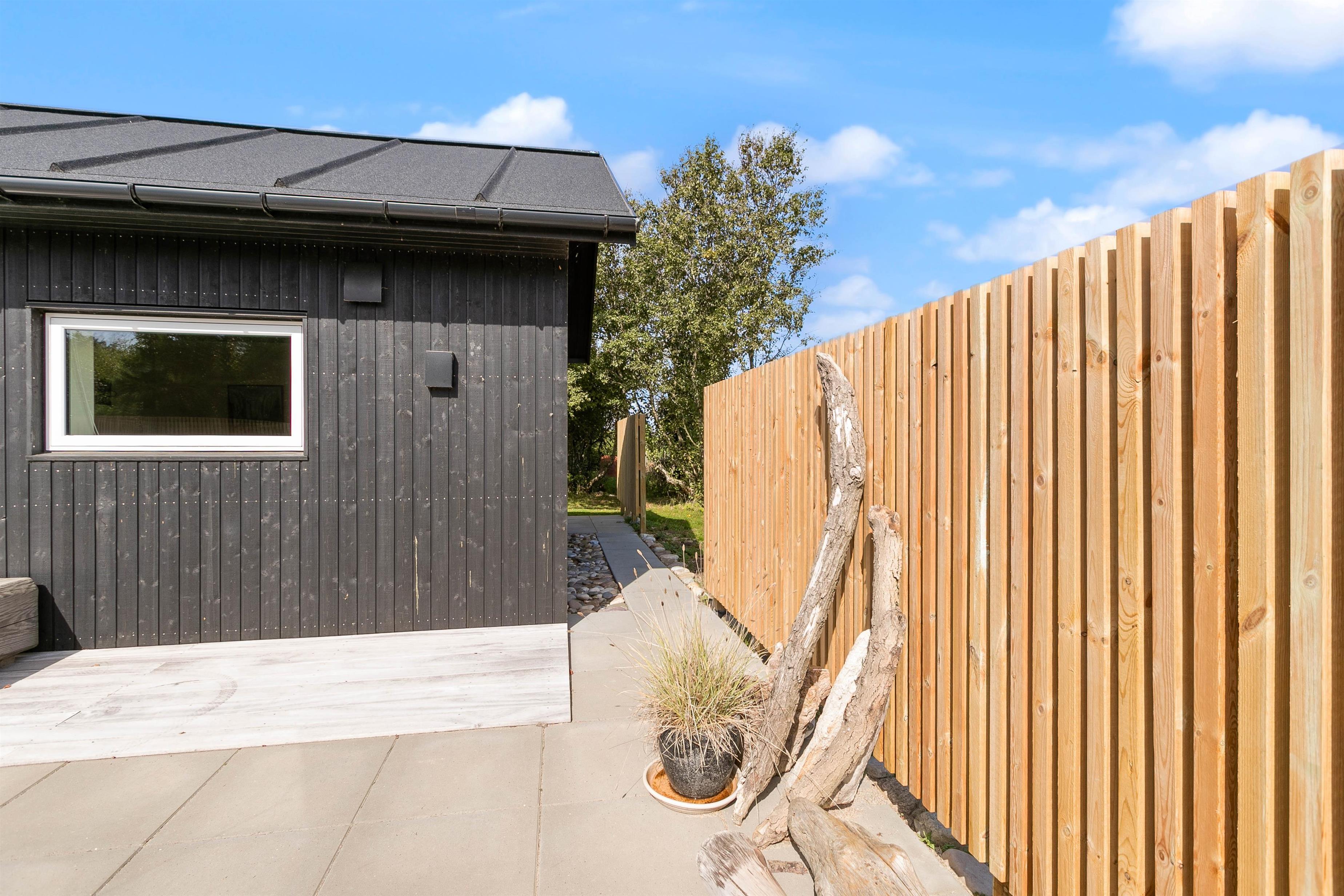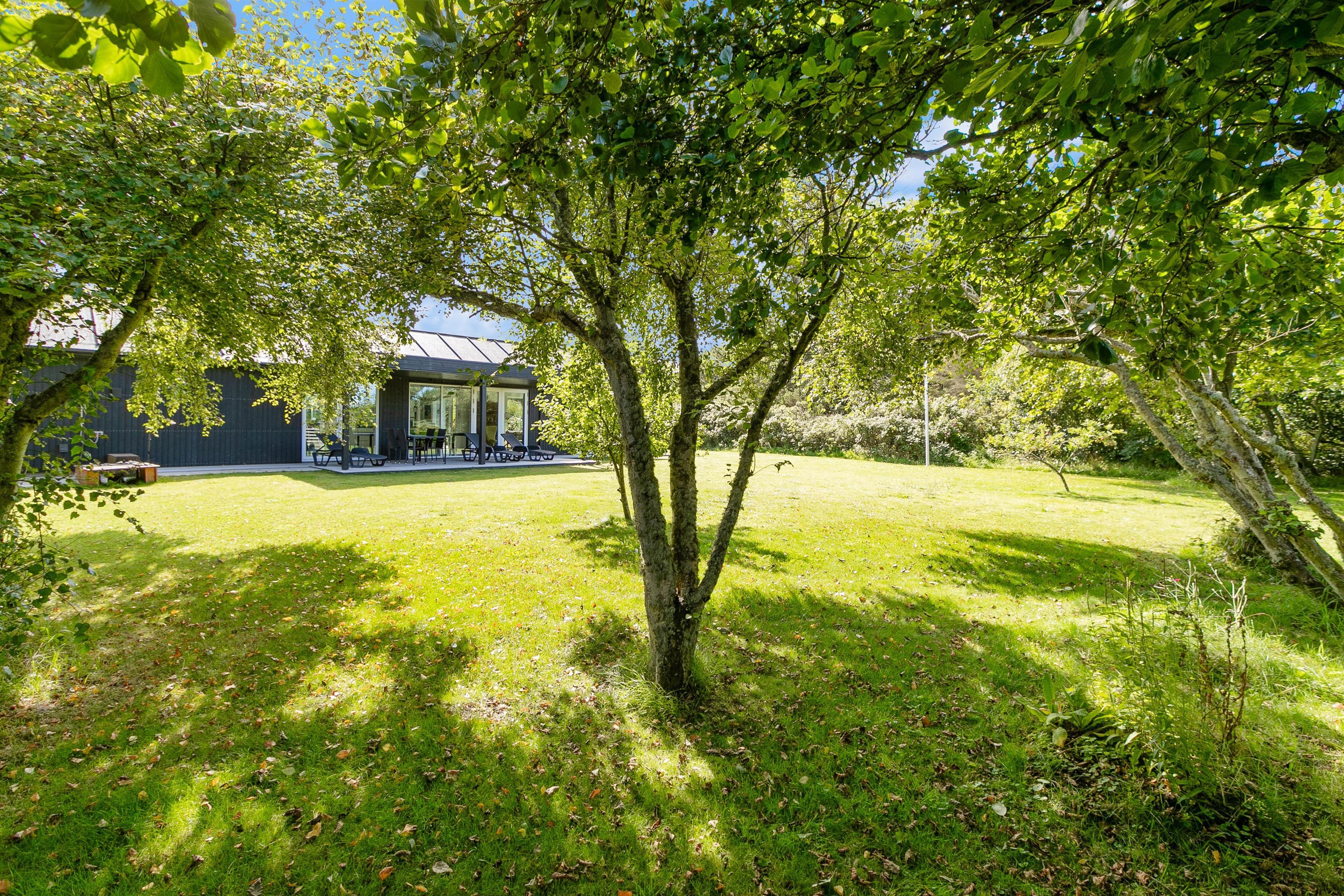 Fra terrassen kommer du ud i den velholdte have, hvor både børnene og hunden har masser af græs at boltre sig på. Et ekstra highlight er det store shelter, som giver dig mulighed for at finde din indre outdoor-type frem og måske sågar tage en sommernat under stjernerne. Når du er udenfor, kan du desuden nyde udsigten til golfbanen på Lodbjerg Hede.