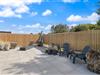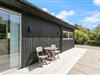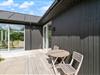 Fra opholdsrummet har du flere udgange til den delvist overdækkede terrasse. På terrassen finder du en gasgrill, så du lynhurtigt kan tilberede lækre feriemåltider – og en udebruser, så du kan få et skyl under den blå himmel. Udebruseren kan bruges fra april til november. Har du elbil eller hybridbil, kan du få den opladet med sommerhusets el-ladestik.