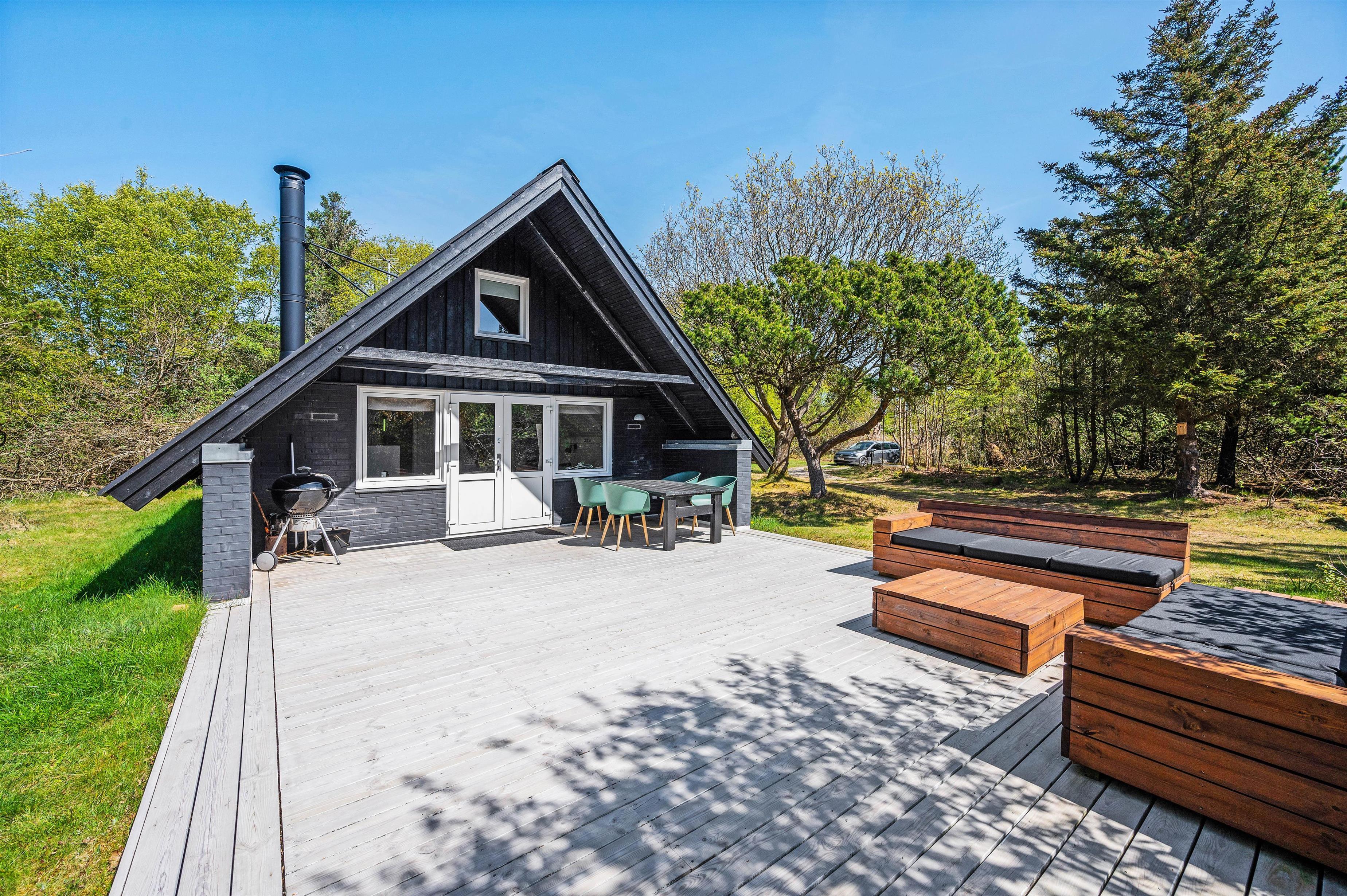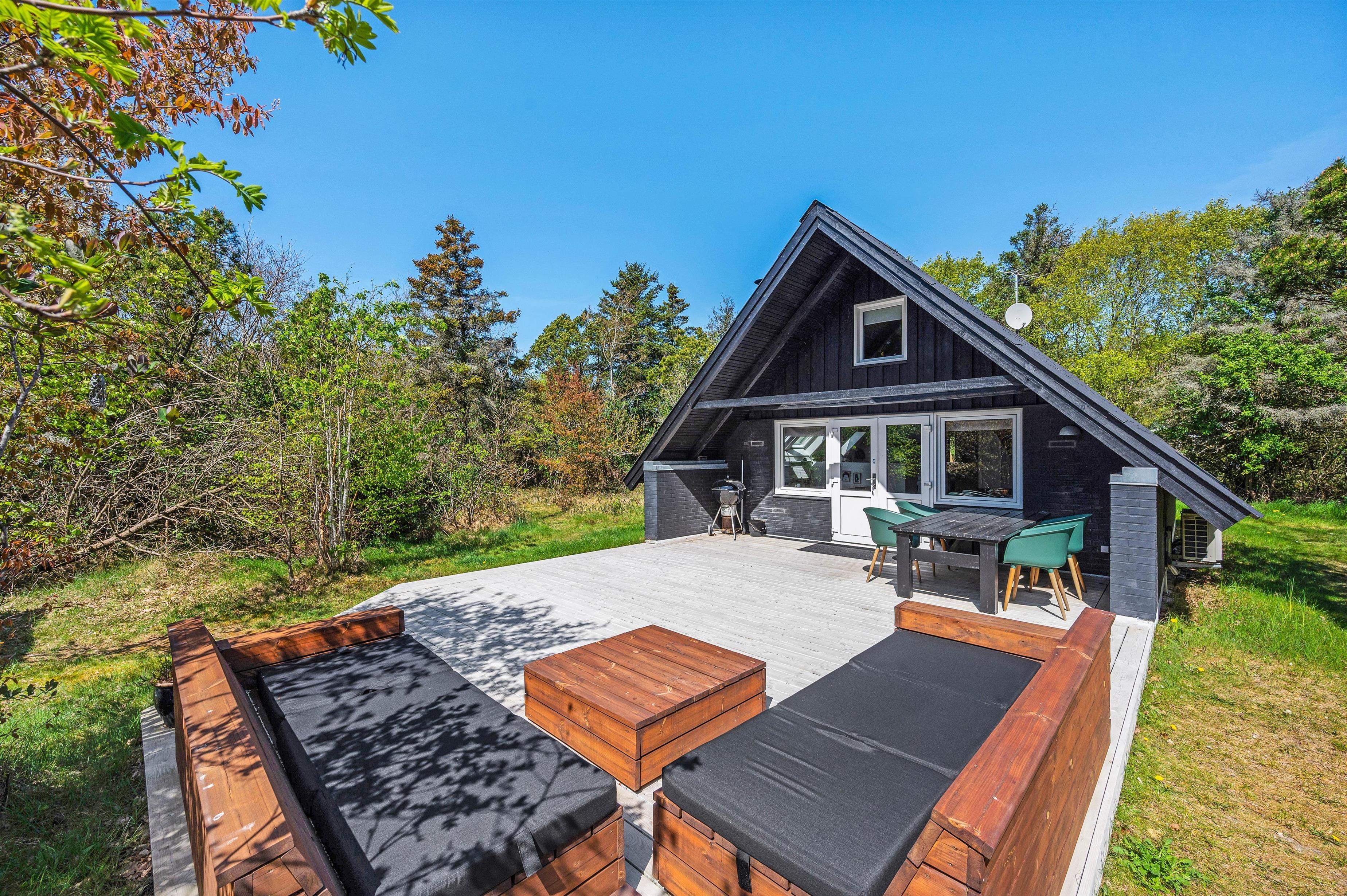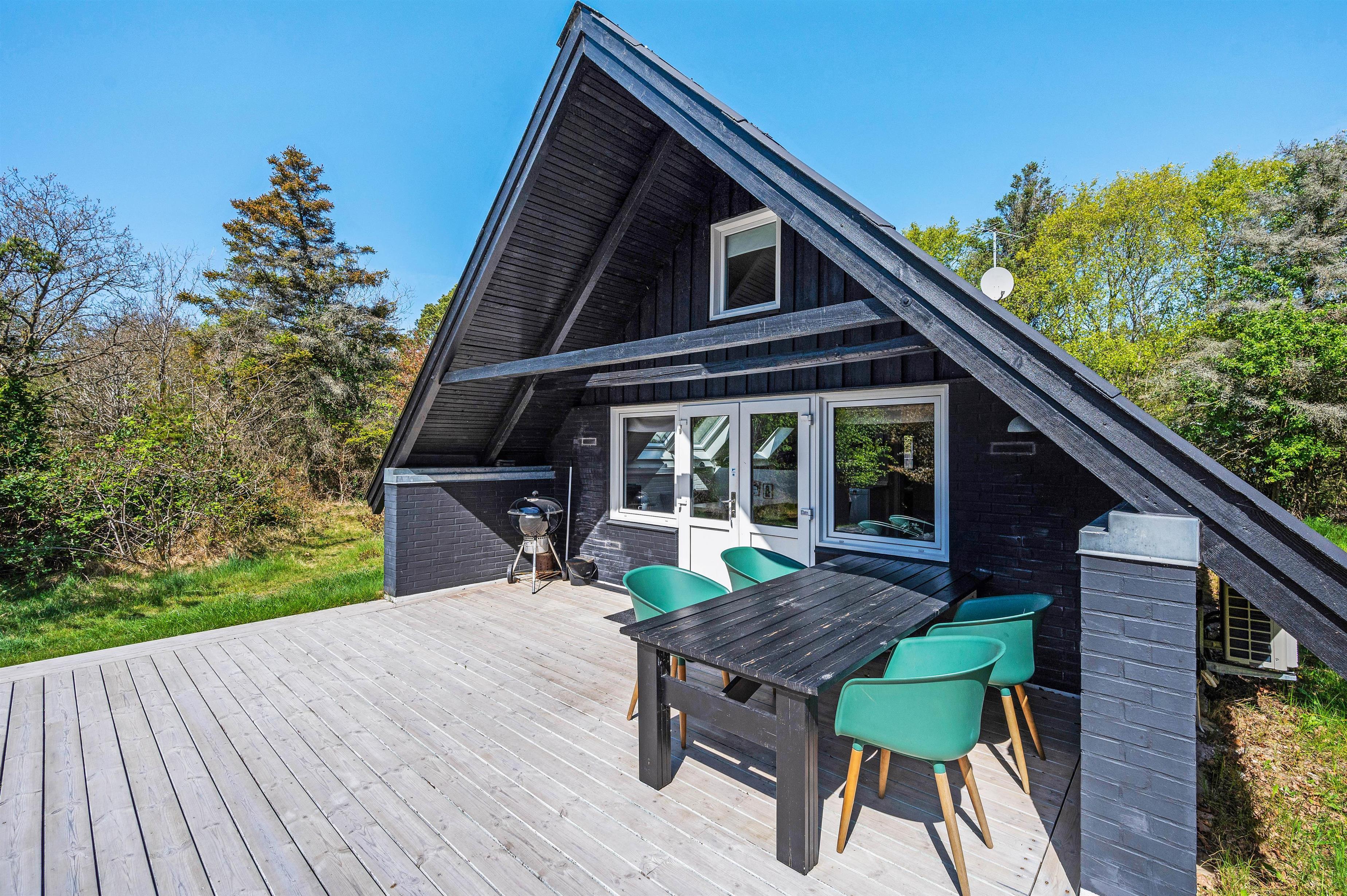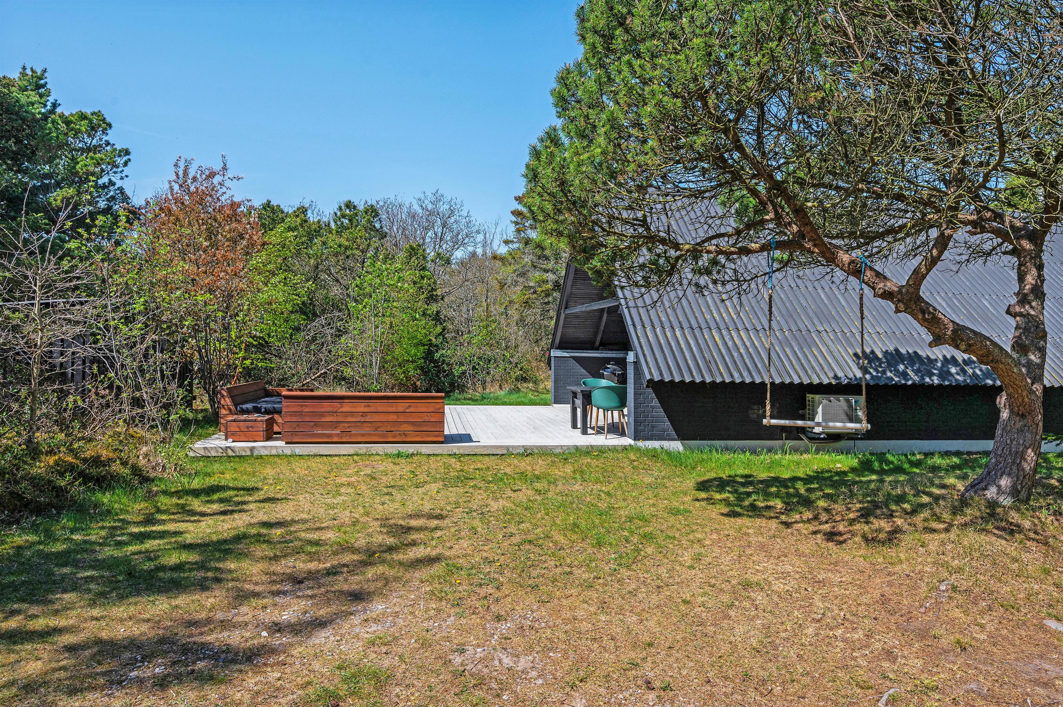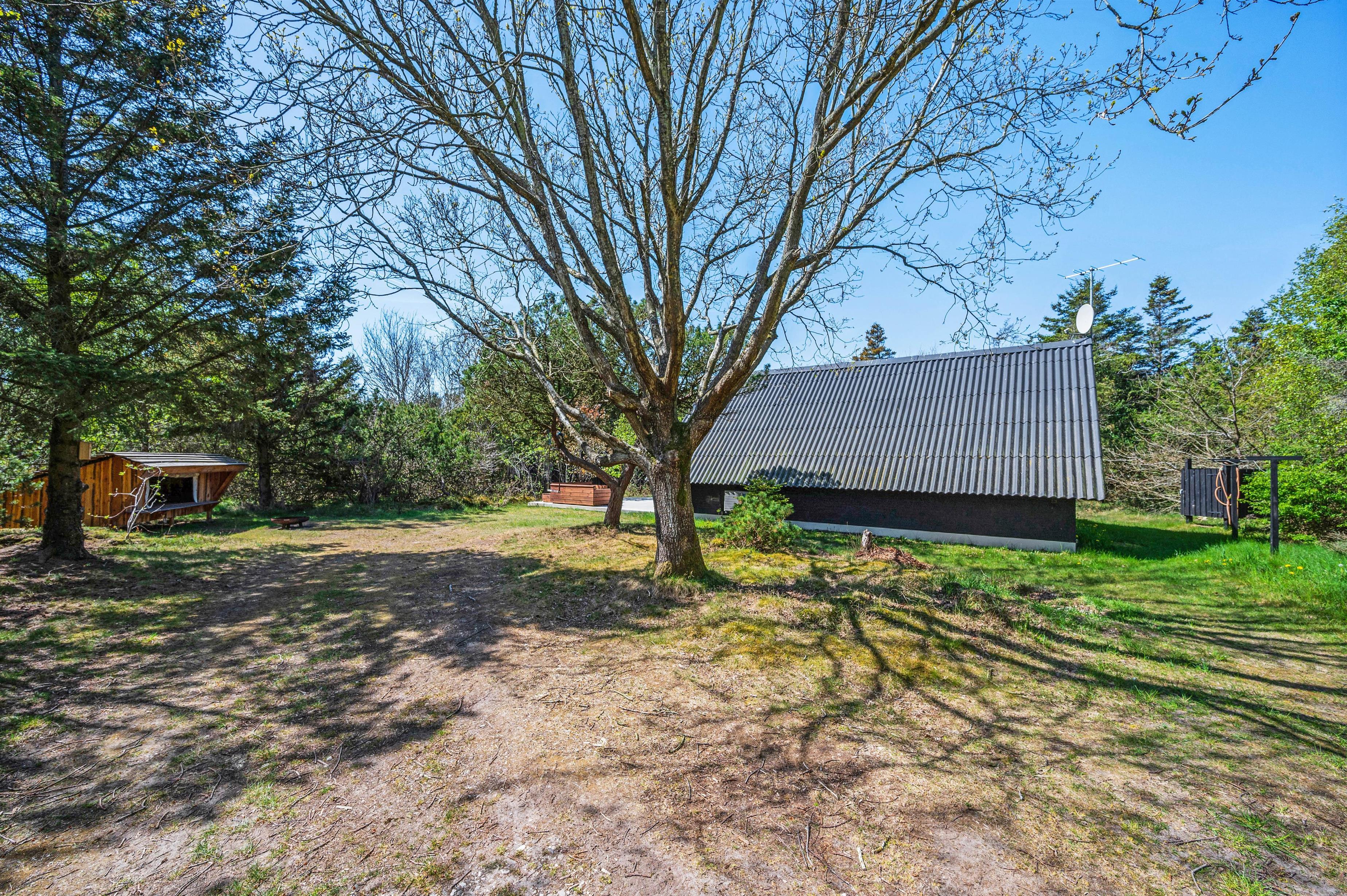 Lodbjerg Hede er kendt for sin smukke natur og sine store, ugenerede sommerhusgrunde, og dette feriehus er ingen undtagelse; huset ligger på en 2.448 kvadratmeter stor grund omgivet af høje grantræer. Her kan I nyde solen dagen lang, ganske uforstyrret, og mens I slænger jer i liggestolene, kan børnene lege på græsplænen eller gå på opdagelse blandt træerne.