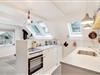 Badeværelset er udstyret med gulvvarme, så I ikke kommer til at fryse de bare fødder om morgenen, og i køkkenet er en opvaskemaskine integreret, som hjælper med oprydningen efter maden.