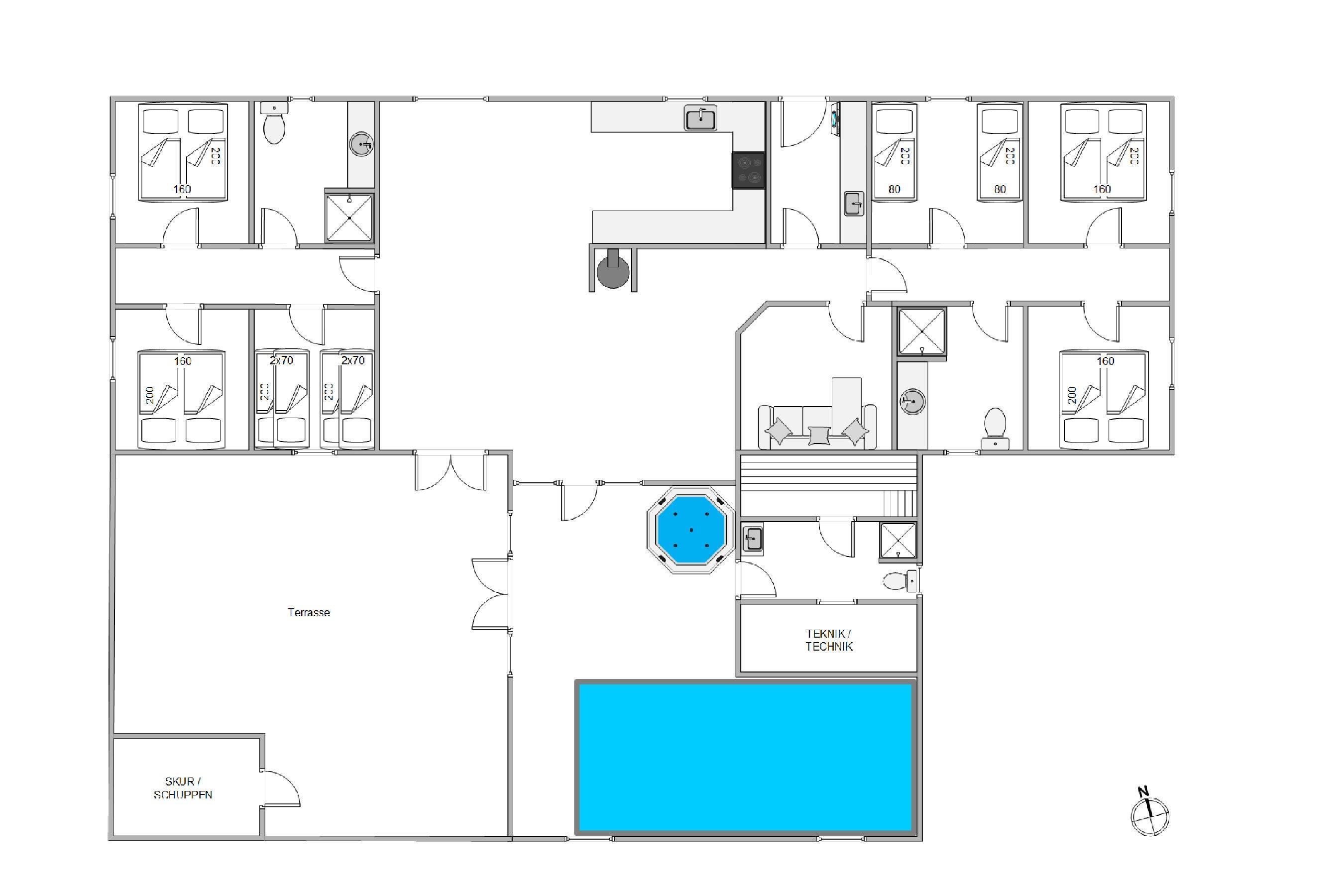 I poolrummet er der udover den 18 m2 store pool, også et spabad og en sauna. Det er oplagt, at mens børnene plasker løs i poolen, at de voksne tager sig en slapper i spabadet eller måske i saunaen. De bidrager til, at I kan få ladet batterierne op og nyde lidt wellness imens I er på ferie.