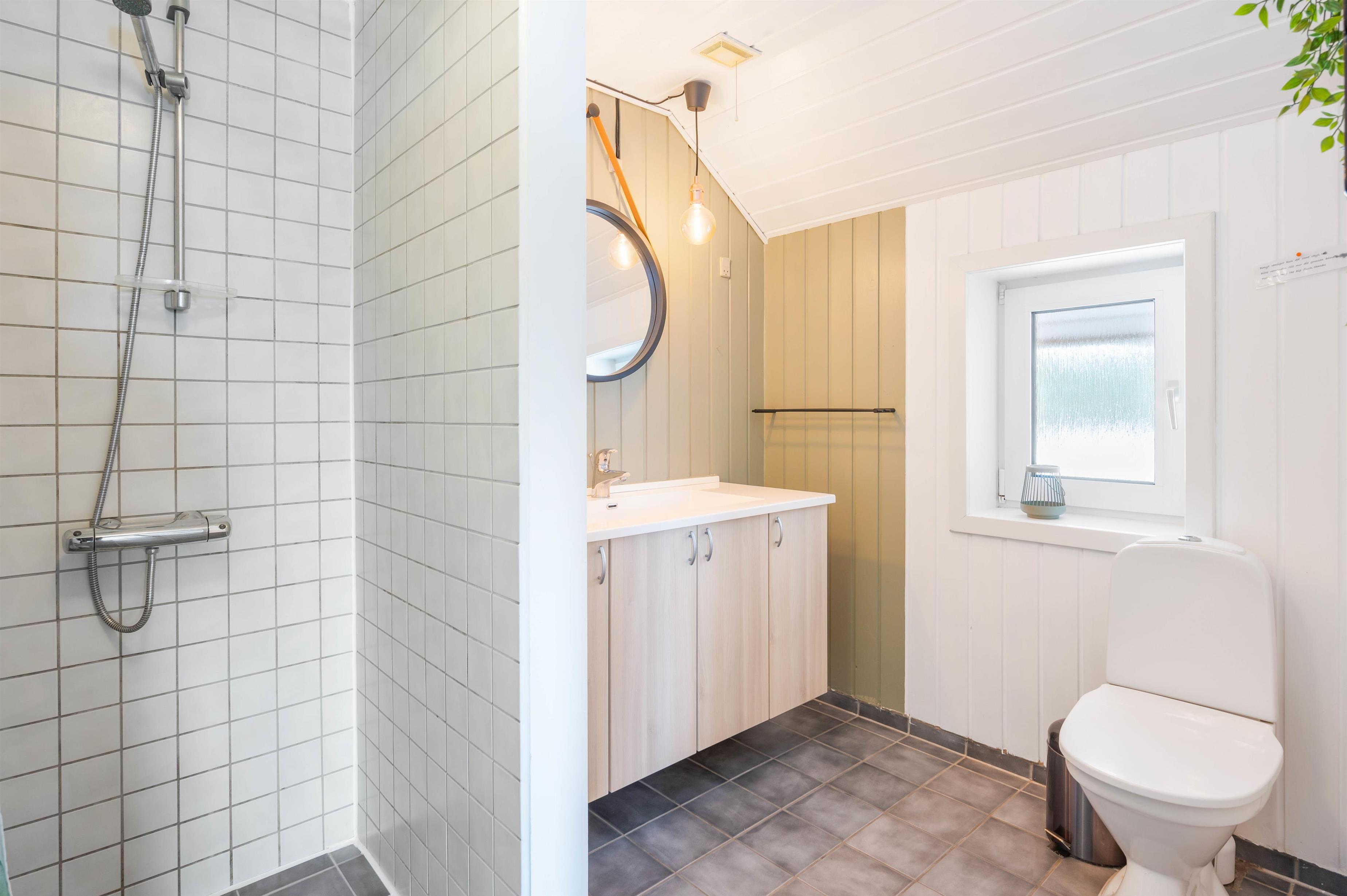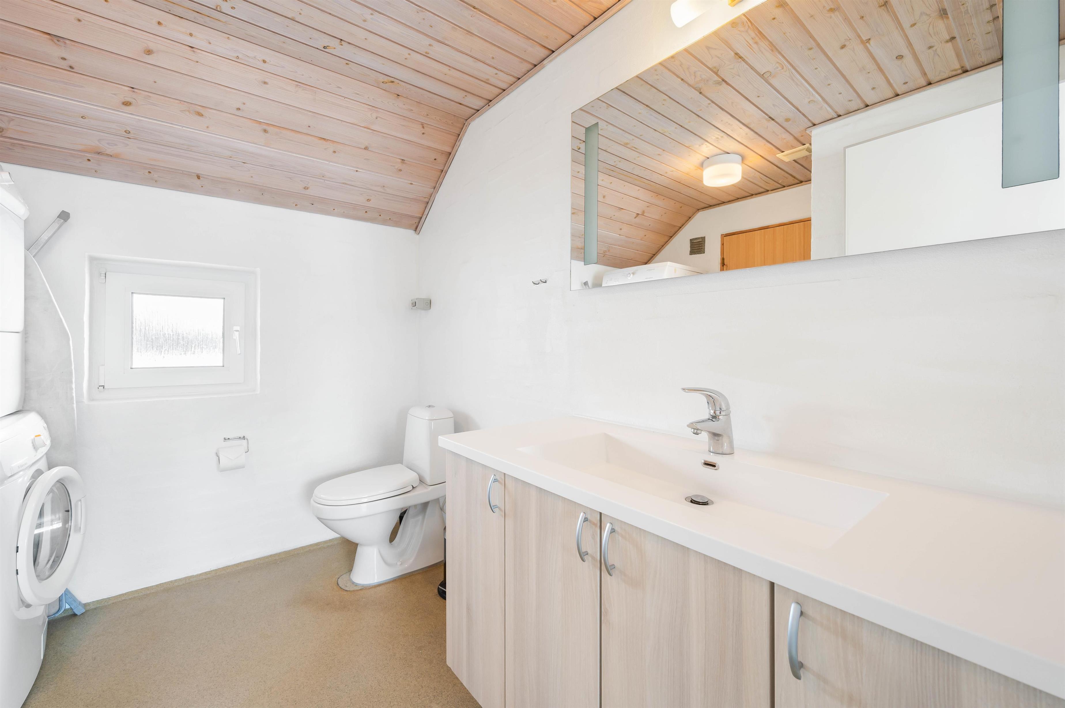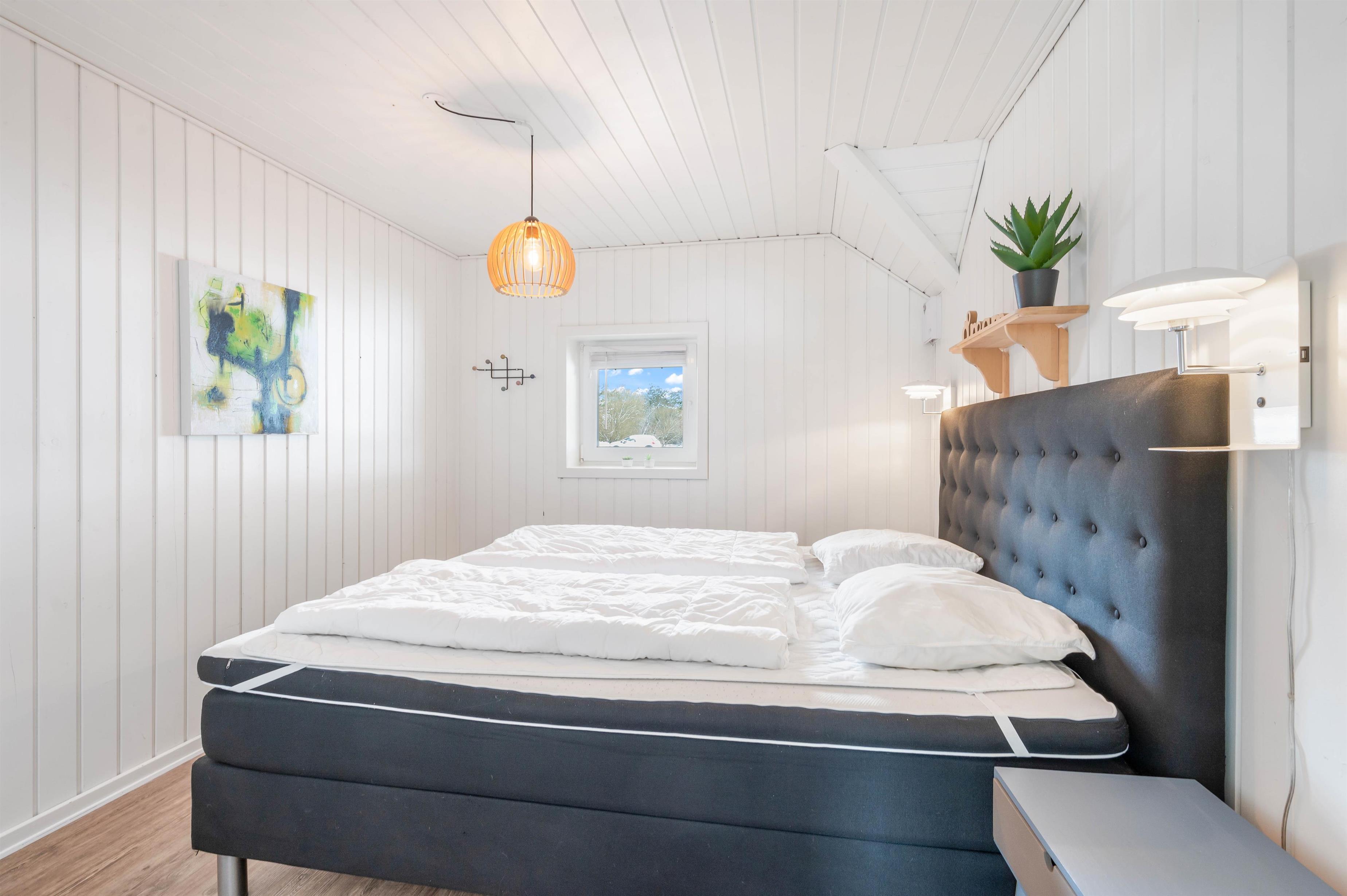 Dette sommerhus har med fire soveværelser, en hyggelig hems og to badeværelser den rette indretning og plads til at huse helt store familier eller flere familier, der ønsker en dejlig ferie sammen. På badeværelset, der ligger ved køkkenet er der desuden gulvvarme, så I behøver ikke at få kolde fødder om morgenen, når I træder ud på dette badeværelse.