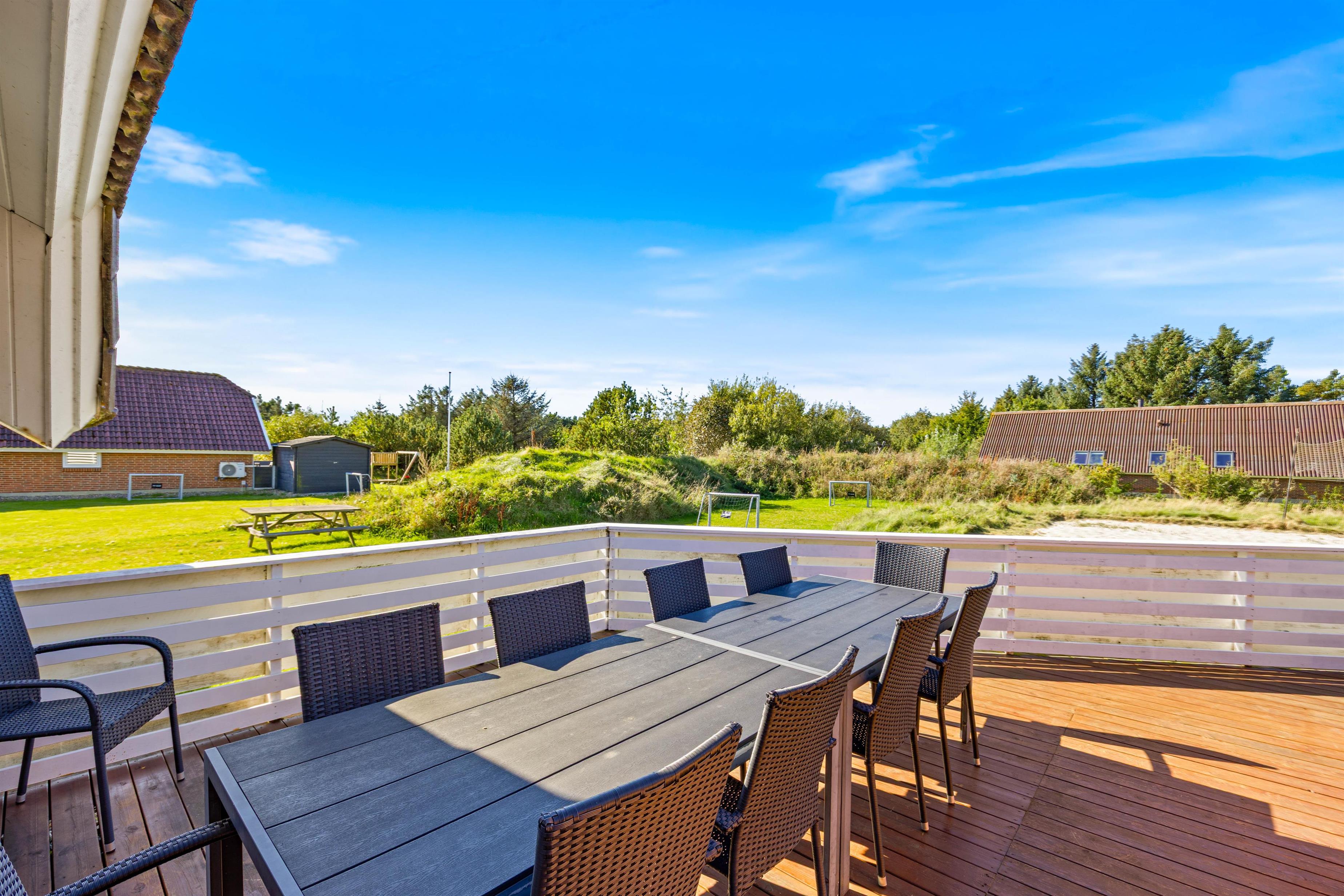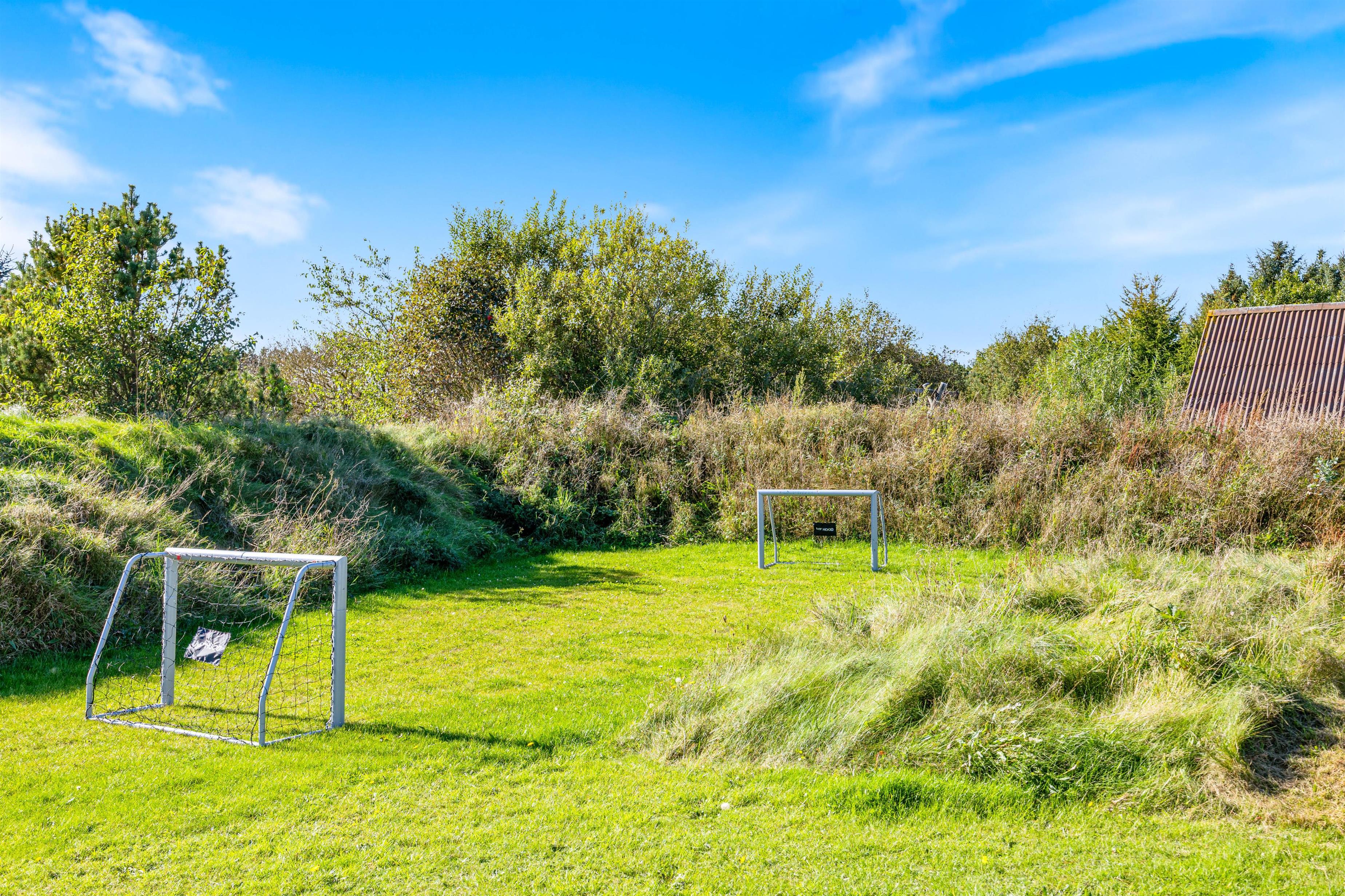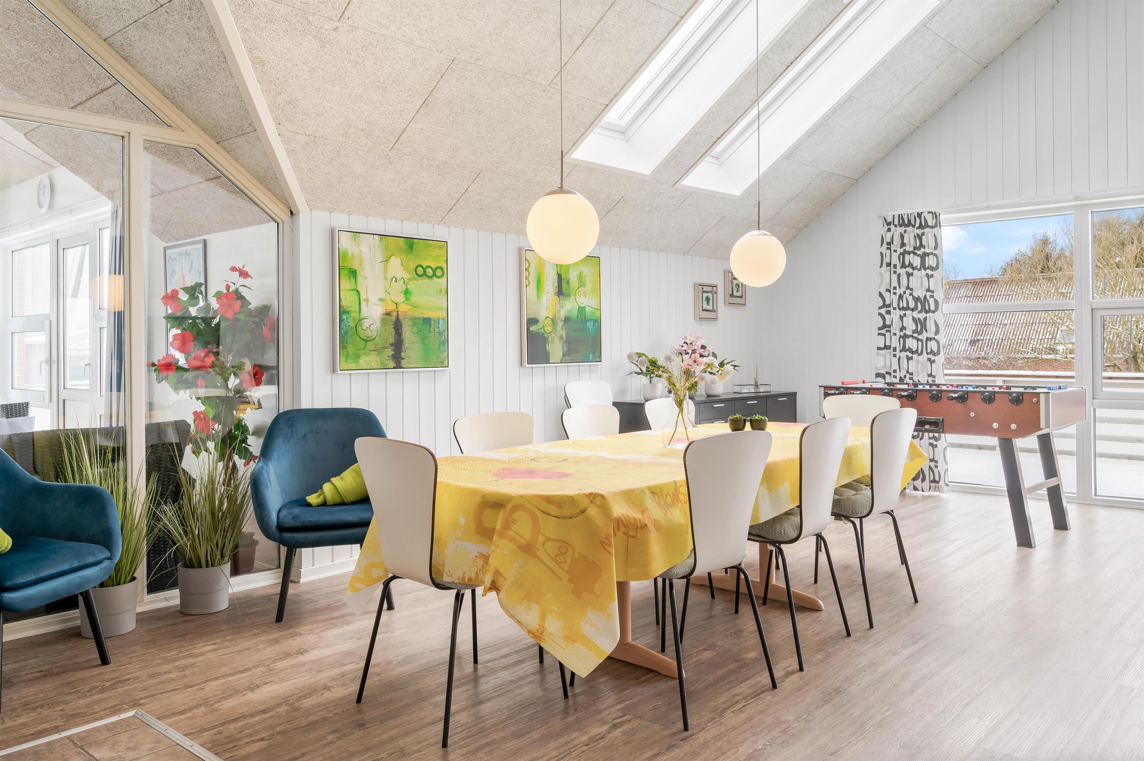 Velholdt sommerhus med dejlig afskærmet terrasse på en stor naturgrund. Huset egner sig især til aktive familier, da det er udstyret med både swimmingpool og bordfodbold – så her kan hele familien dyste mod hinanden i sjove aktiviteter.
