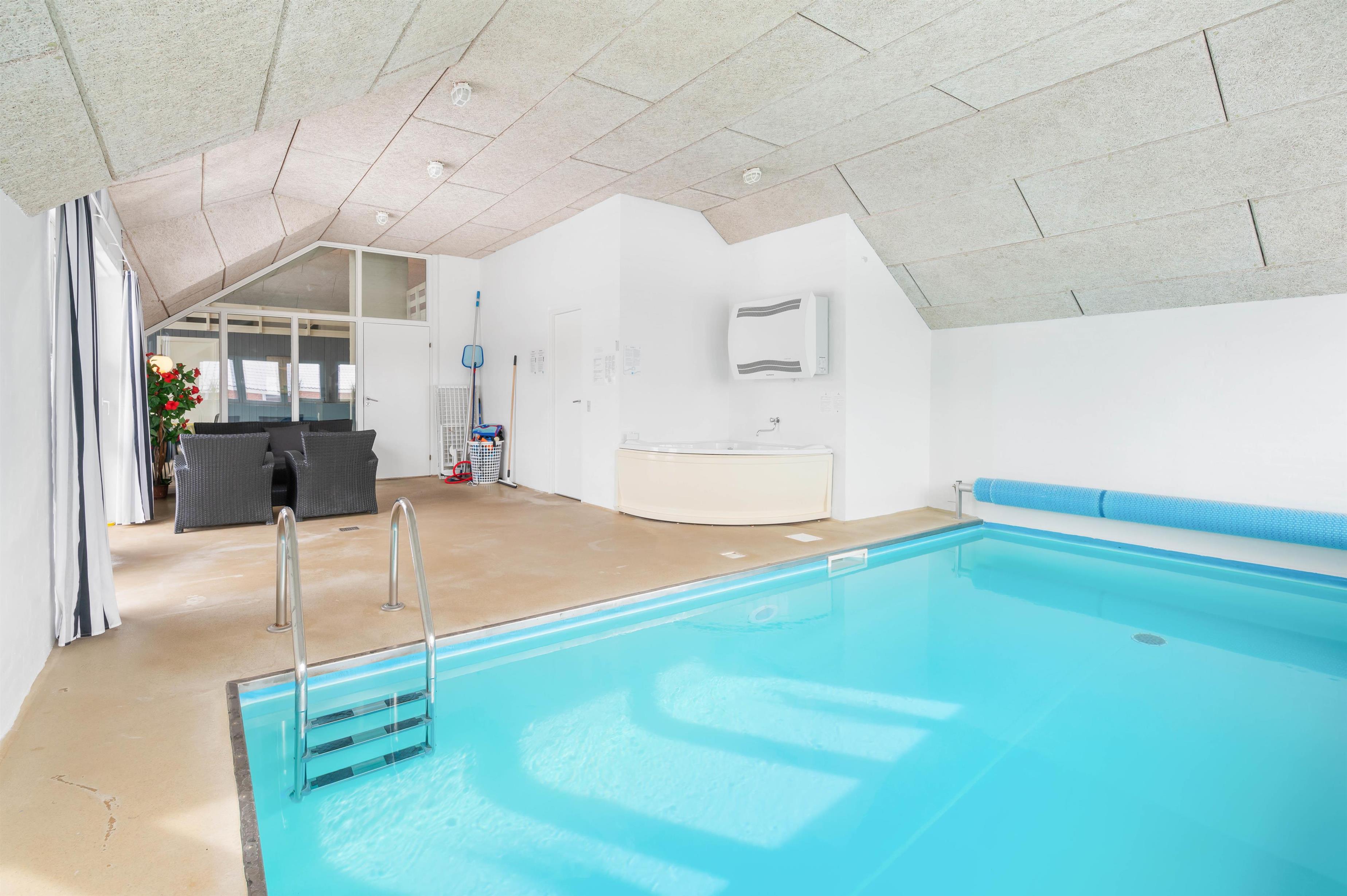 Sommerhuset har også en dejlig poolafdeling, hvor den 18 m2 store swimmingpool indbyder til både leg og motion. Ved siden af poolen står den store spa, hvor man kan geare helt ned og blive varmet godt igennem.