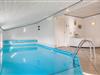 Der er et separat rum med pool og spaområde. Her ligges der op til at være sammen, have det sjovt i poolen eller nyde en afslappende tur i spabadet. Poolen har et lille område med 30 cm dybt, vand som giver frihed for de mindste. Resten af poolen er 120 cm. dyb. Dette sommerhus er det oplagte valg til jer, som ønsker at være aktive sammen og lade jer underholde af de fantastiske muligheder med et skønt vandområde.