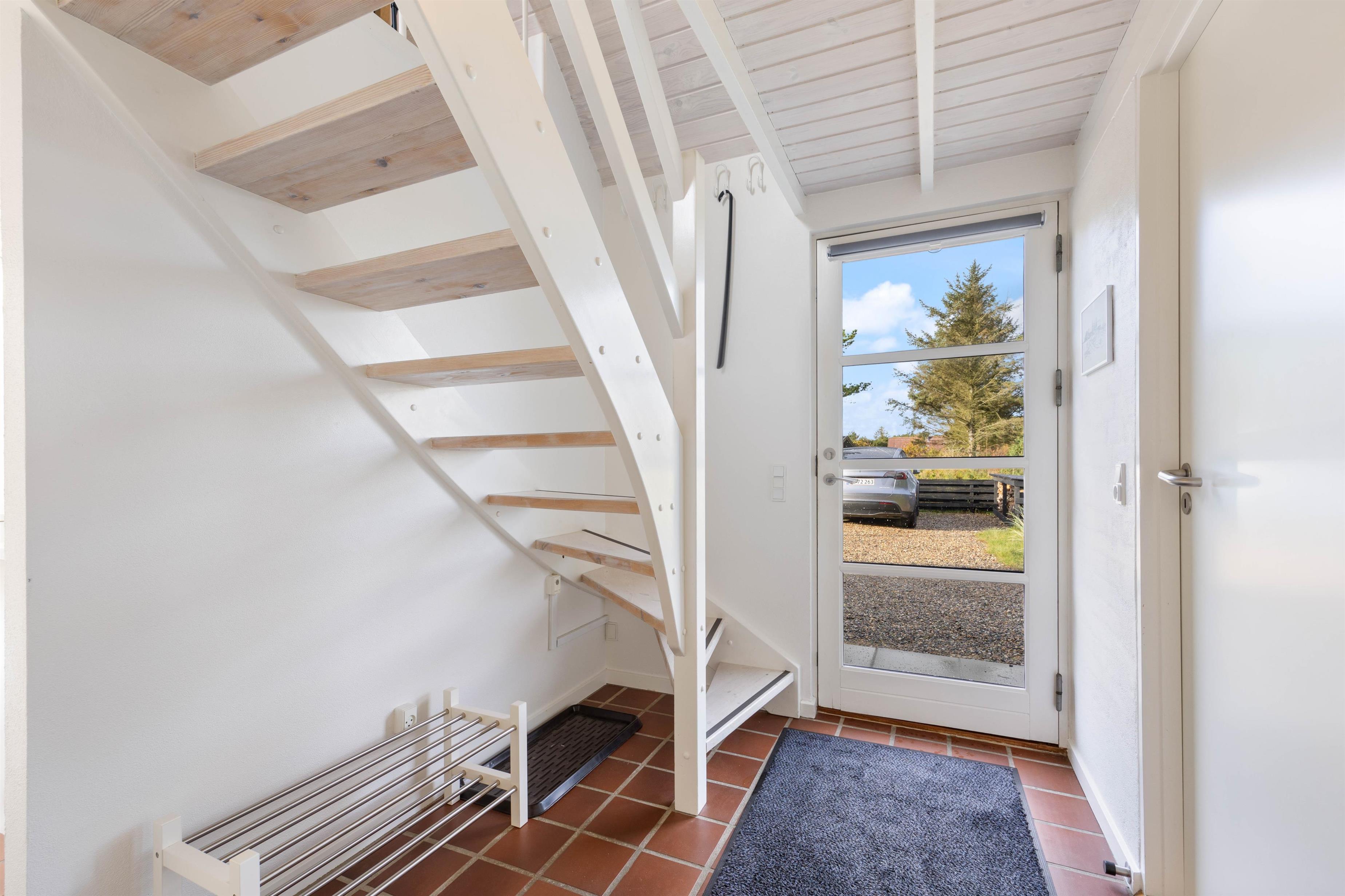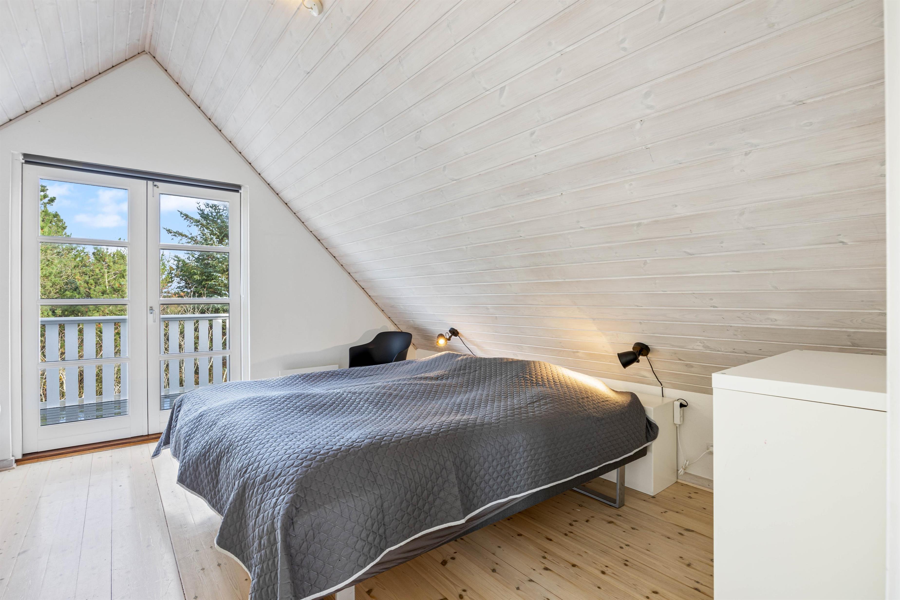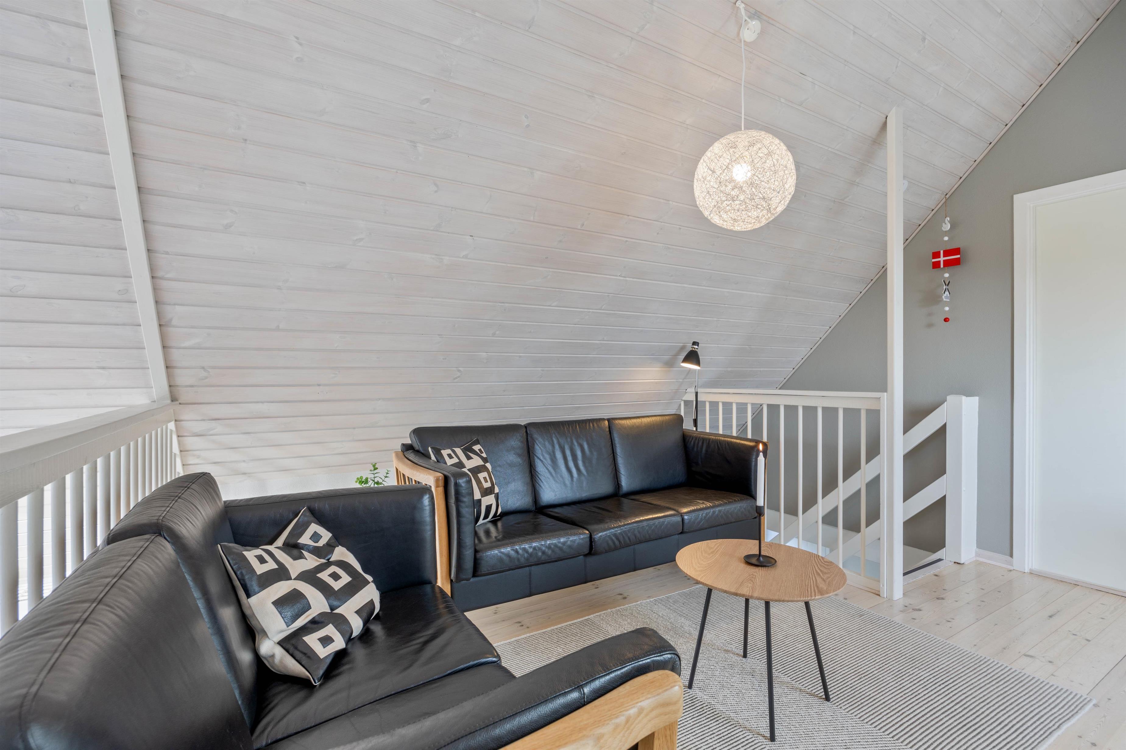 Hybenvej 16 er fordelt på 3 soverum, alle 3 med dobbeltsenge. Fra stuen er der en trappe op til hemsen, som er indrettet som stue. Oppe på førstesalen finder I også det ene af husets soveværelser, som har direkte adgang til den nordvestvendte altan. Nedenunder finder I feriehusets 2 badeværelser, hvoraf det ene er udstyret med et lækkert badekar. Her kan I få ladet batterierne op og rigtig få slappet af.