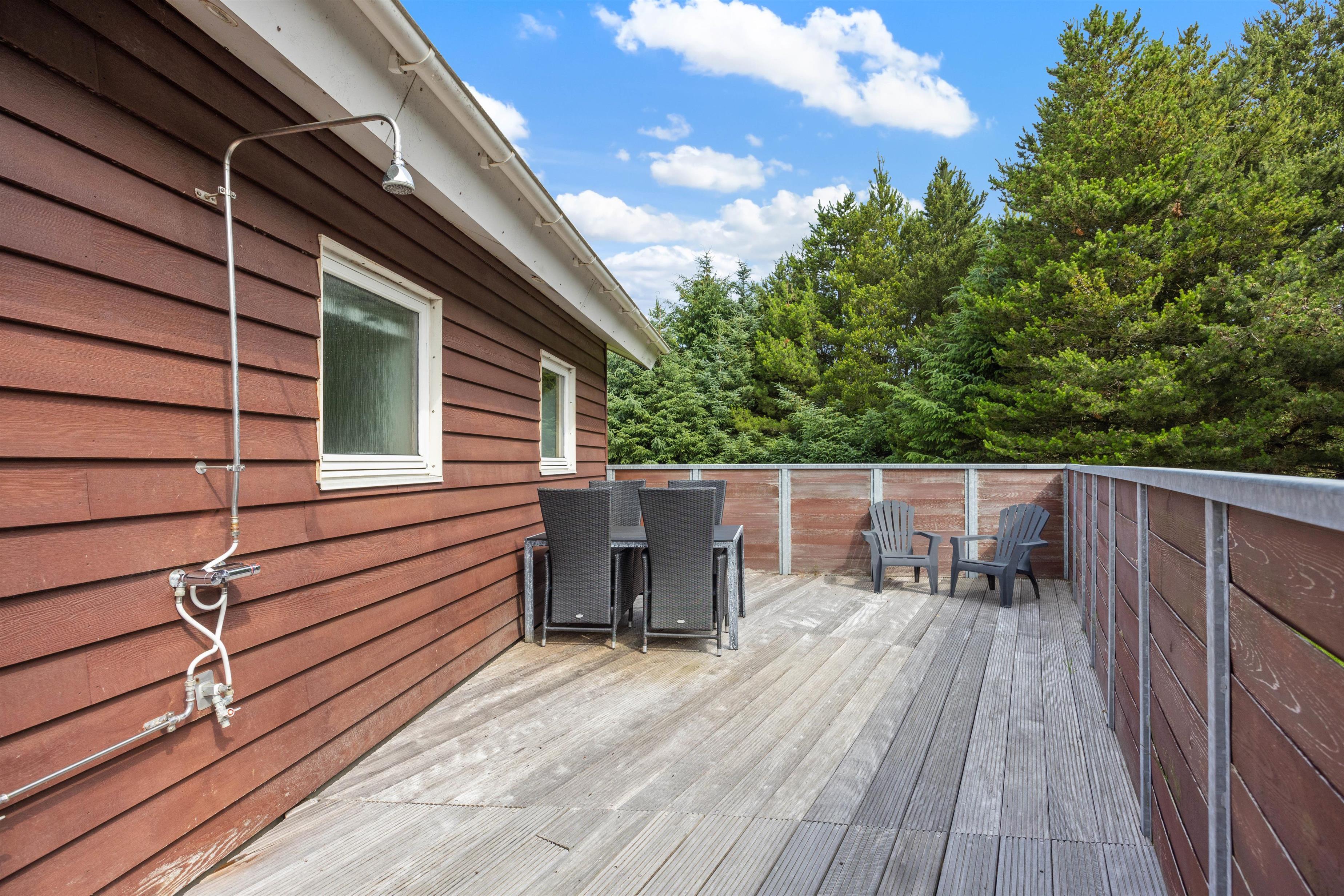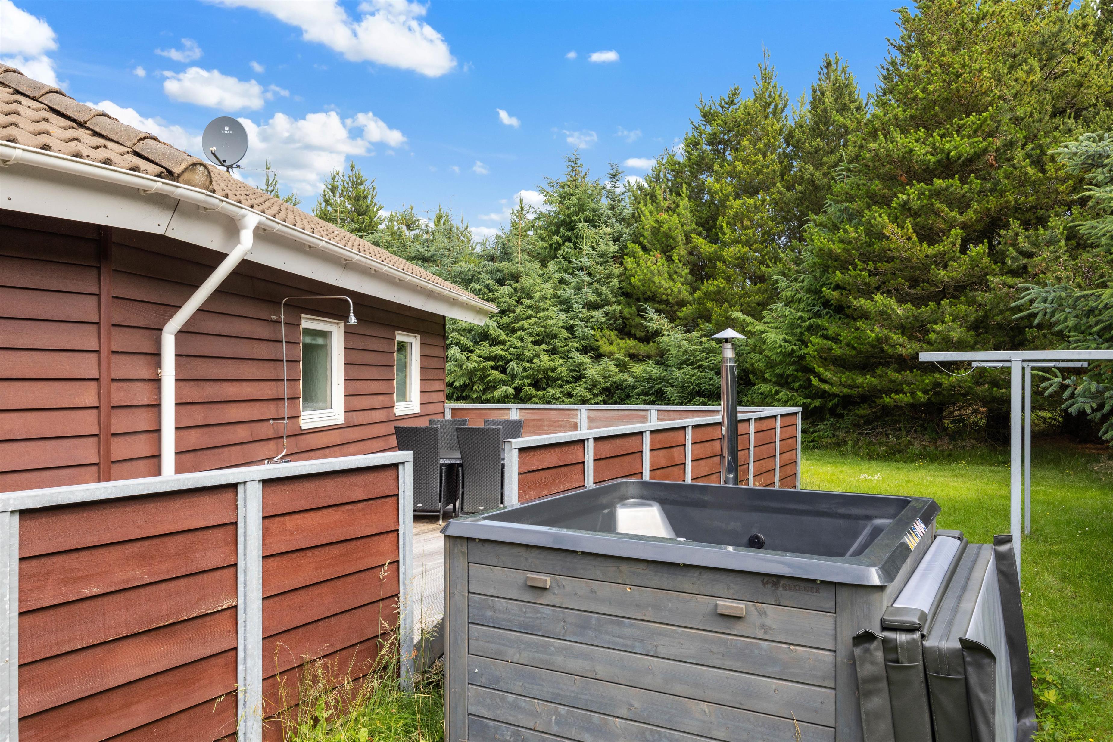 Det hyggelige feriehus på Risbjergvej 30 ligger på en 2000 m2 stor grund midt i naturen på Lodberg Hede. Omgivet af træer og med en rolig beliggenhed er det et vidunderligt sted at slappe af. Der er en trampolin til børnene, hvor de kan få mange timer til at gå og den store terrasse, som også er delvist overdækket, gør det til en fornøjelse for jer at solbade eller grille et lækkert måltid.