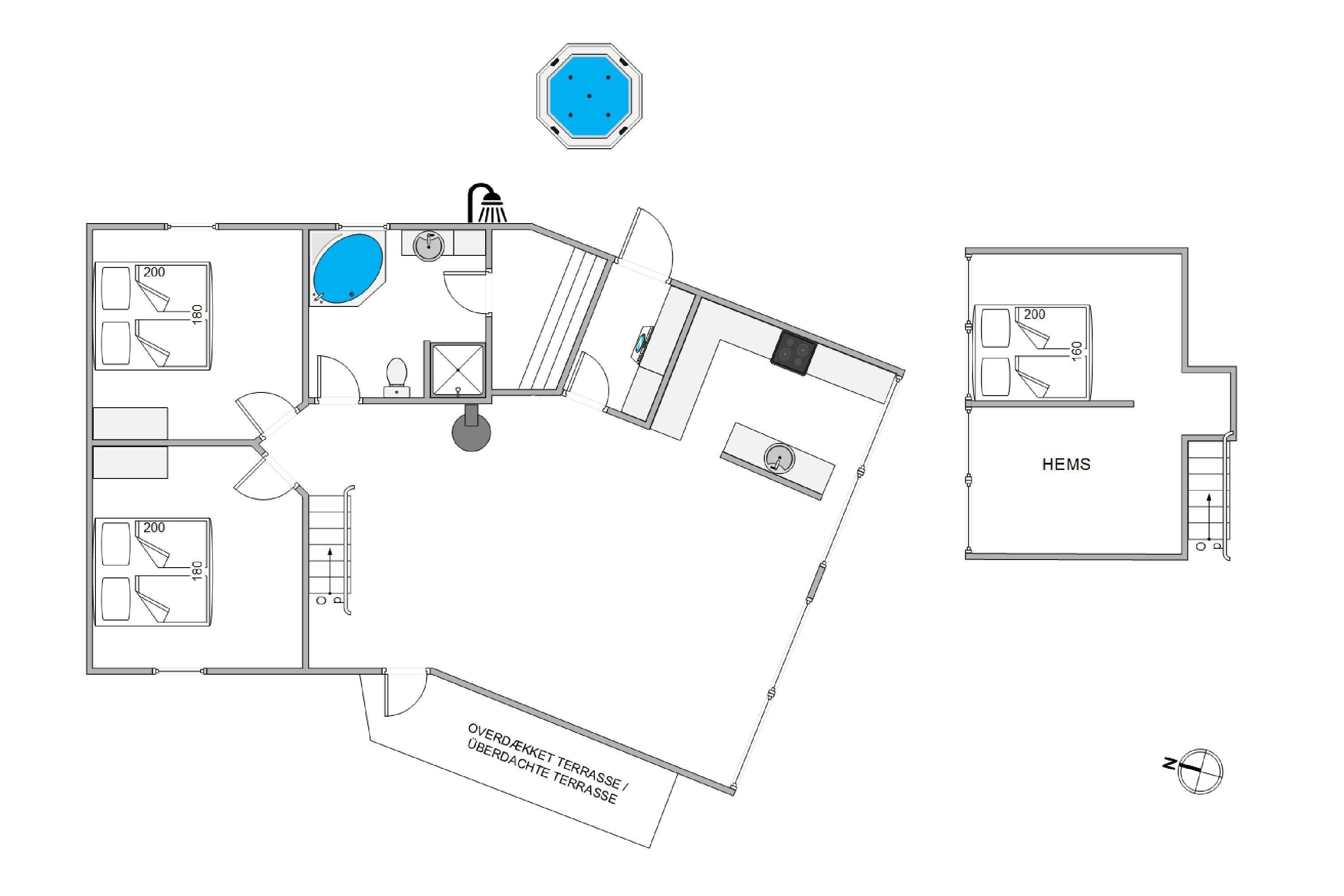 Efter en lang, dejlig dag ved havet kan I slappe af i boblebadet og efterfølgende i saunaen og dermed lade batterierne op til en ny dag. I de 3 soveværelser finder I jeres velfortjente, afslappende søvn. Feriehuset råder over 2 værelser i stueetagen og ét værelse på øverste etage. Luft-til-luft-varmepumpen og den hyggelige træpille brændeovn i stuen sørger for en behagelig temperatur og energibesparende opvarmning.