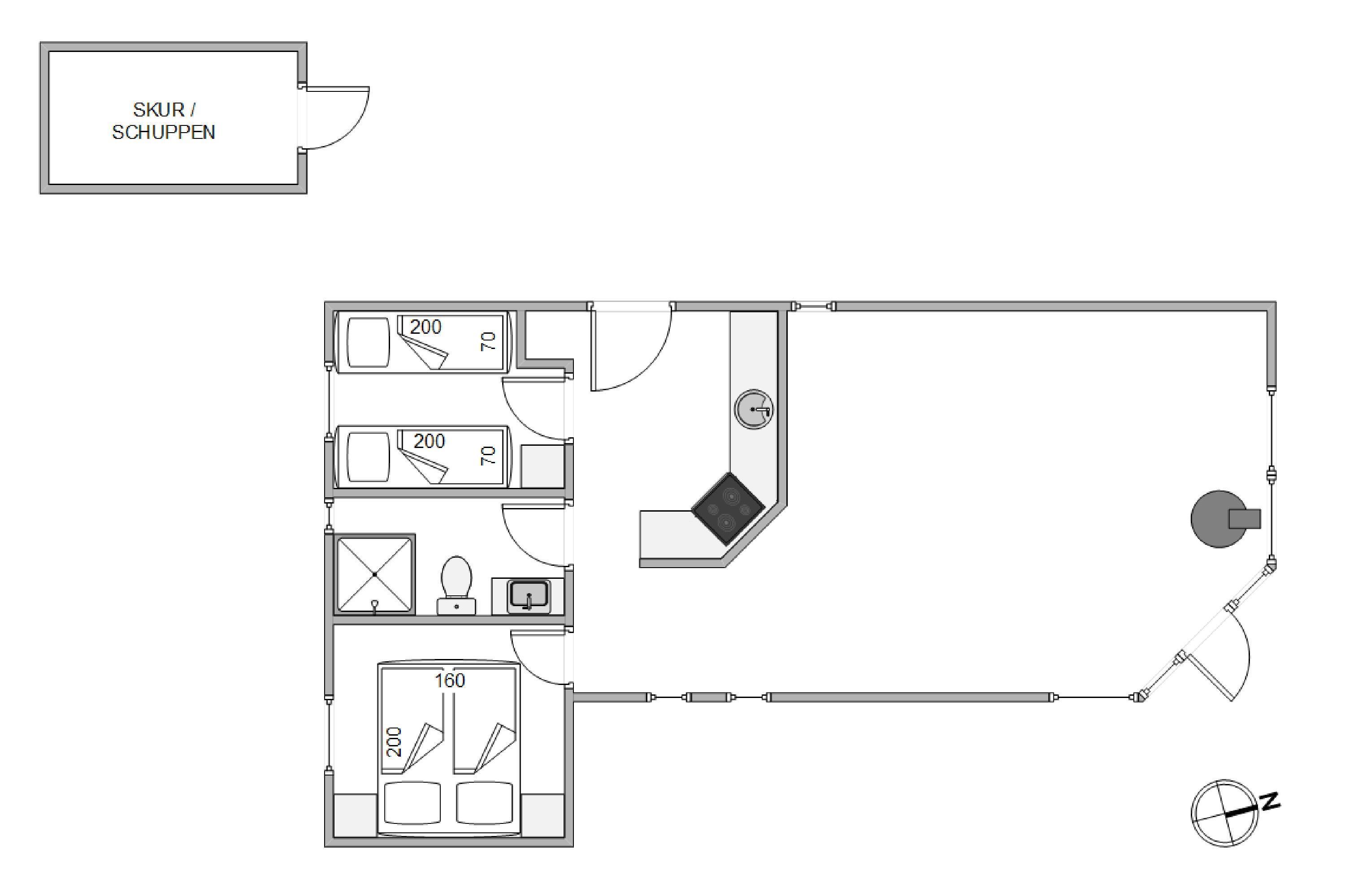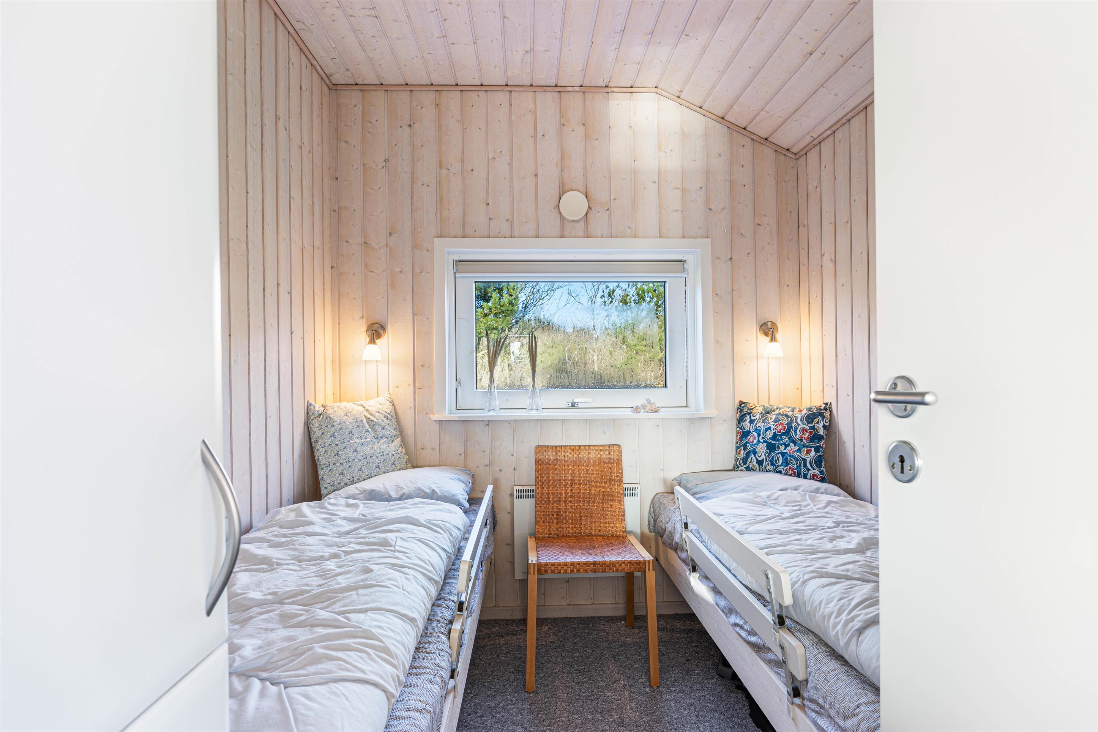 Sommerhuset på Sivsangervej 19 er udstyret med 2 soverum, hvoraf det ene råder over en dobbeltseng og det andet værelse med 2 enkeltsenge. Her kan I efter en lang og oplevelsesrig dag igen få ladet batterierne op. Om morgenen behøver I ikke bekymre jer om at få kolde fødder, da feriehusets badeværelse er udstyret med lækker gulvvarme.