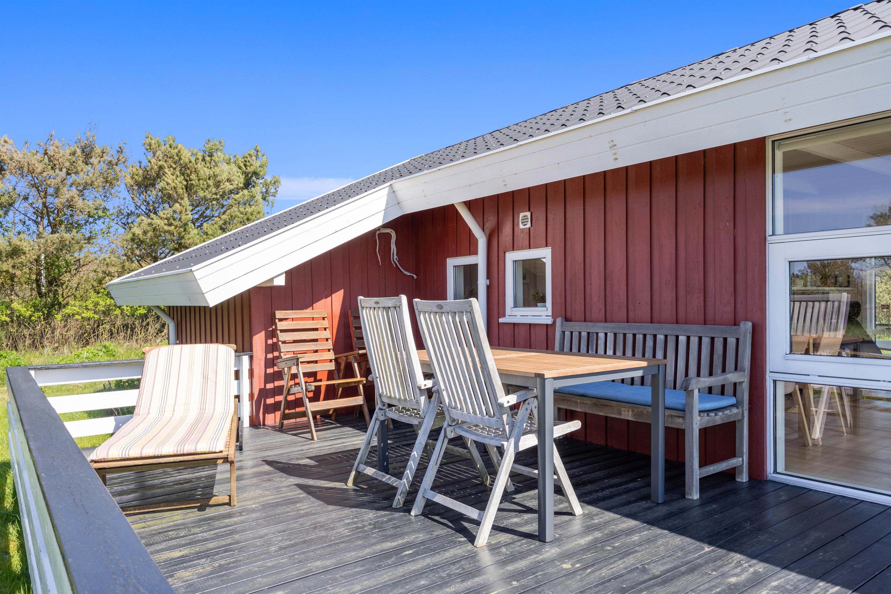 Når I træder udenfor sommerhuset, bliver I mødt af et skønt terrasse- og udeområde. Her er der rig mulighed for jeres firbenede ven at brænde krudt af på den tilhørende grund. Samtidig med dette kan I ved hjælp fra feriehusets grill tilberede et lækkert aftensmåltid og slappe af i sommerhusets havemøbler.