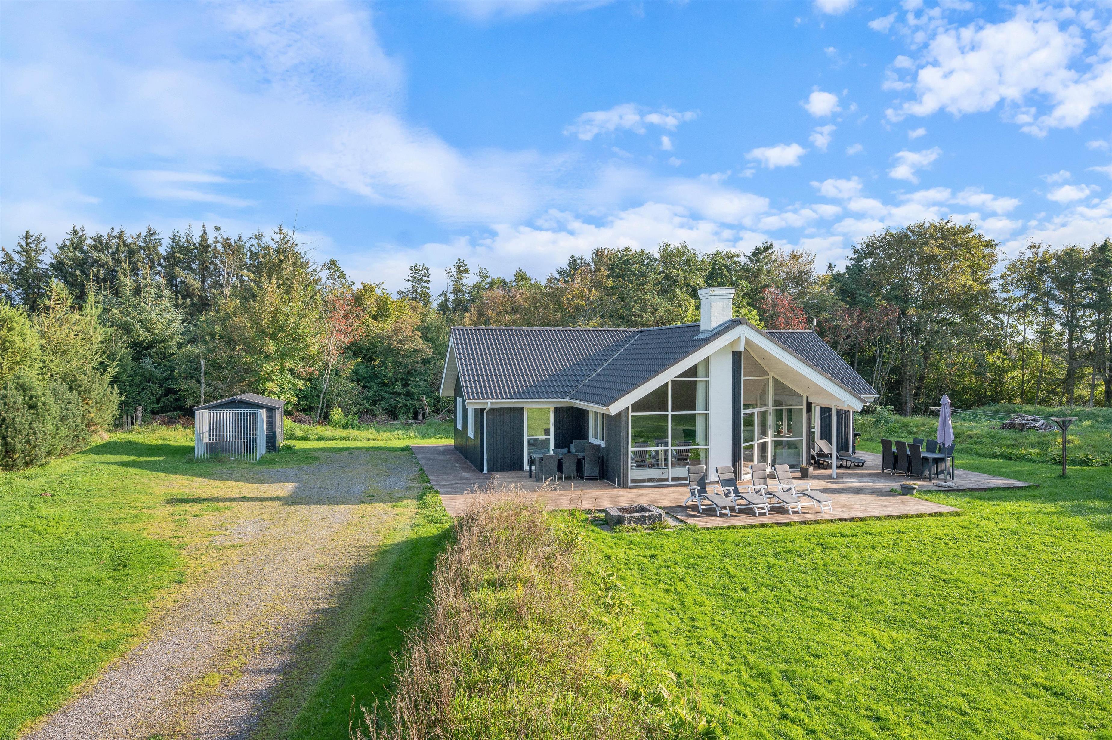 Den dejlige træterrasse, som strækker sig rundt om hele sommerhuset, er det perfekte sted at nyde både solen og den fredelige ro. Her kan I følge solens gang hele dagen og finde jeres foretrukne læhjørne, eller samles om lækker grillmad på sommerhusets grill efter en aktiv dag i den smukke vestjyske natur. Med en stor grund på 2.181 kvadratmeter og komfortable havemøbler er der rig plads til afslapning og hyggelige stunder udendørs.