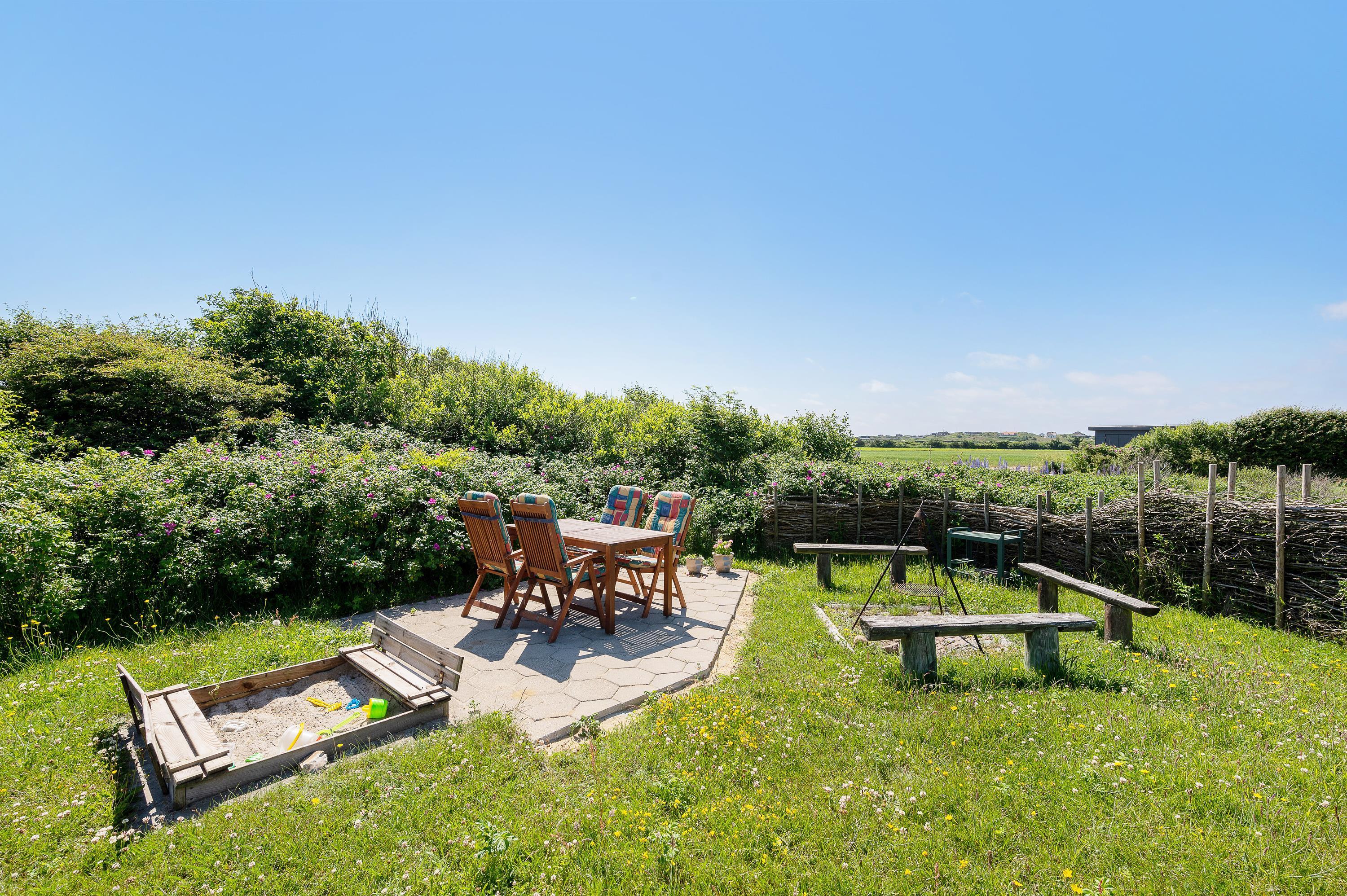 Ved feriehuset har I også en dejlig sydvendt terrasse, som kan nydes helt fra morgen til aften. Her kan I nyde solens stråler og udsigten til den smukke natur. Og mod vest er terrassen overdækket, hvilket er helt perfekt til en hyggelig grillaften i den danske sommer. I og ved feriehuset vil du sikkert nyde roen, den smukke natur og grunden, hvor der er plads til leg og boldspil med børnene. Ved huset er der gyngestativ og fodboldmål, så her kan børn og barnlige sjæle for alvor slå sig løs.