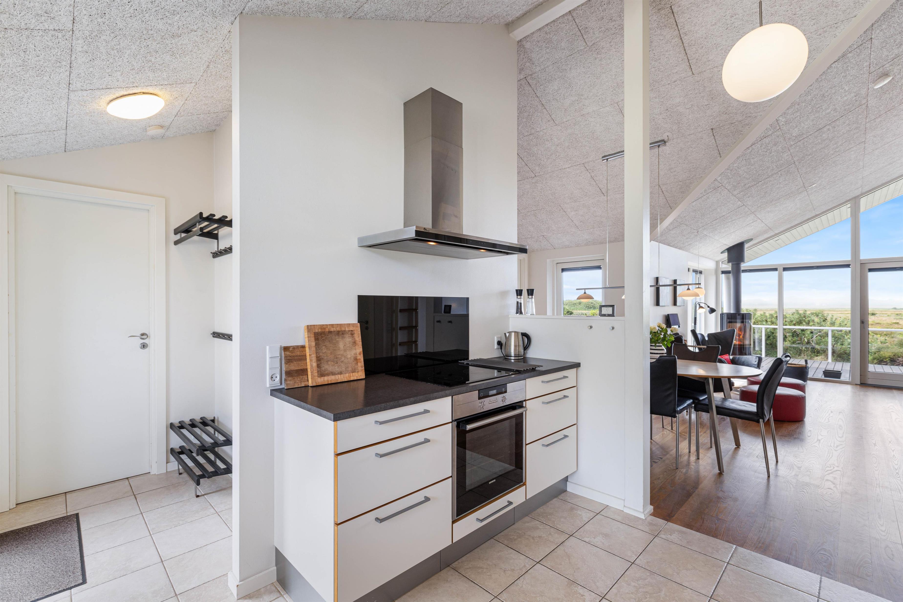 Et flot og moderne feriehus beliggende for enden af en rolig stikvej på Lodbjerg Hede Til dette feriehus er der desuden installeret en lademulighed, så I efter en god køretur i det vestjyske har mulighed for at oplade jeres elbil. Huset er opført i rigtig gode materialer af høj kvalitet og med mange flotte detaljer. En stor familie vil nyde den gode plads, både indenfor og ude på terrassen. Der er tænkt meget i energibesparelse, så huset er særdeles godt isoleret, hvilket også er tilfældet med vinduerne.