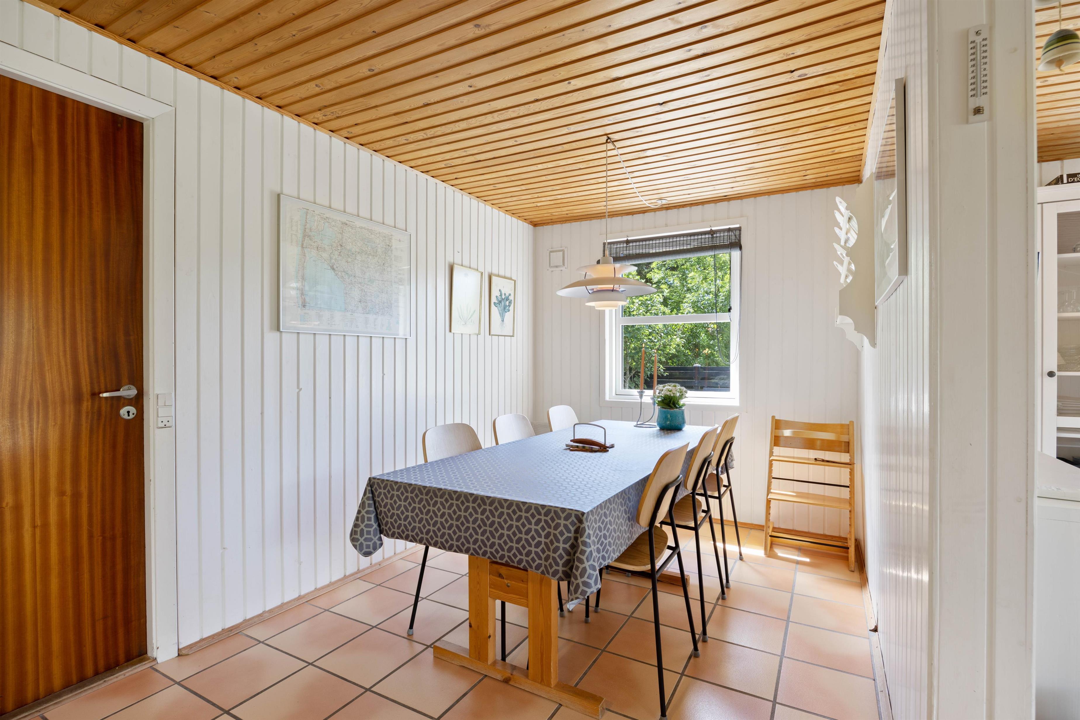 Rundt om huset findes en masse små kroge, hvor I kan slå jer ned med en god bog eller nyde solens stråler. En af disse kroge byder på et væld af rosenbuske, der kan akkompagnere jeres middage med en liflig duft af blomsternes sødme. Og viser vejret sig fra sin lunefulde side? Så kan I i stedet søge ind under den overdækkede terrasse, hvor der er gjort klar til hygge med behagelige havemøbler. Så I kan sagens nyde bøffer på grillen, selvom der skulle komme et par dryp fra himlen.