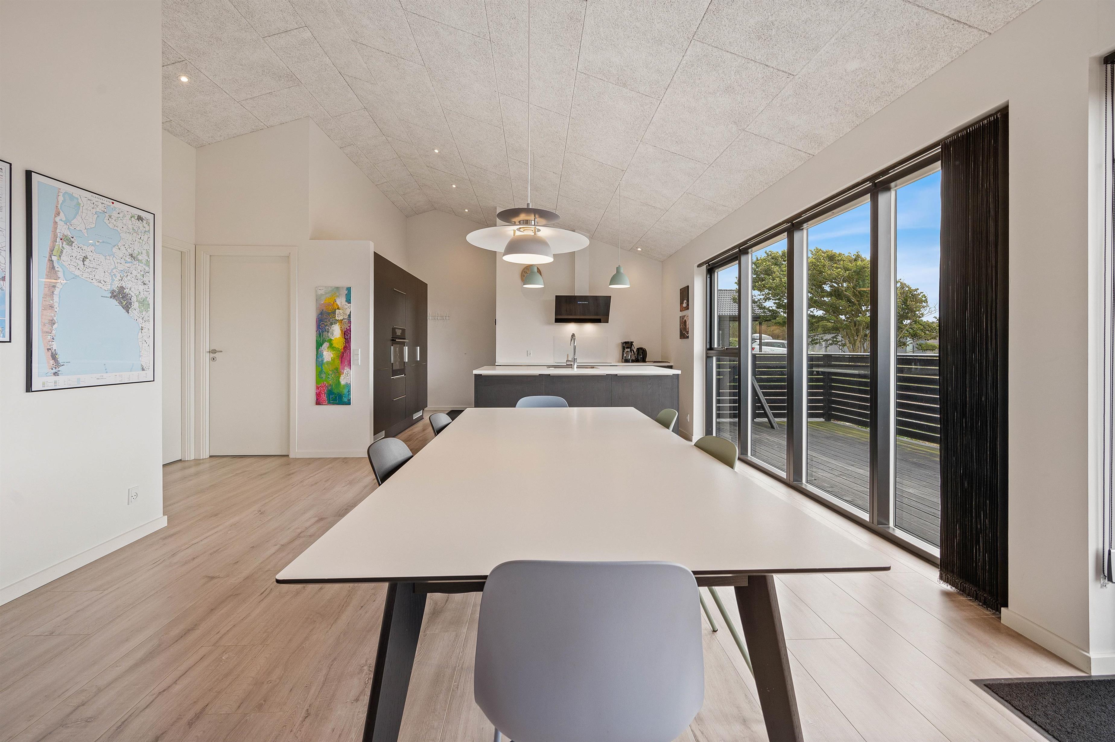 Lyse farver, lækre møbler, højt til loftet og store vinduer, der inviterer solen indenfor – på Klevevej 41E har man gjort sig umage for at skabe en indbydende og rummelig atmosfære og en stilfuld rød tråd, der går igen i hele feriehuset, som er opført i 2019.