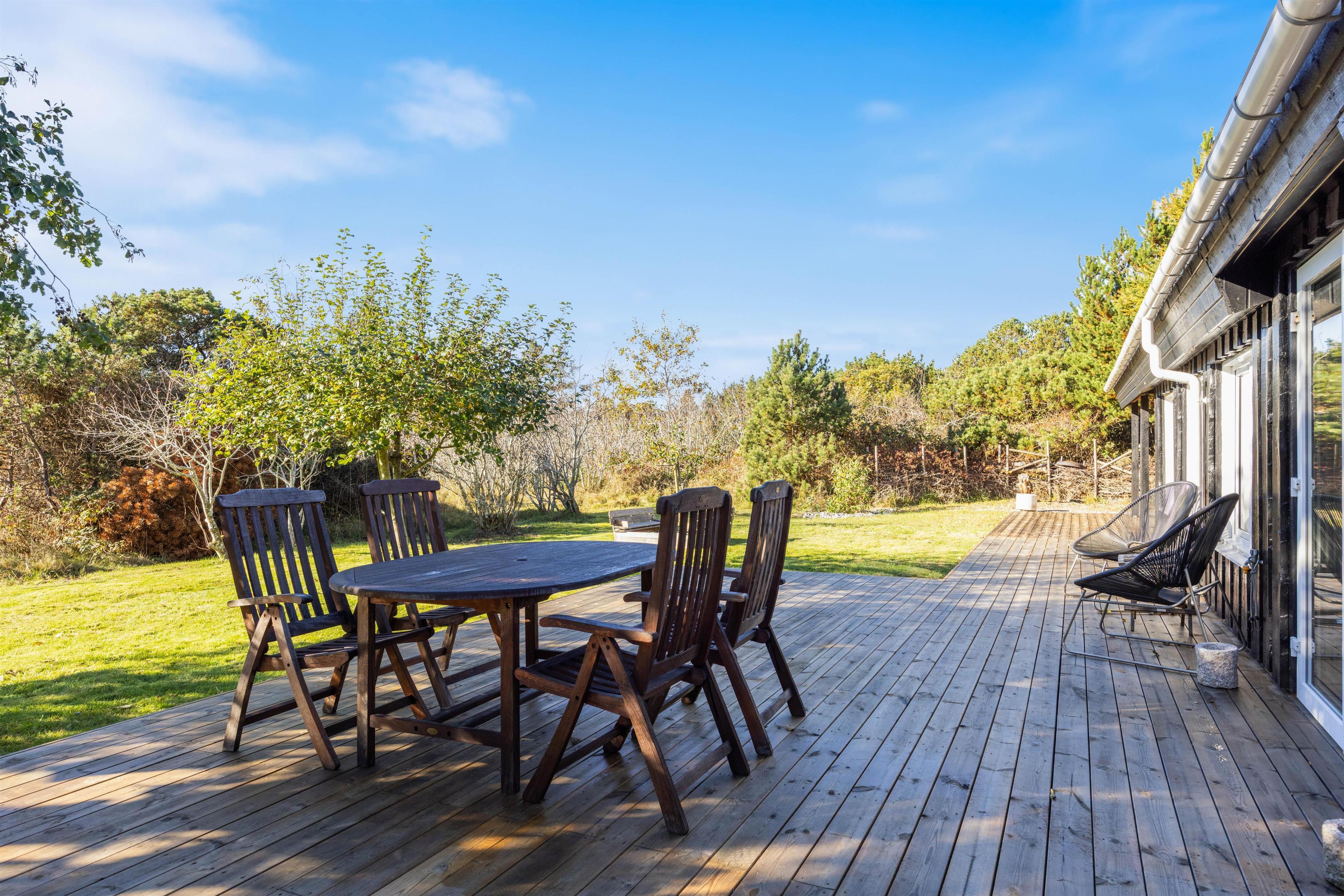 Sommerhuset ligger kun 1800 meter fra Vesterhavet, hvor I kan gå lange ture langs de kilometerlange, hvide sandstrande og nyde den friske havluft. Samtidig er der kun 3700 meter til indkøbsmuligheder, så I ikke behøver at gå på kompromis med hverdagens bekvemmeligheder under ferien.