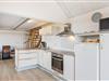 I stueplan finder I husets hjerte, nemlig et smagfuldt indrettet opholdsrum, hvor stue, spiseplads og køkken er samlet i ét lyst og åbent fællesrum. De fritlagte bjælker, den fint afstemte indretning og den klassiske brændeovn giver sommerhuset masser af charme.