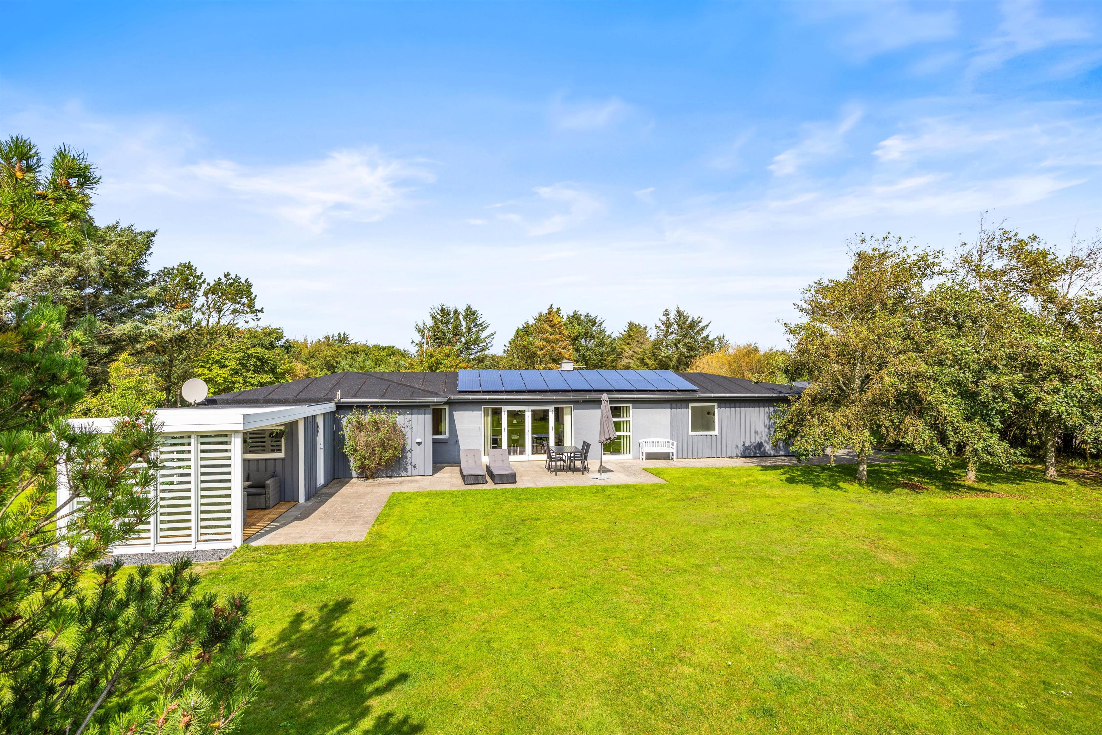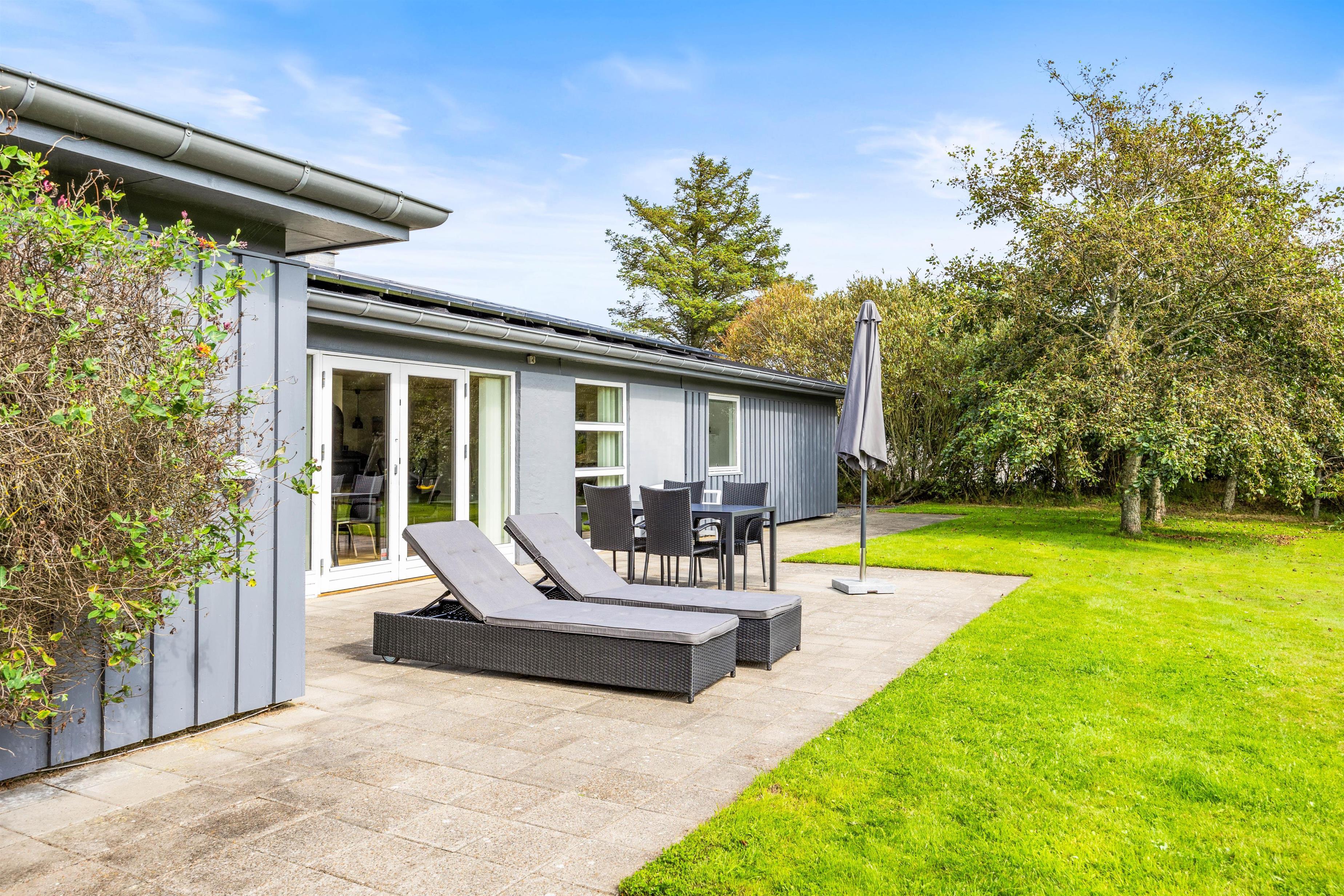Den store græsplæne indbyder til leg og boldspil for børn, ligesom familiens hund også vil nyde det. Der er gode terrasser, den store er sydvendt og den overdækkede er længst mod vest. Her er de to glaspartier mod syd og mod vest med til at give både lys og læ samtidigt, og her kan man således grille i mange måneder i løbet af året. Søndervig og Vesterhavet er tæt på og endnu tættere på huset er den flotte 18 hullers golfbane.