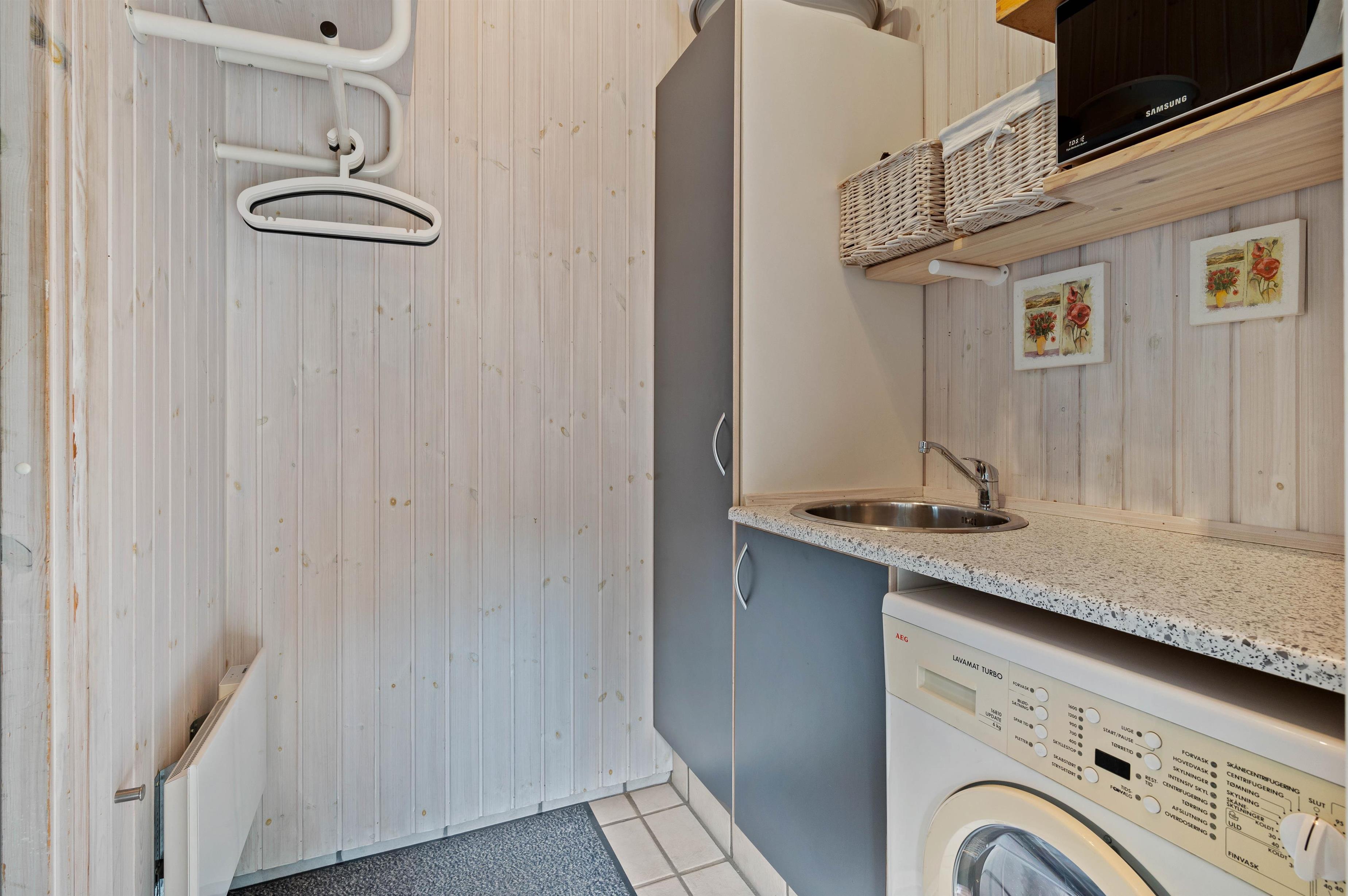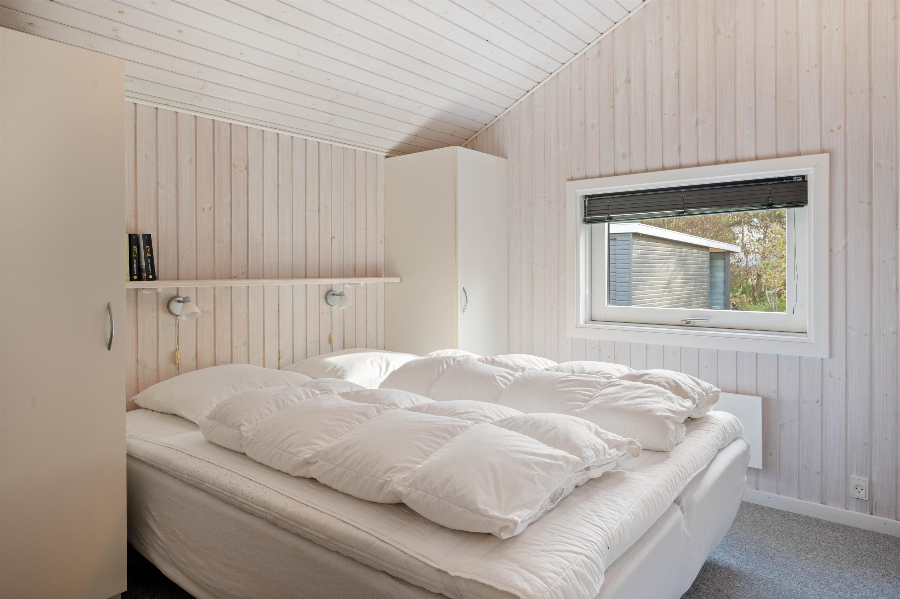 Der findes i alt 4 værelser i sommerhuset. I kan derfor uden problemer invitere bedsteforældrene med på jeres ferie. 3 af værelserne er indrettet med dobbeltsenge, mens det sidste værelse består af 2 enkeltsenge. Vægge og lofter på værelserne er ligesom resten af sommerhuset beklædt med lyse paneler, der bidrager til den hyggelige sommerhusstemning. Herudover har sommerhuset et skønt badeværelse med bruseniche og opvarmet gulv.