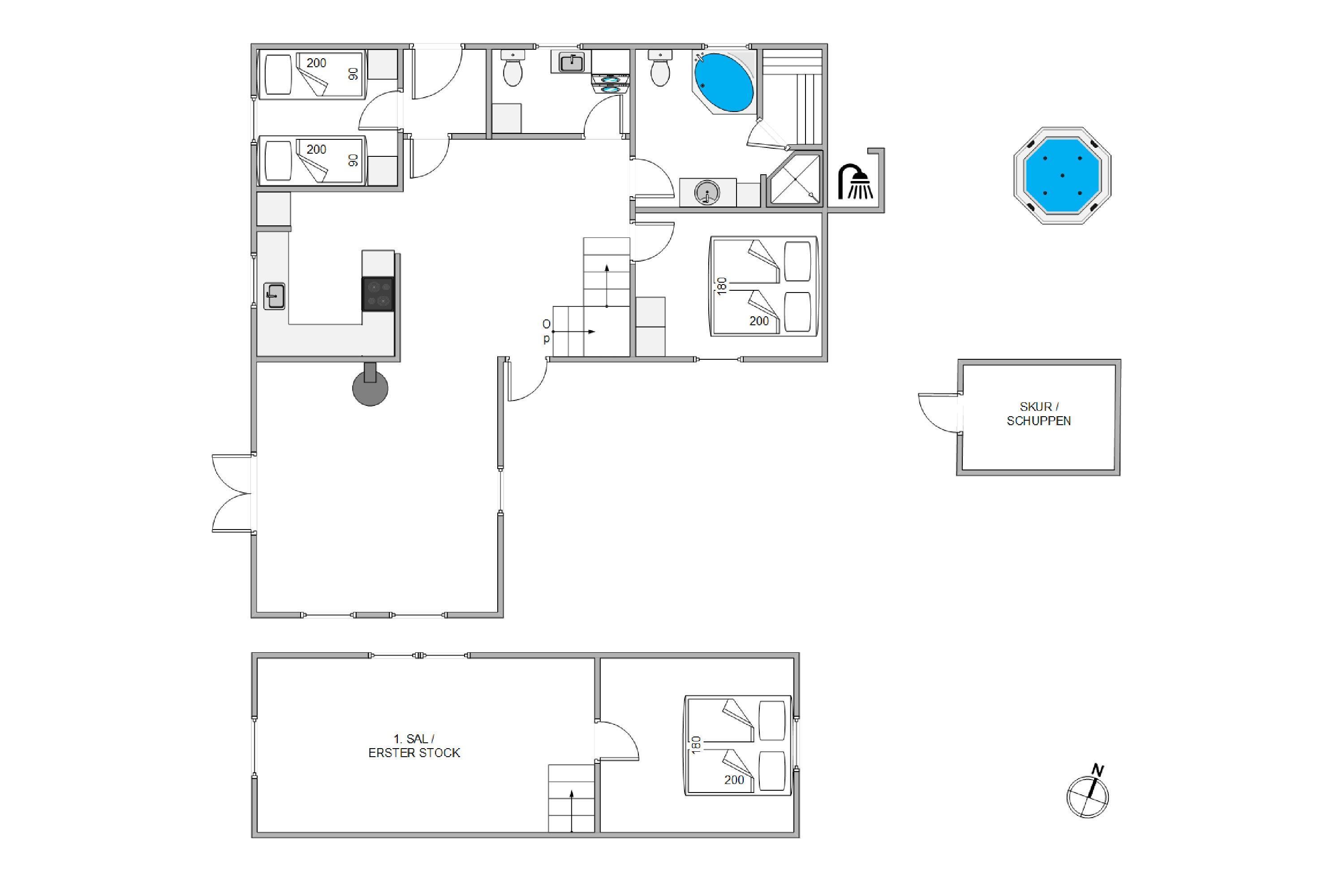Derudover er huset også godt udstyret hvad angår elektronik. Her findes nemlig et stort flot fladskærms-tv og stereoanlæg i stuen. Ligeledes er der på førstesalen indrettet en hyggekrog med fladskærms-tv. Begge steder giver Dolby Surround en optimal lydoplevelse. Derudover er der højtalere på det store badeværelse, så man har musik til en afslappende stund i spaen. I alle soveværelser er der skønne elevationssenge for optimal komfort.