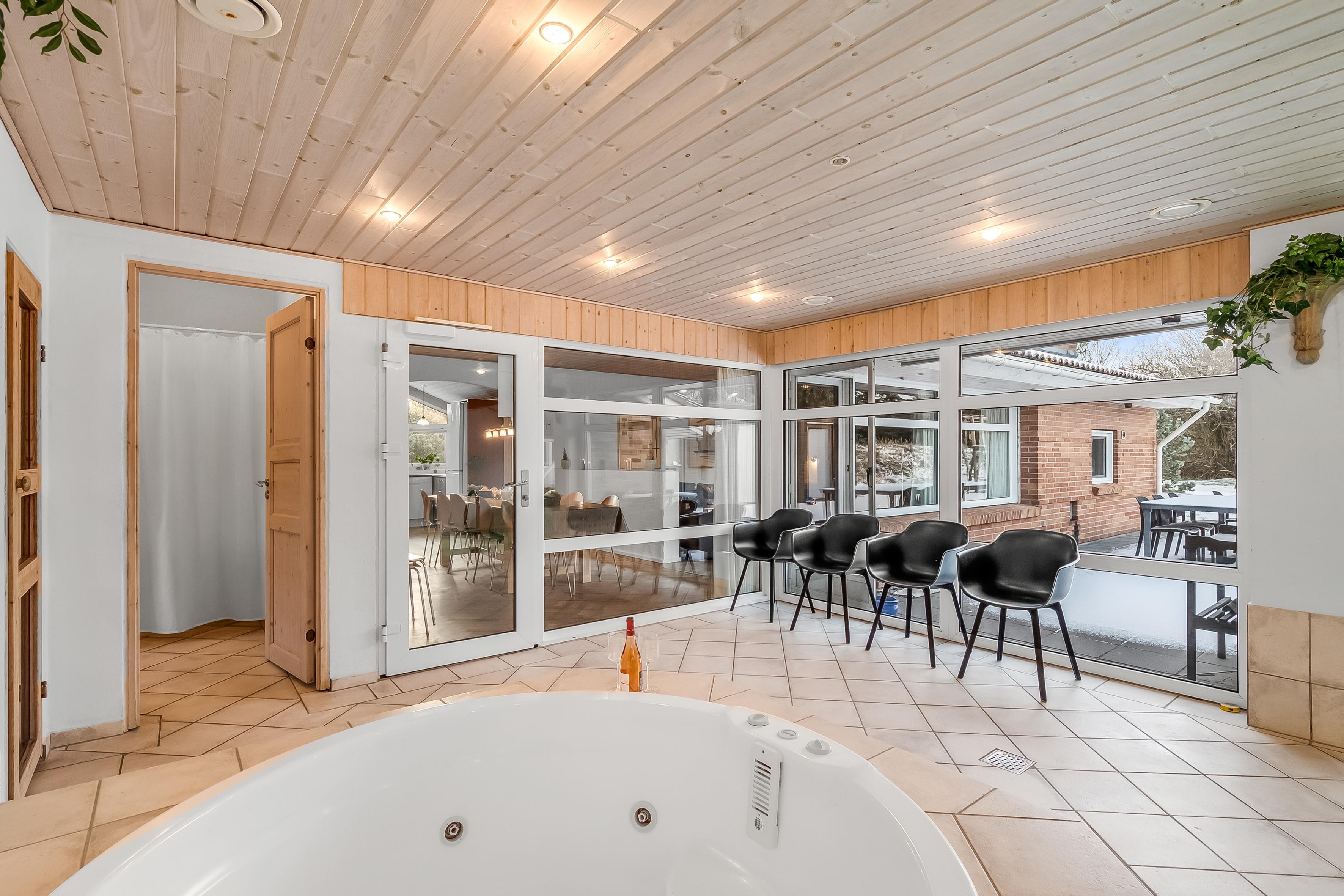 Det imponerende højdepunkt er den store indendørs swimmingpool, der ledsages af et 5-personers standvandsspa og en sauna - det perfekte sted at slappe af og lade op efter en dag med aktiviteter. Energibesparende varmepumpe sikrer, at poolområdet kan nydes året rundt.