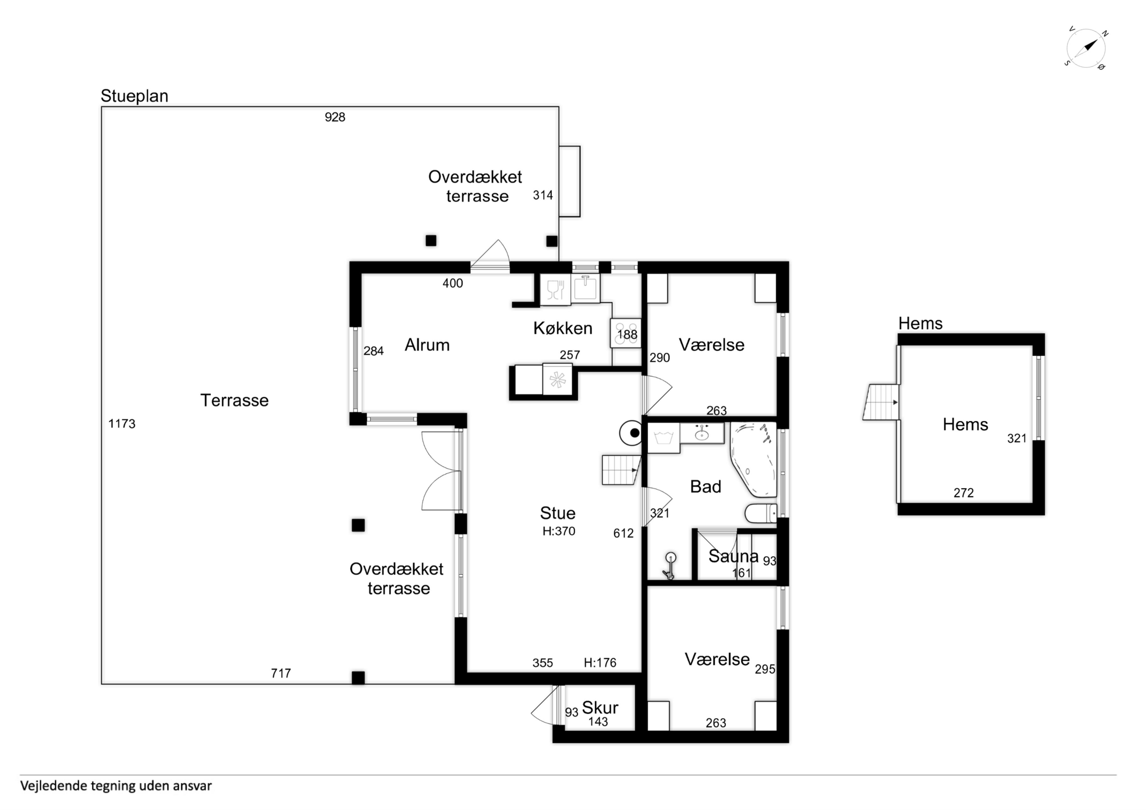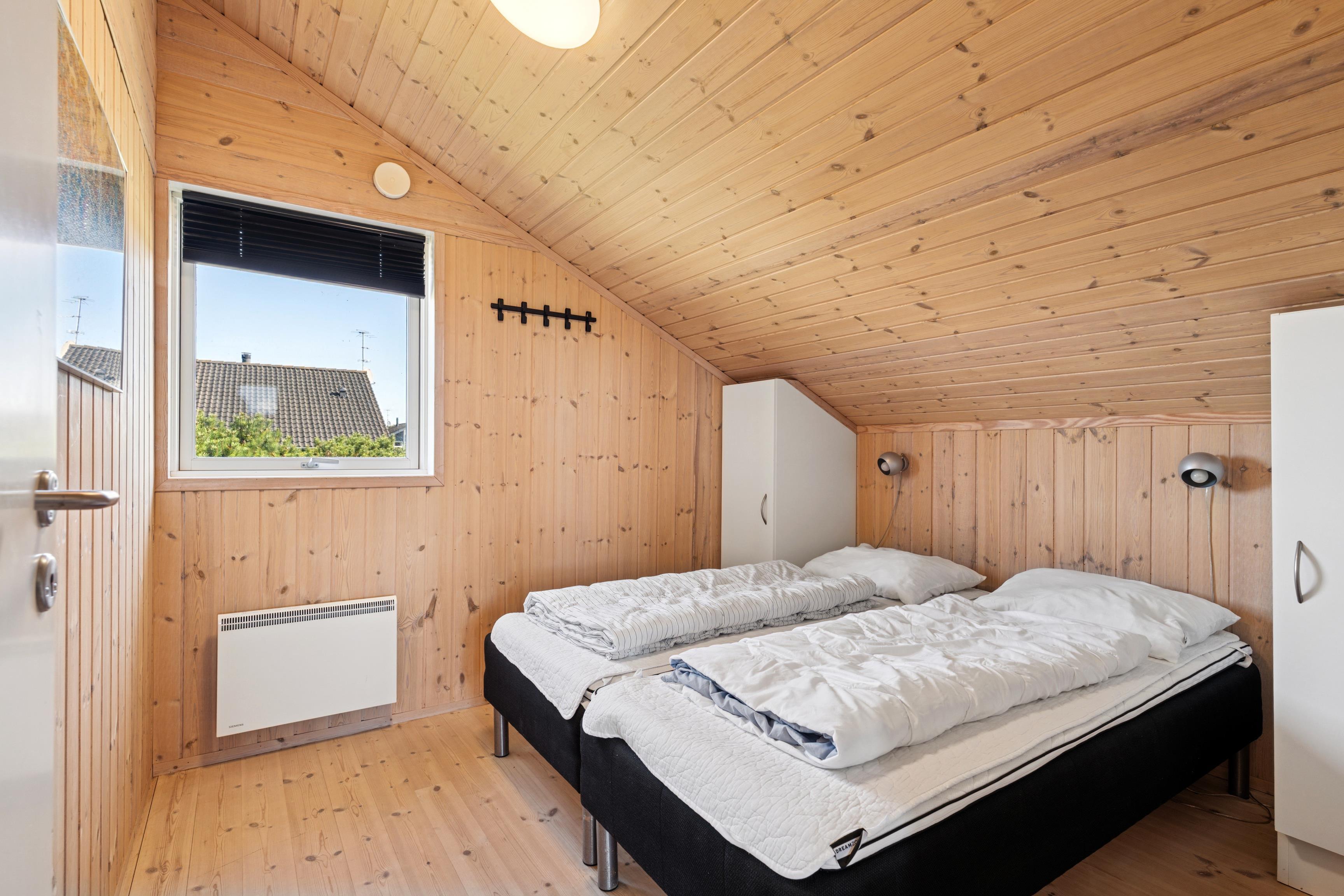 Huset er indrettet med 2 værelser med dobbeltseng samt 2 soverpladser på hems. Stue, køkken og spiseplads er åbent, så i kan hygge jer sammen om madlavningen, et spil kort eller læse en god bog. Der kan tændes op i brændeovnen på de kølige dage, hvor roen kan sænke sig efter en aktiv dag. Badeværelset byder på både spa og sauna.