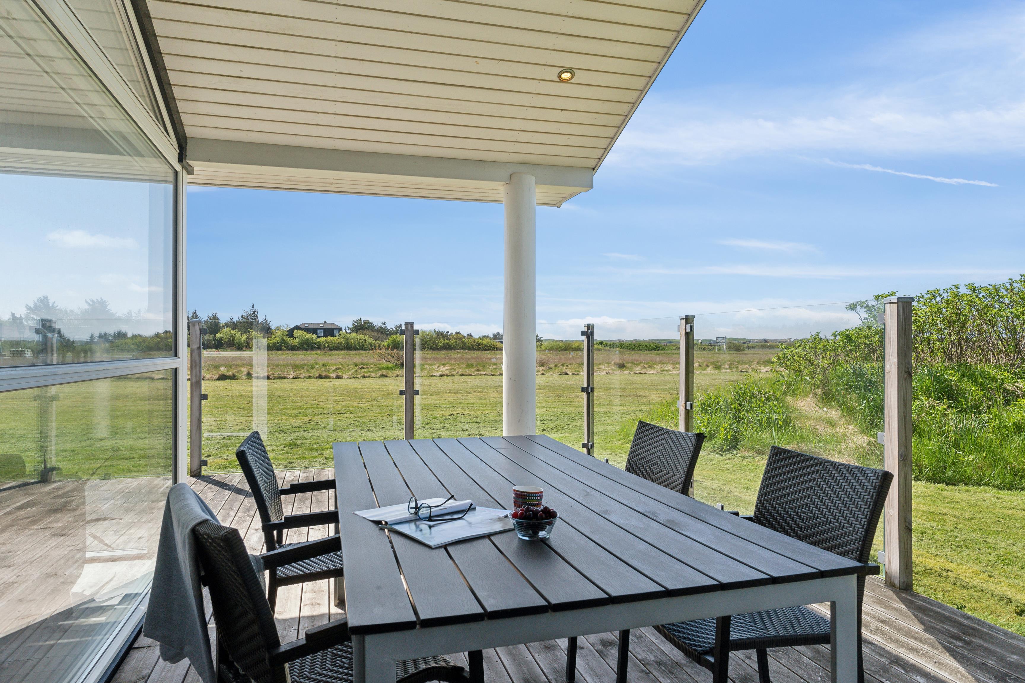 Hyggeligt sommerhus i naturskønne Lodbjerg Hede med plads til 7, moderne faciliteter og overdækket terrasse nær Ringkøbing Fjord.