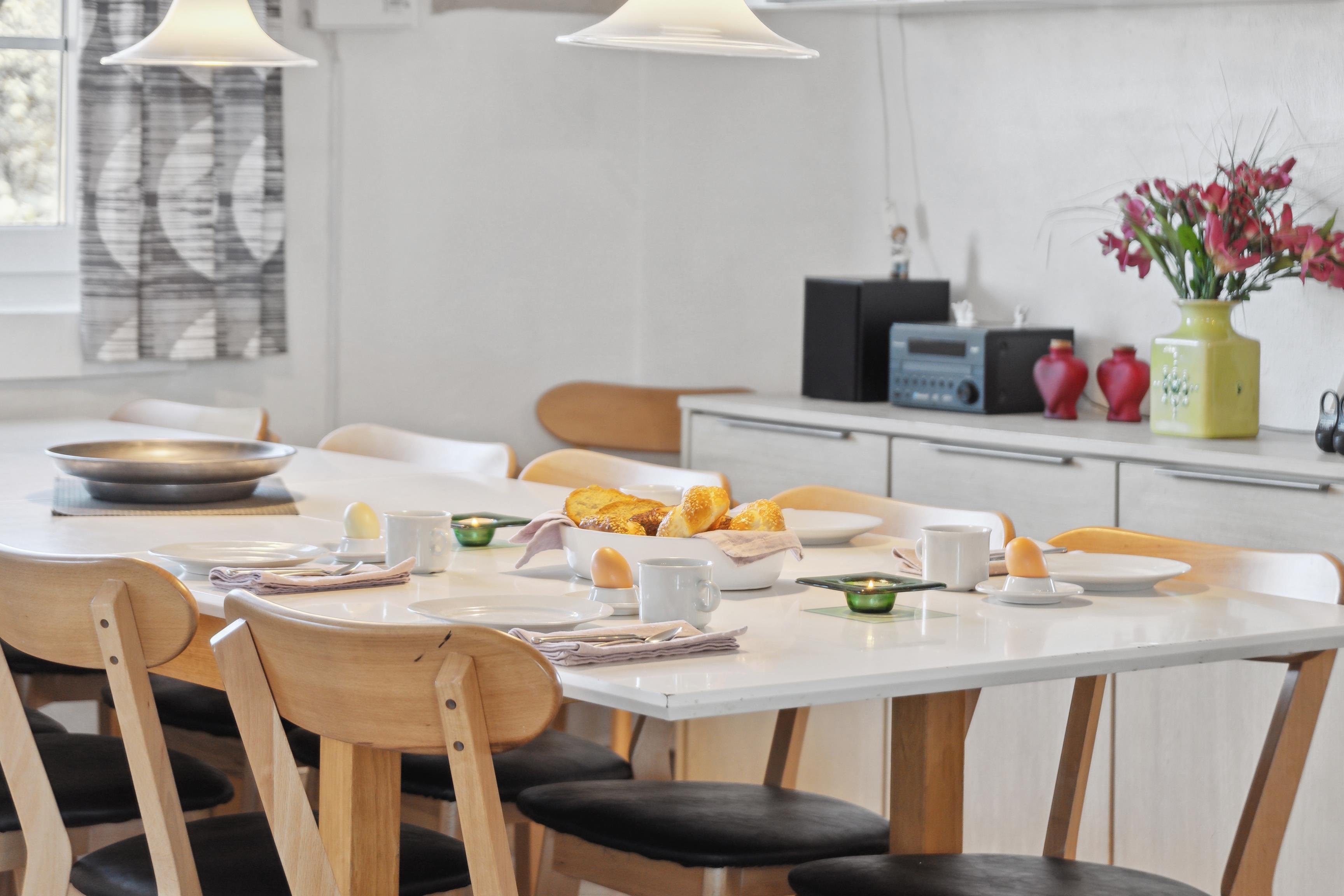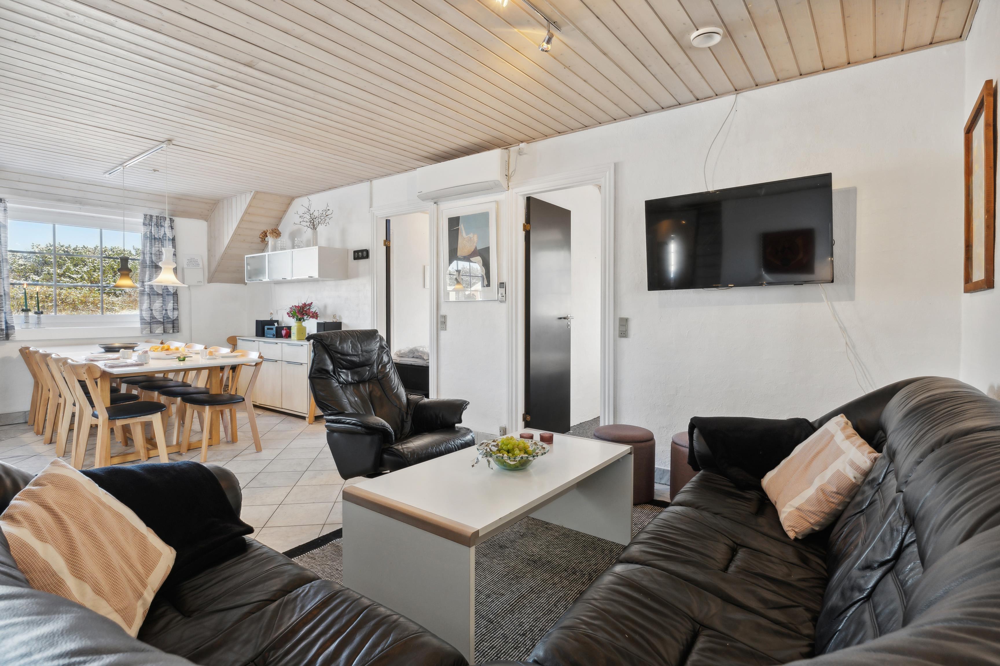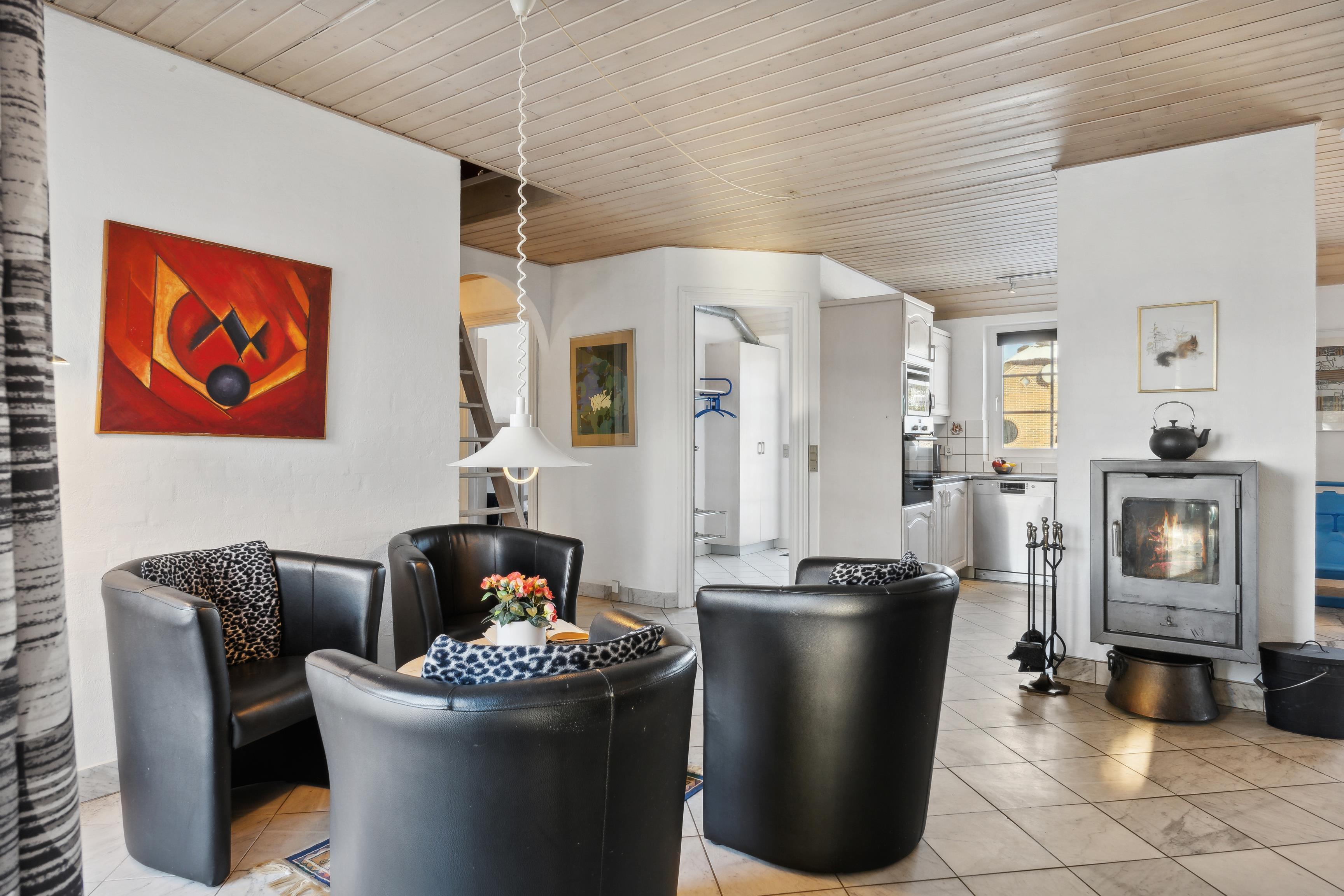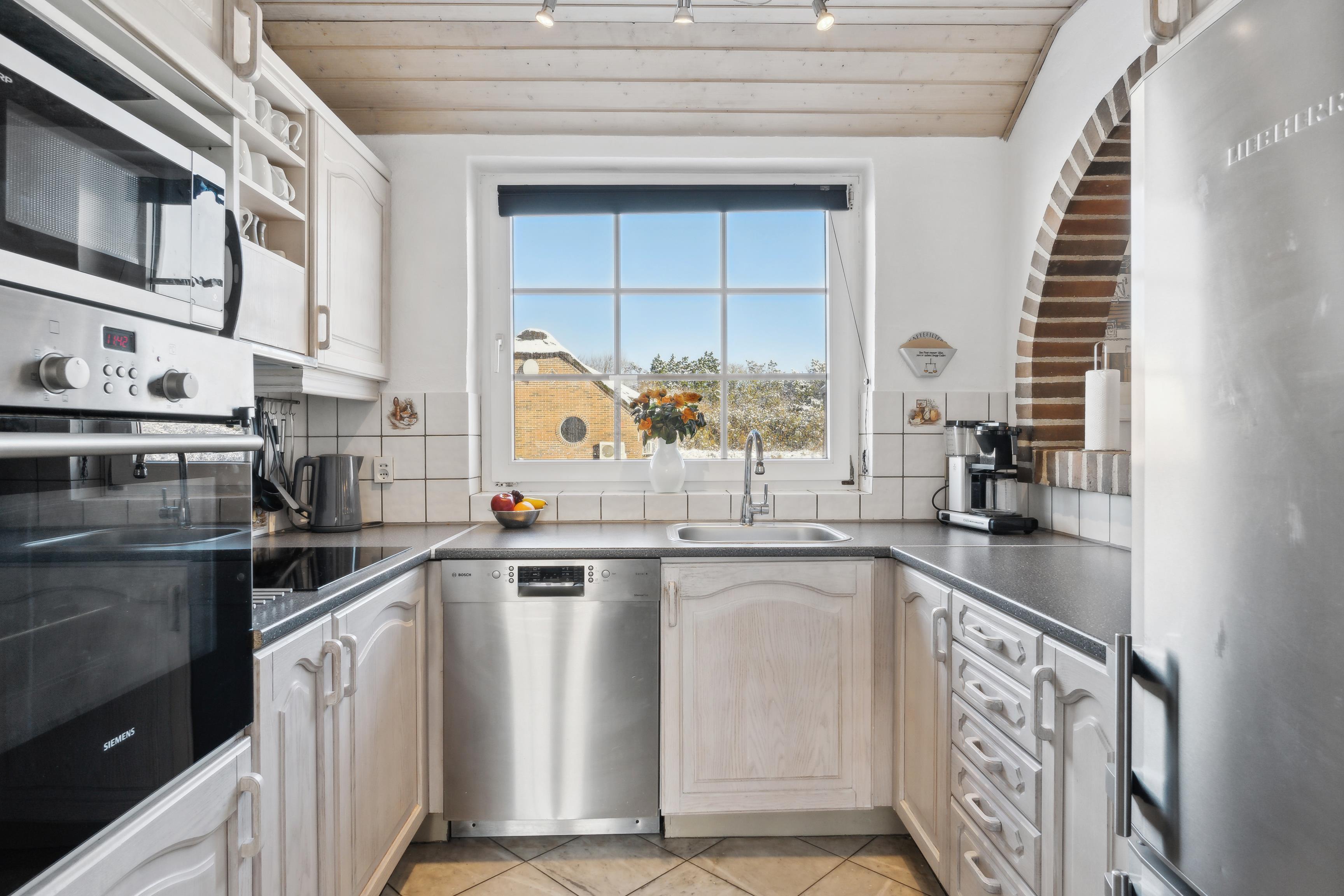 Køkkenet er fuldt udstyret med alt, hvad du behøver, herunder opvaskemaskine, ovn, køleskab og en rummelig fryser. Derudover står vaskemaskine og tørretumbler klar til din bekvemmelighed. I opholdsstuen kan du slappe af foran TV’et. Et bordfodboldbord sørger for underholdende stunder og venlig konkurrence.
