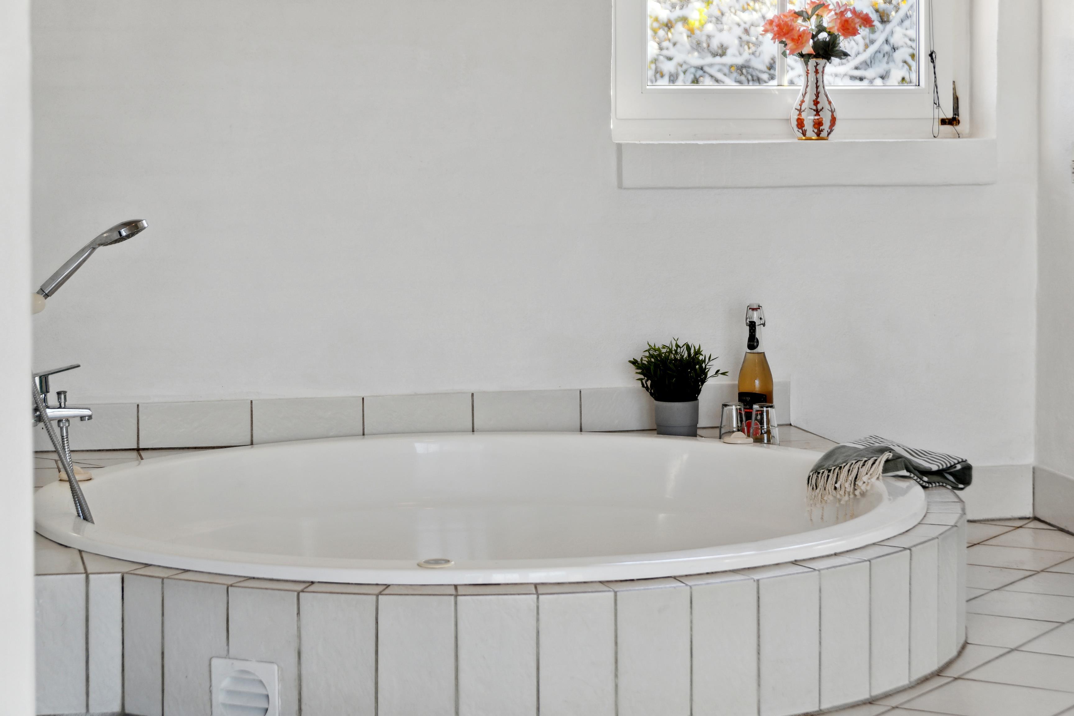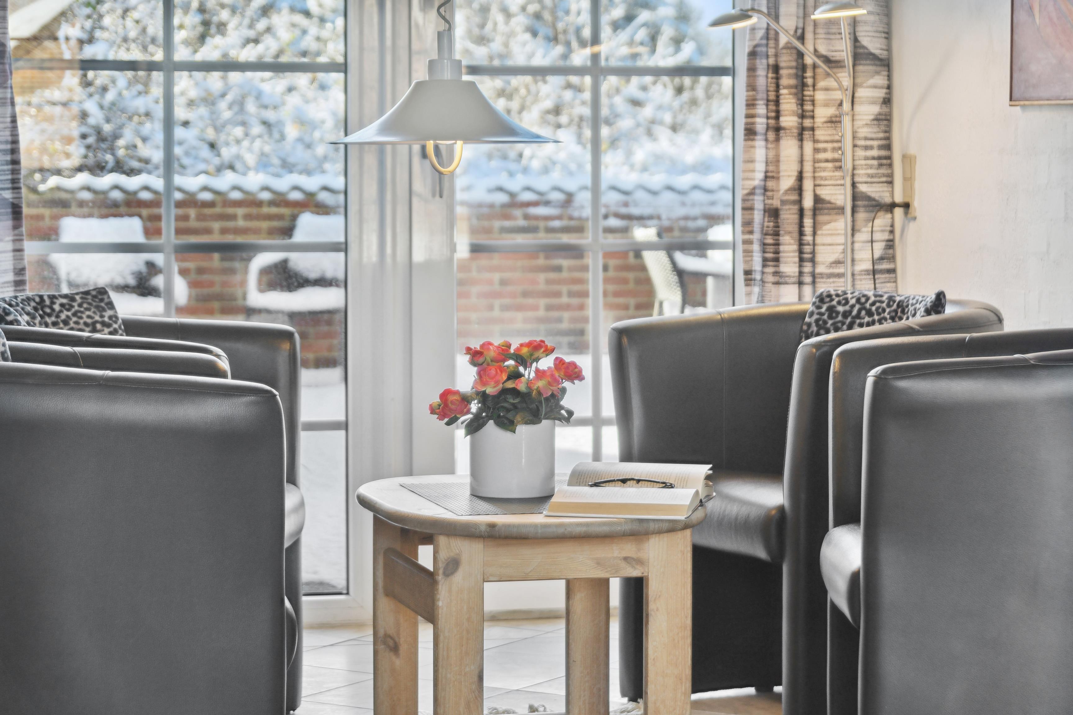 Udendørs finder du en 60 kvadratmeter stor lukket terrasse, hvor du kan nyde solen og den omgivende natur i fred og ro – langt væk fra hverdagens stress.