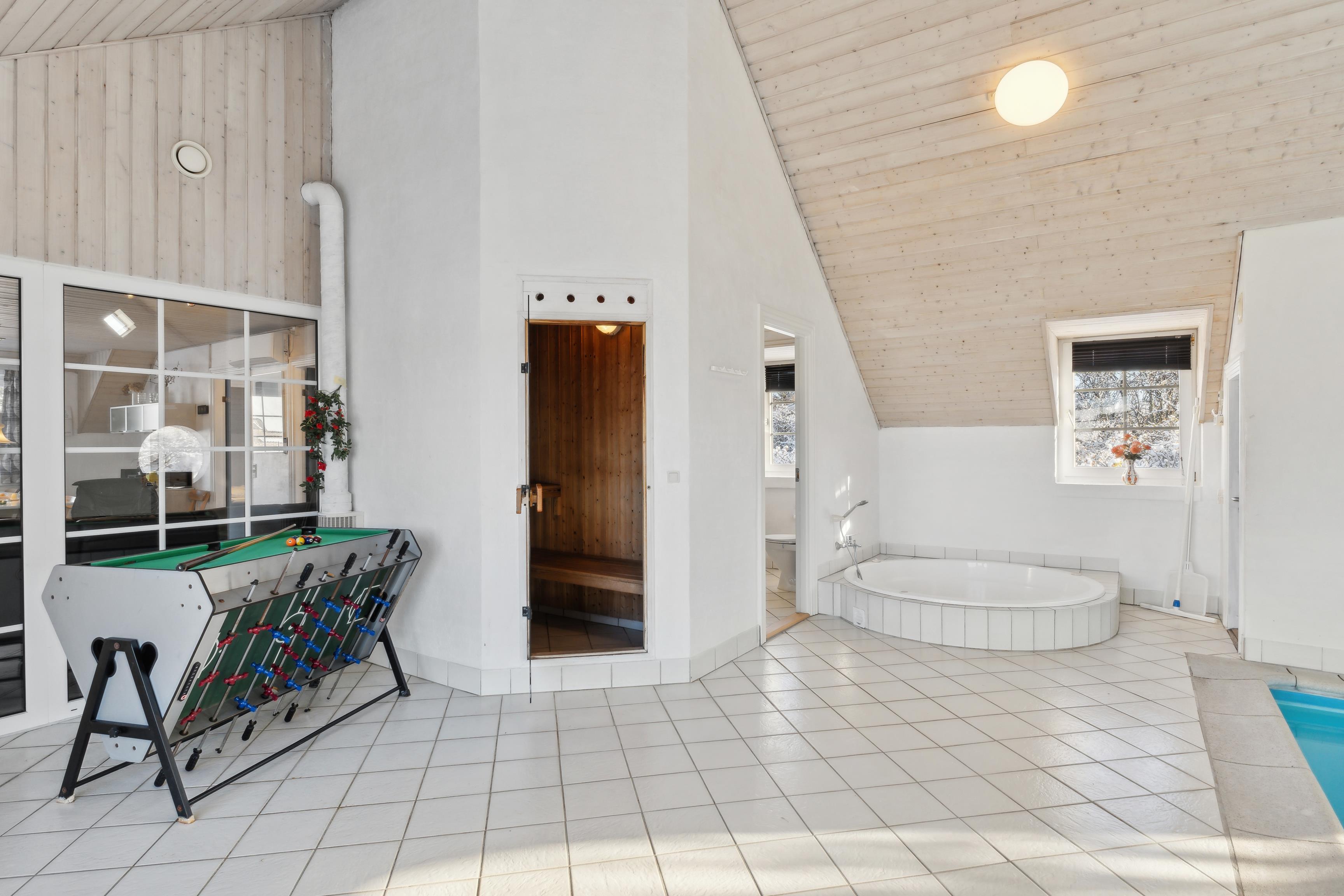 Tag en svømmetur i den store pool, der er udstyret med et modstrømsanlæg, som giver mulighed for både sjov og motion. Forkæl dig selv i det afslappende 4-personers spabad, eller genoplad i saunaen efter en dag fyldt med aktiviteter.